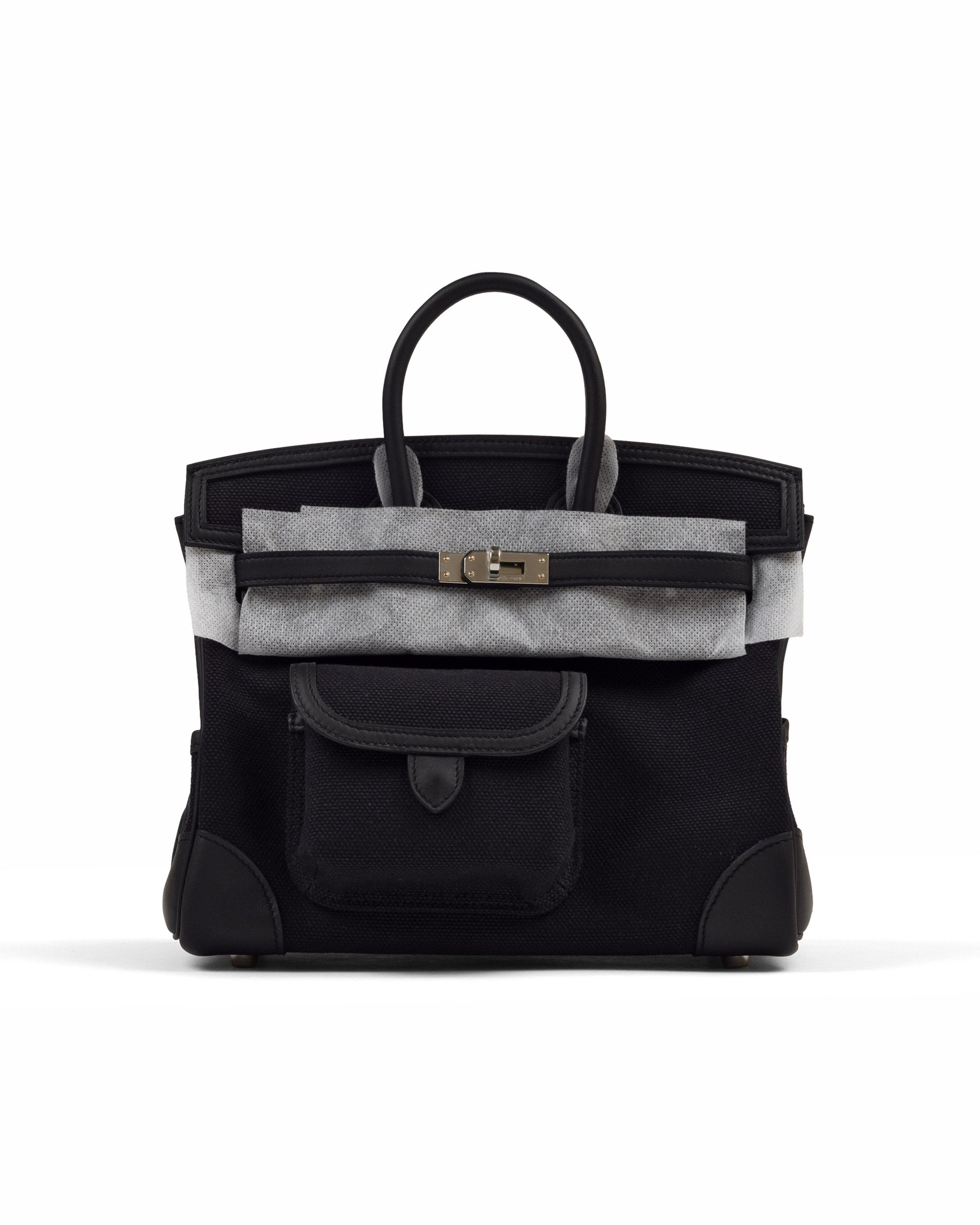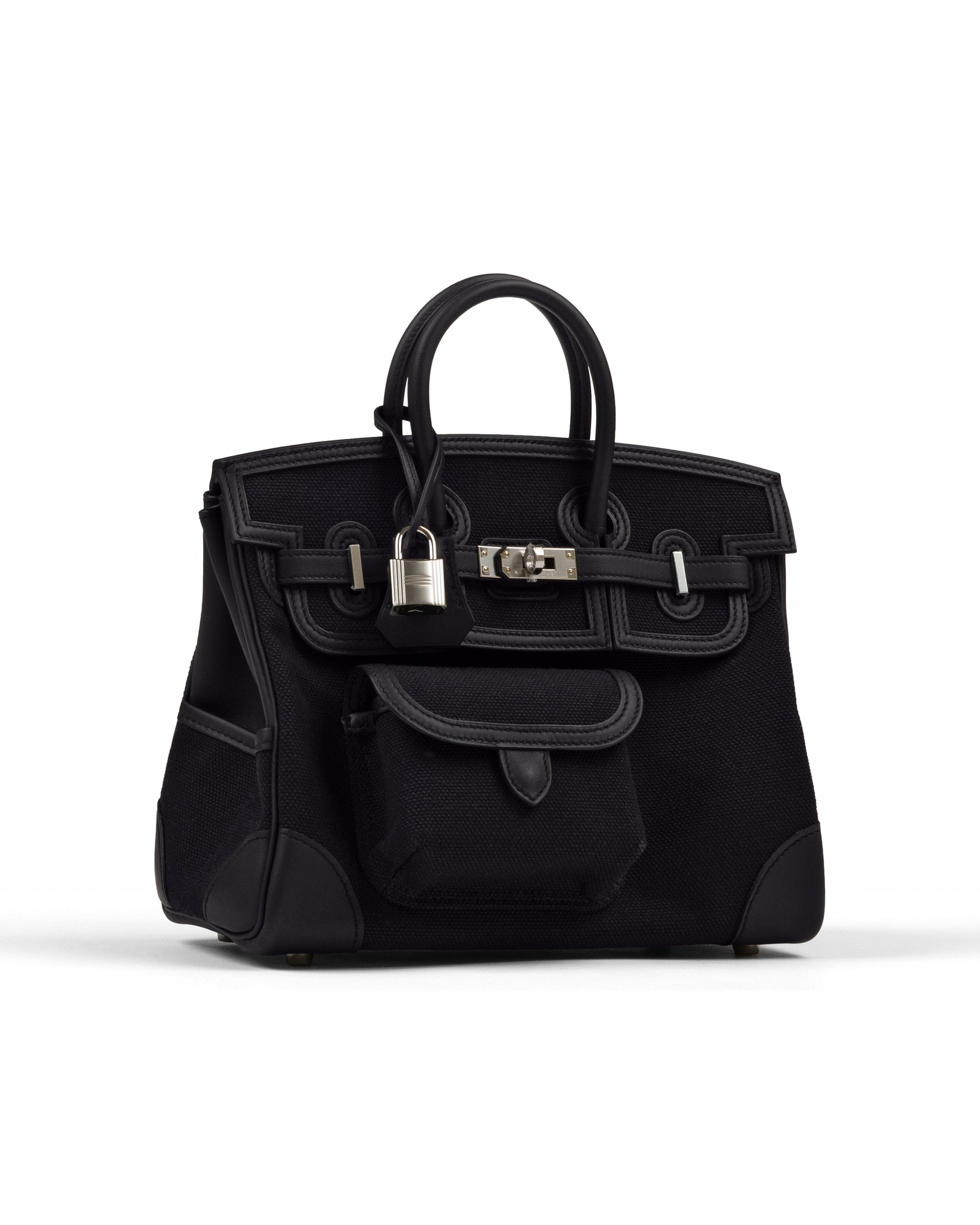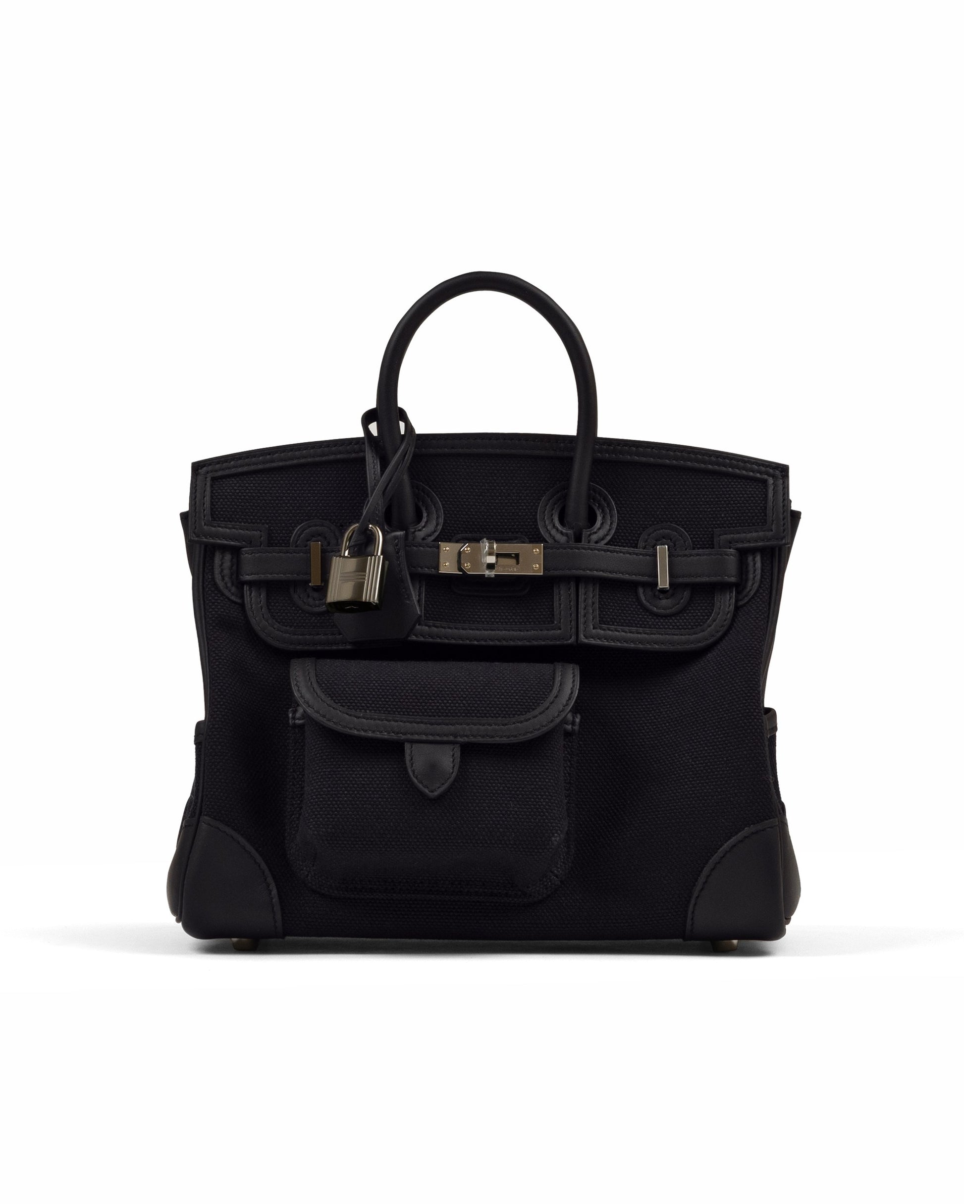 Birkin 25 Cargo in Black Canvas/Swift Leather & Palladium Hardware