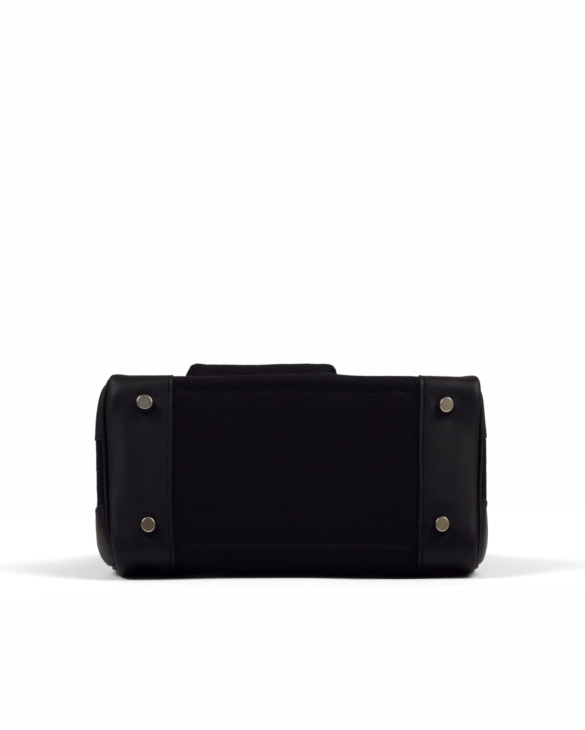 This version is crafted in black canvas paired with Bleu Marine Swift leather — a rare and unexpected pairing that subtly contrasts depth and tone. The combination of dark navy and black is quietly sophisticated, with palladium hardware adding a crisp, modern finish.