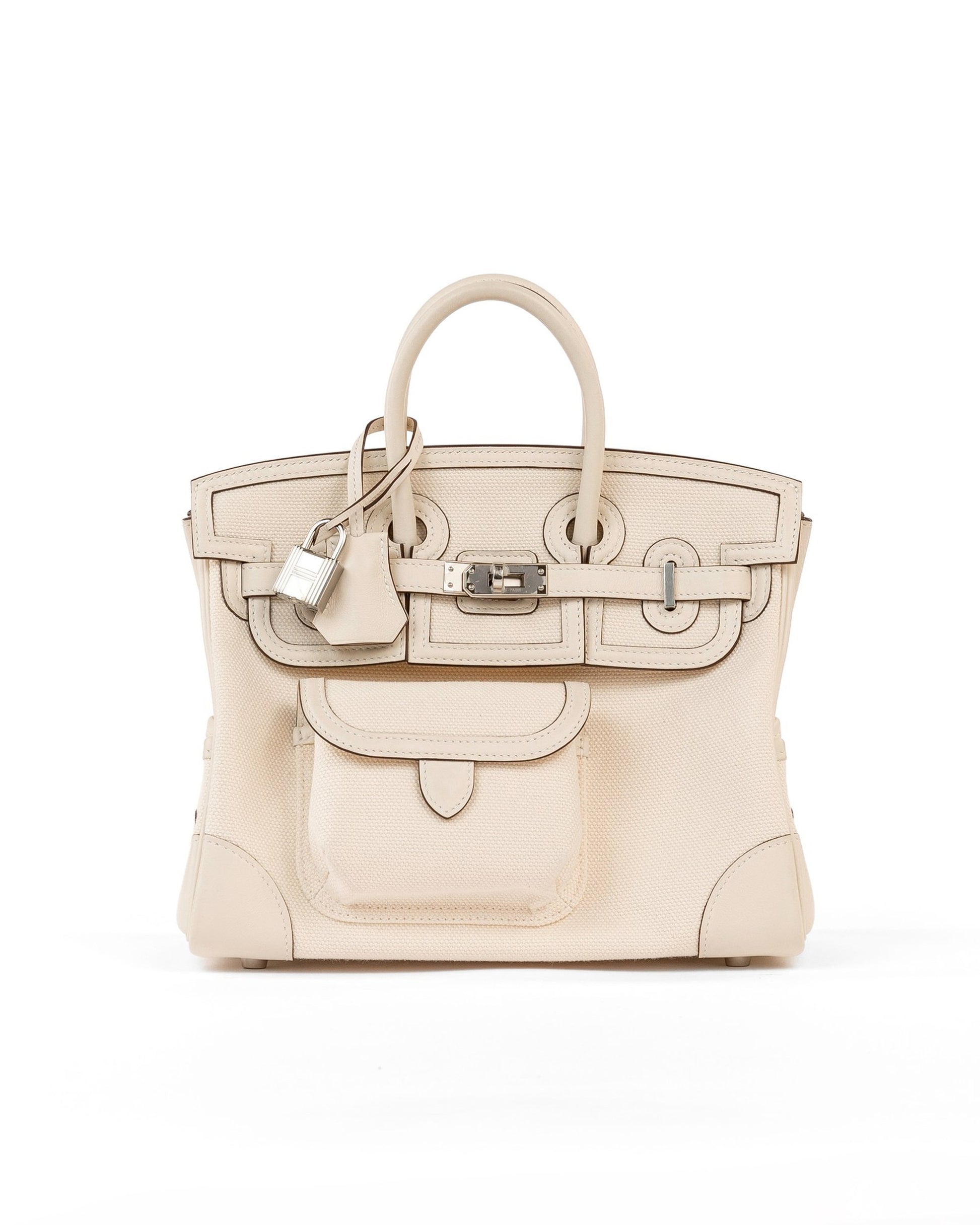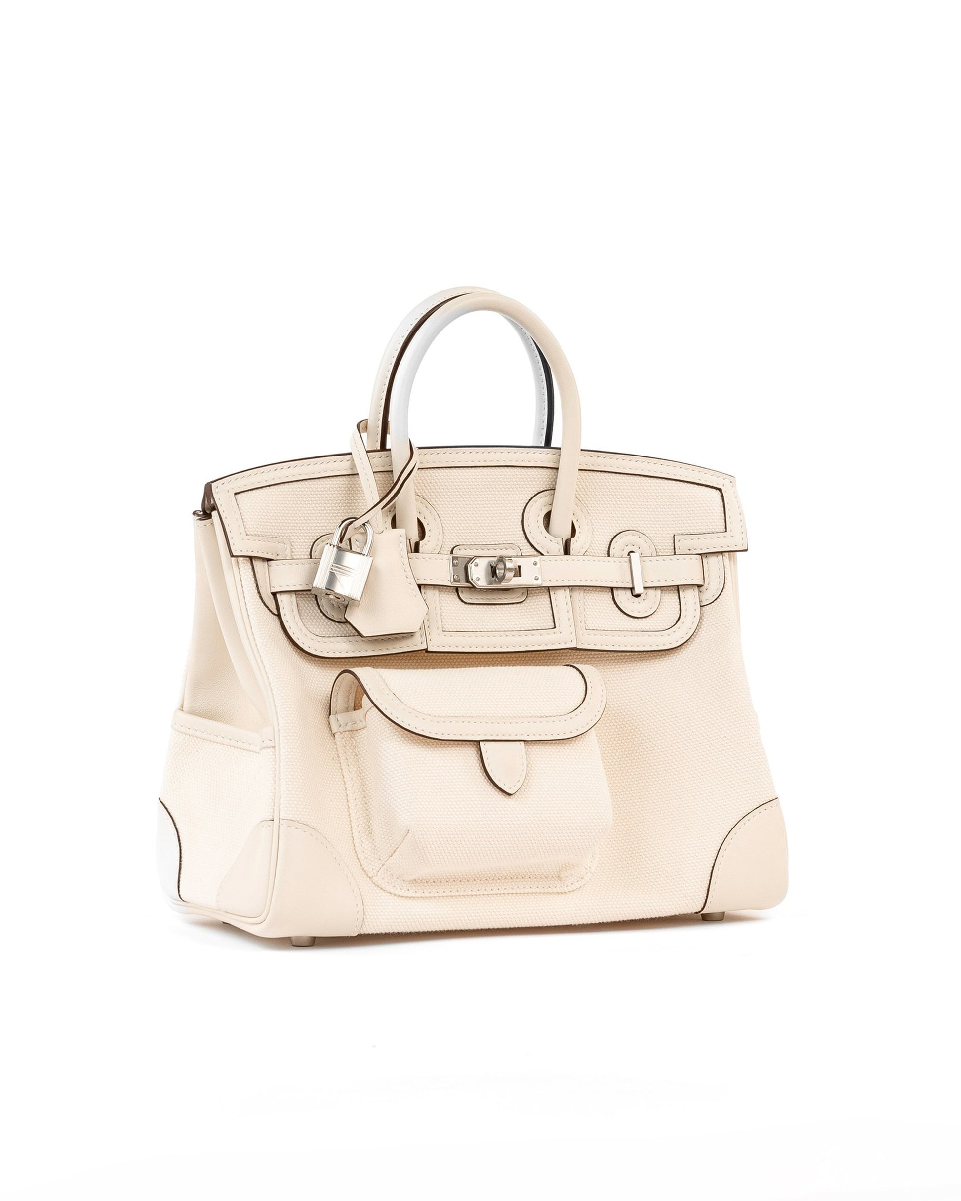 Birkin 25 Cargo Nata Canvas and Swift Leather with Palladium Hardware