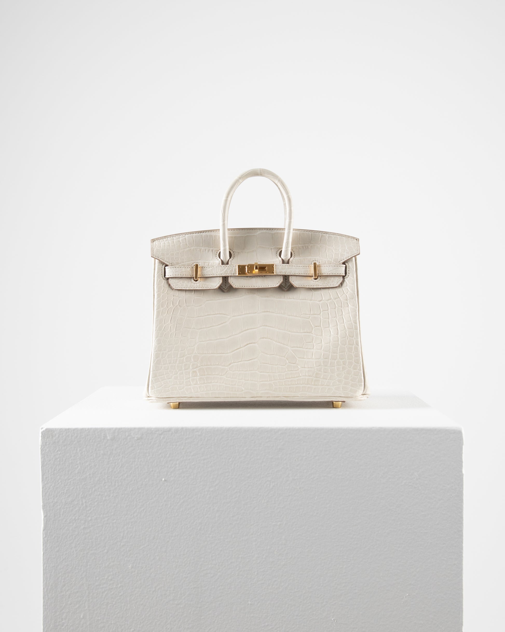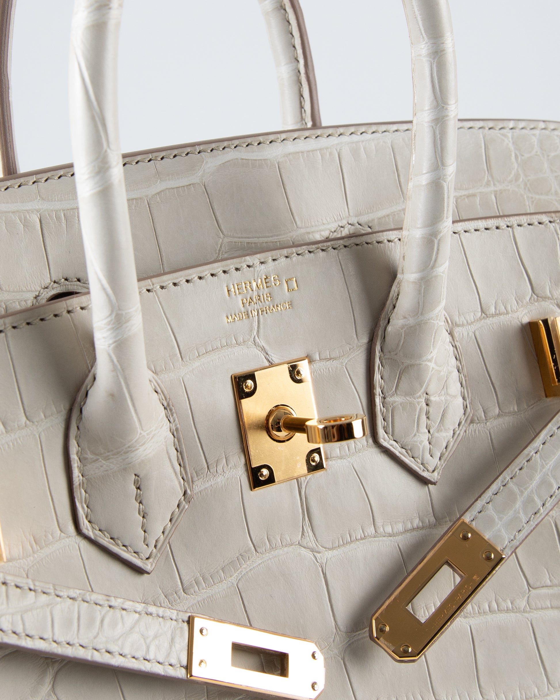 Birkin 25 in Matte Beton Alligator Mississippiensis with Gold hardware