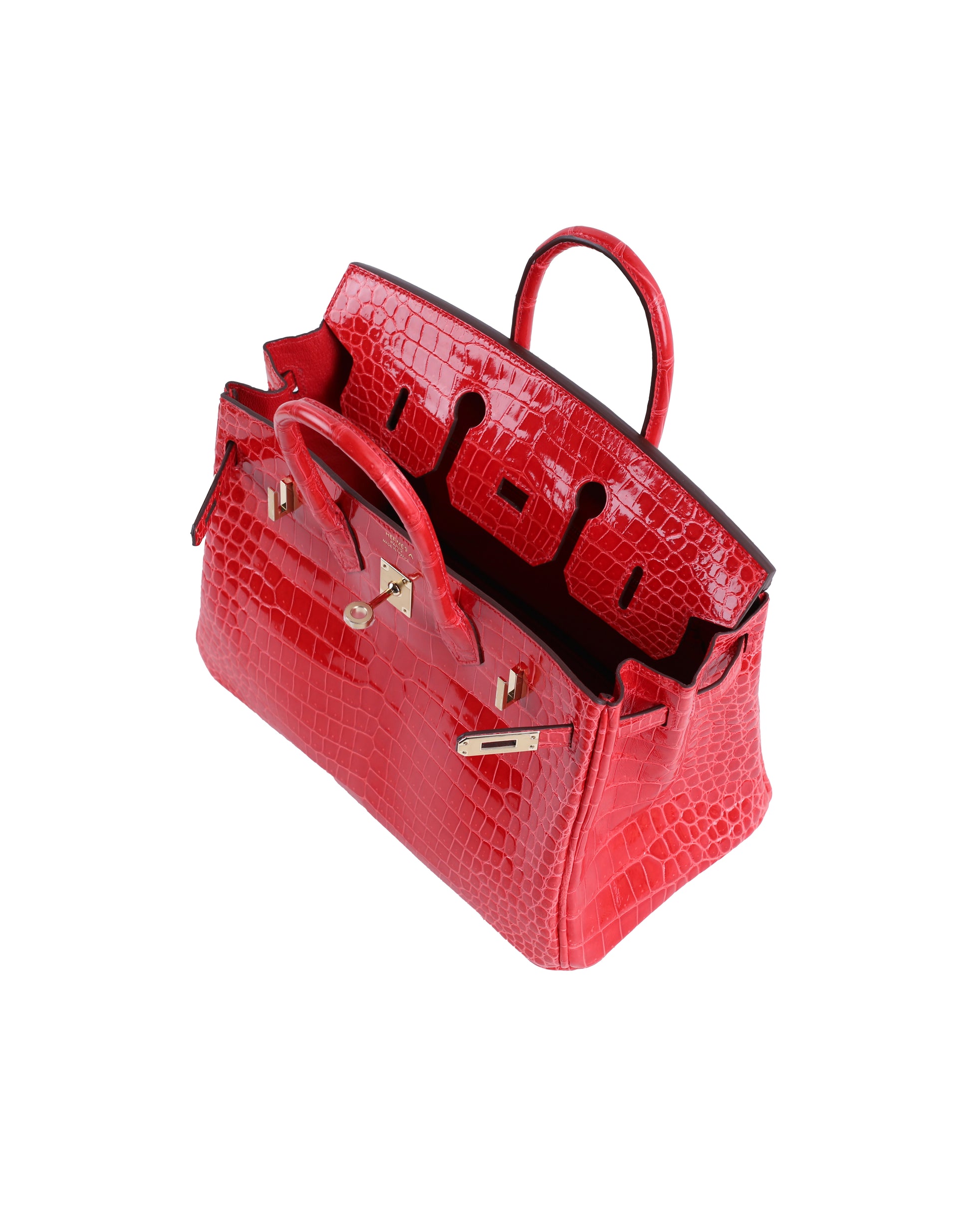 Elevate your collection with this Birkin 25 in Crocodile Porosus Rouge de Ceour – a masterpiece that seamlessly marries impeccable craftsmanship with the allure of an iconic color.