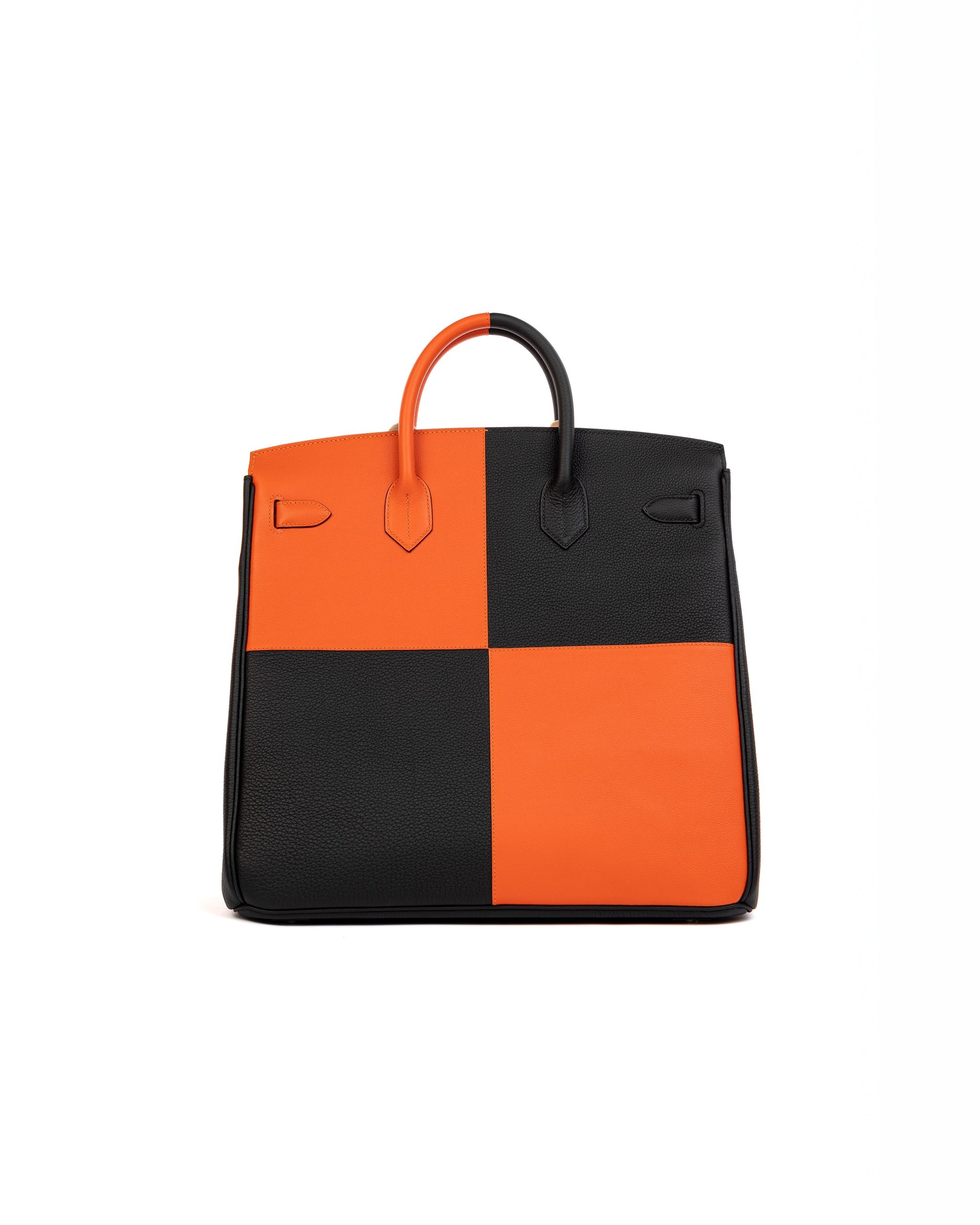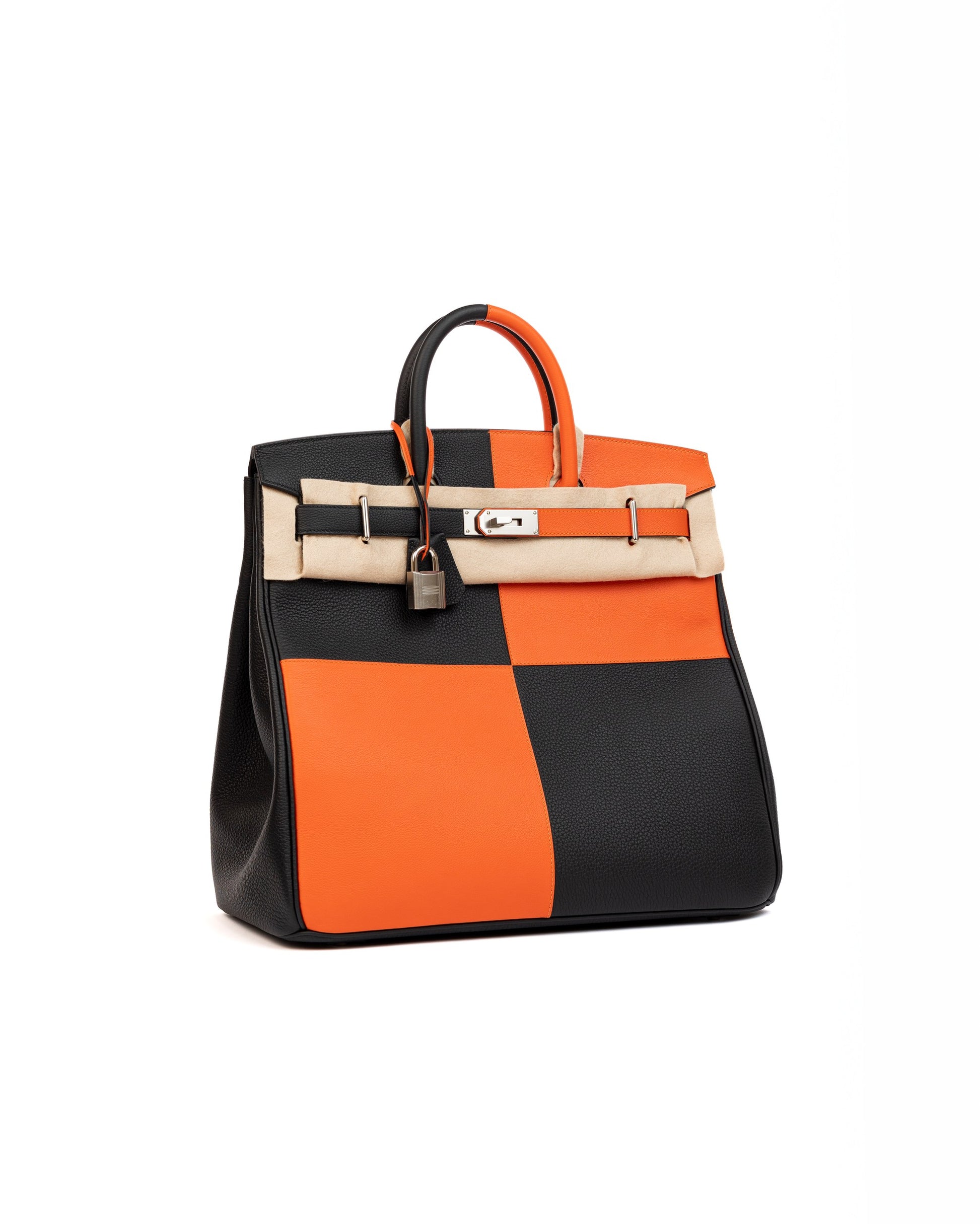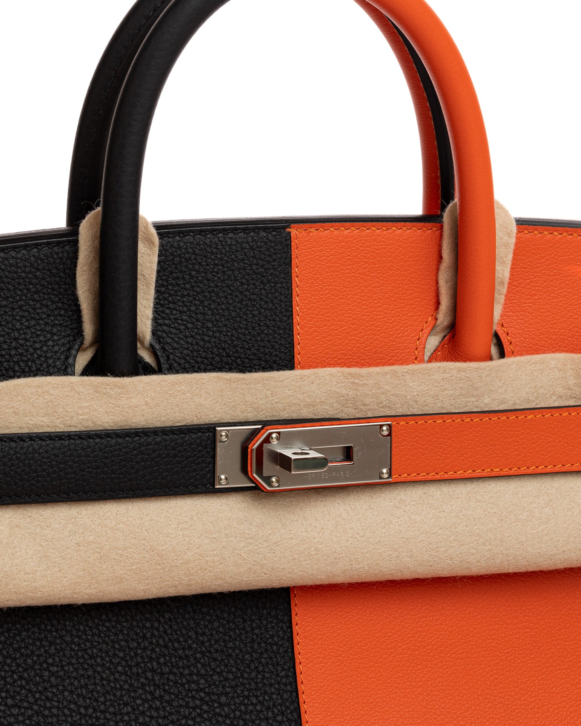 Birkin 40 Hac Casaque Black and Orange in Togo leather with Palladium Hardware