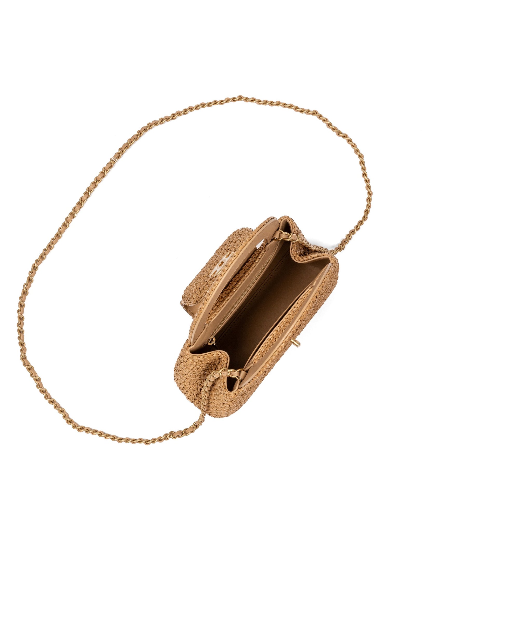 Chanel Mini Shopping Bag Dark Beige Braided Rafia Gold Tone Metal