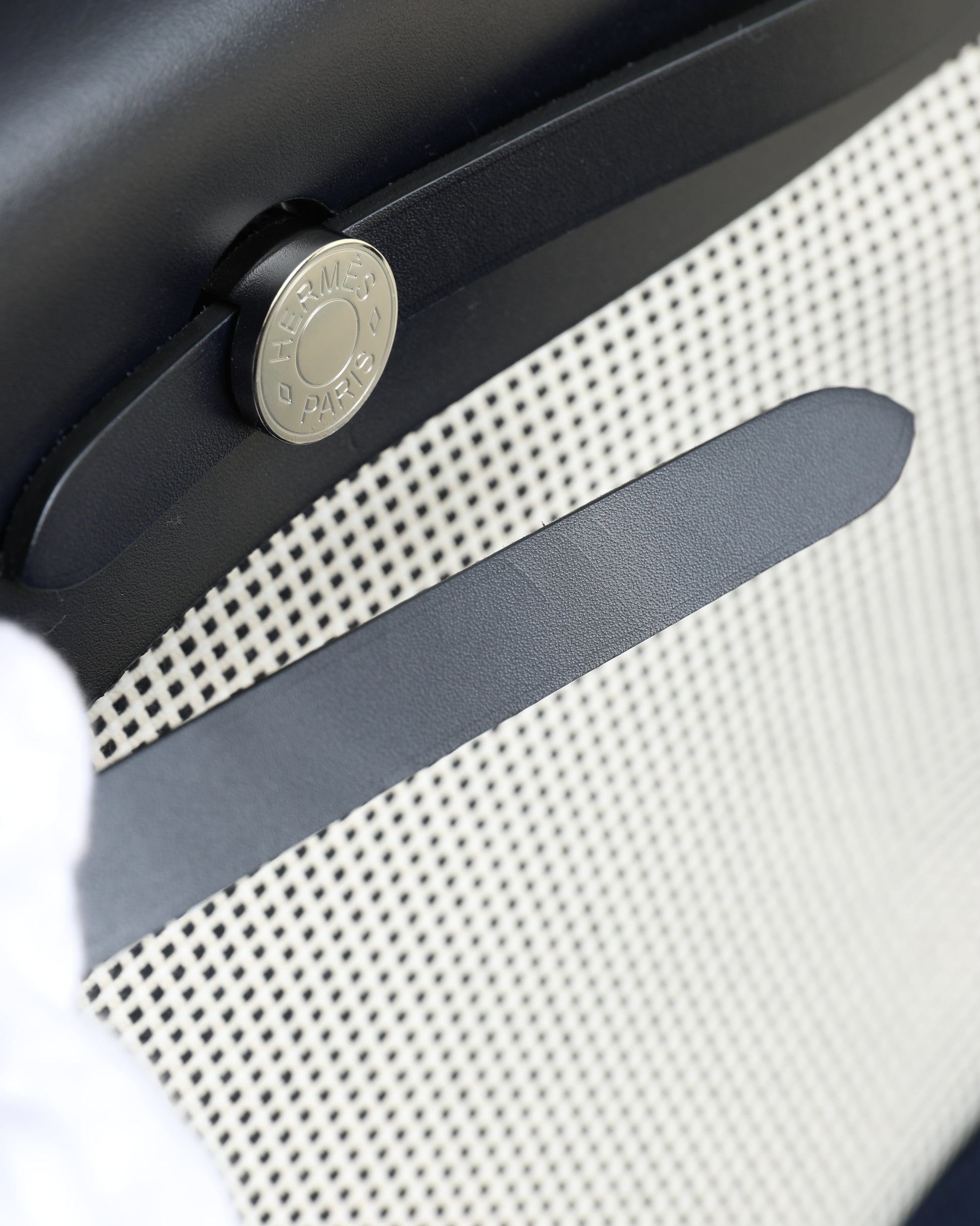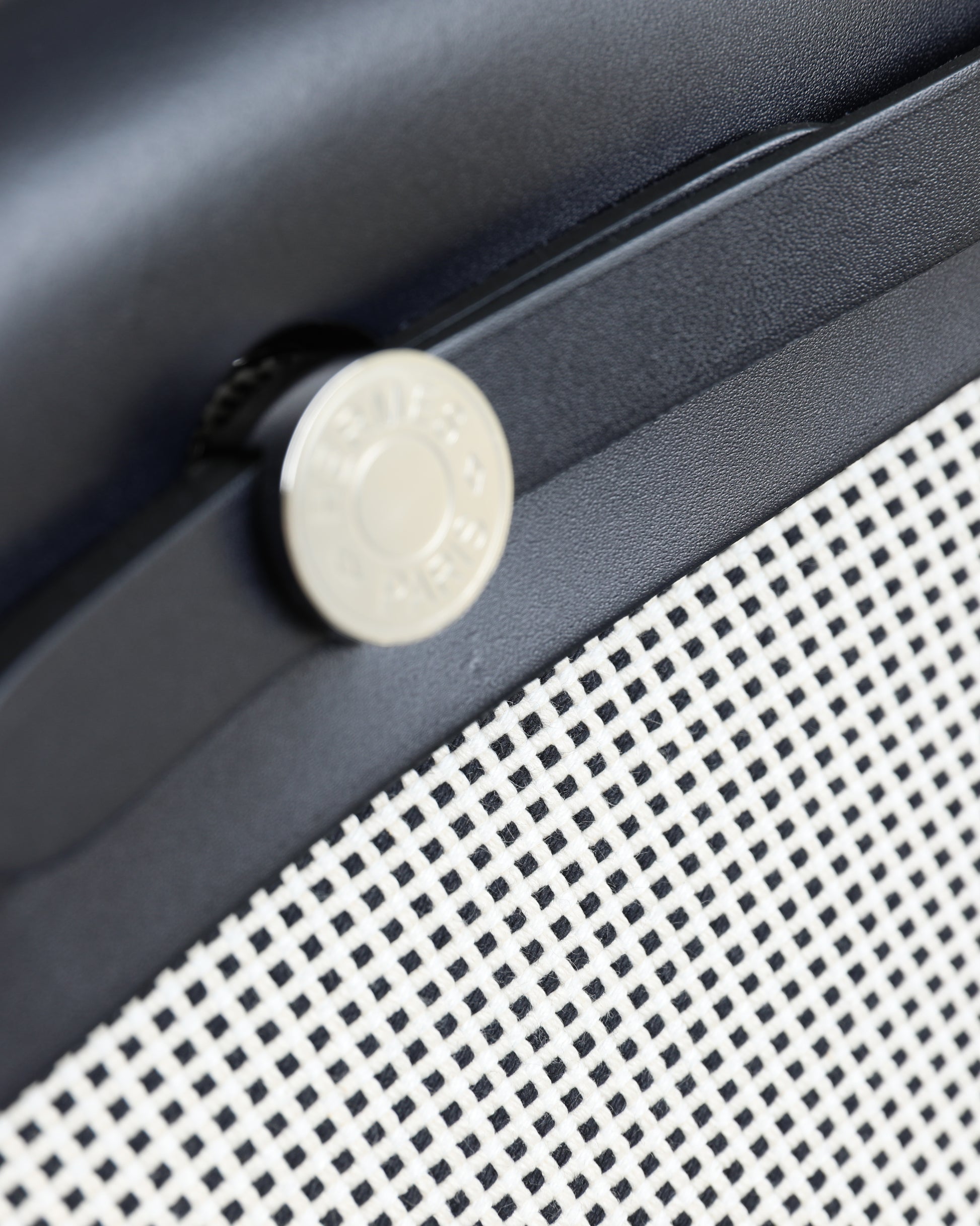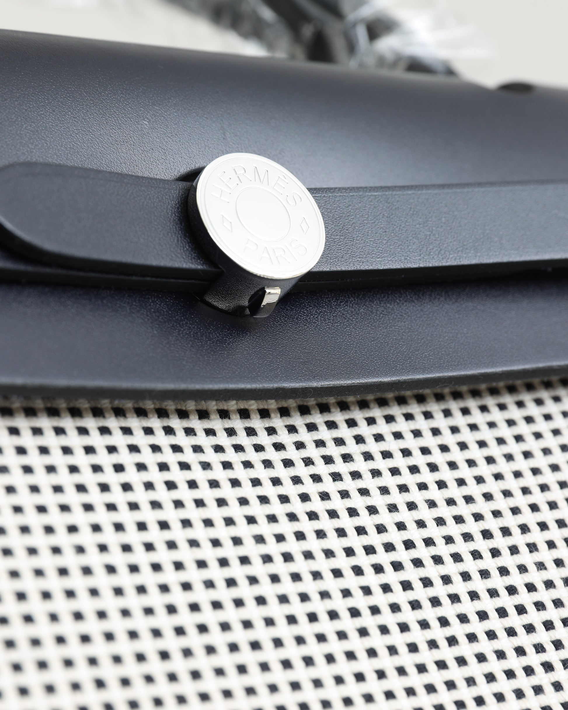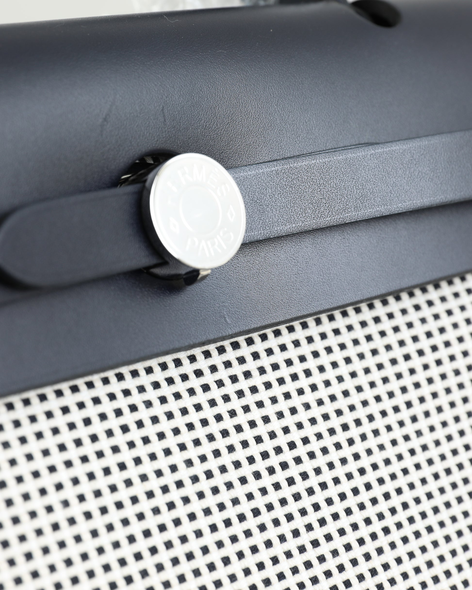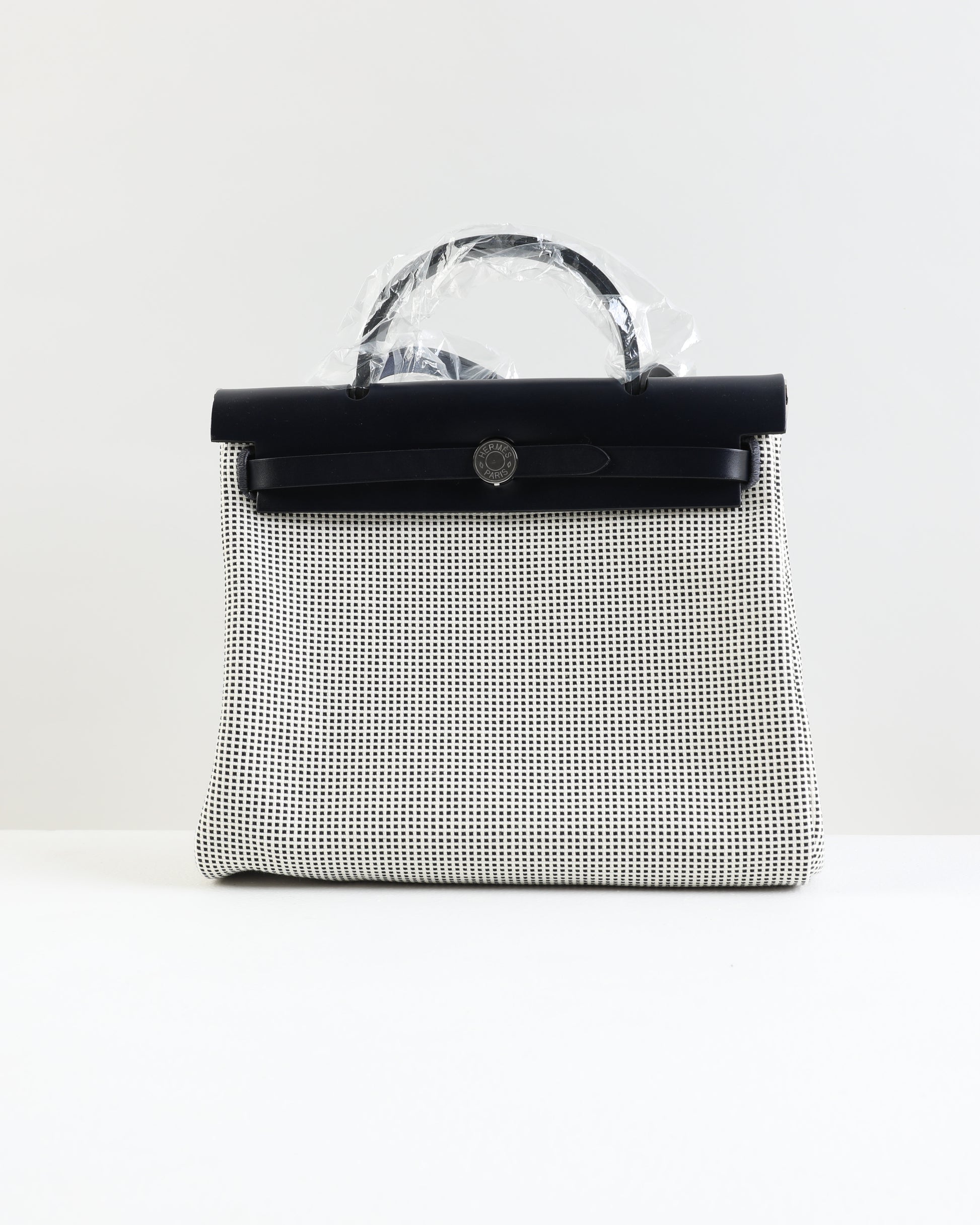 Widely considered the younger sibling of the Kelly, the Hermès Herbag 31 combines excellent quality with a more casual style. Similarly outstanding in quality, but rather sporty and free-spirited. The top of this Hermès Herbag 31 is handcrafted from Vache Hunter in black and finished with the signature “Clou de Selle” clasp. The body is made from Toile Quadrille Viking in Ecru, white and black and interchangeable, making this a two-in-one Hermès design.