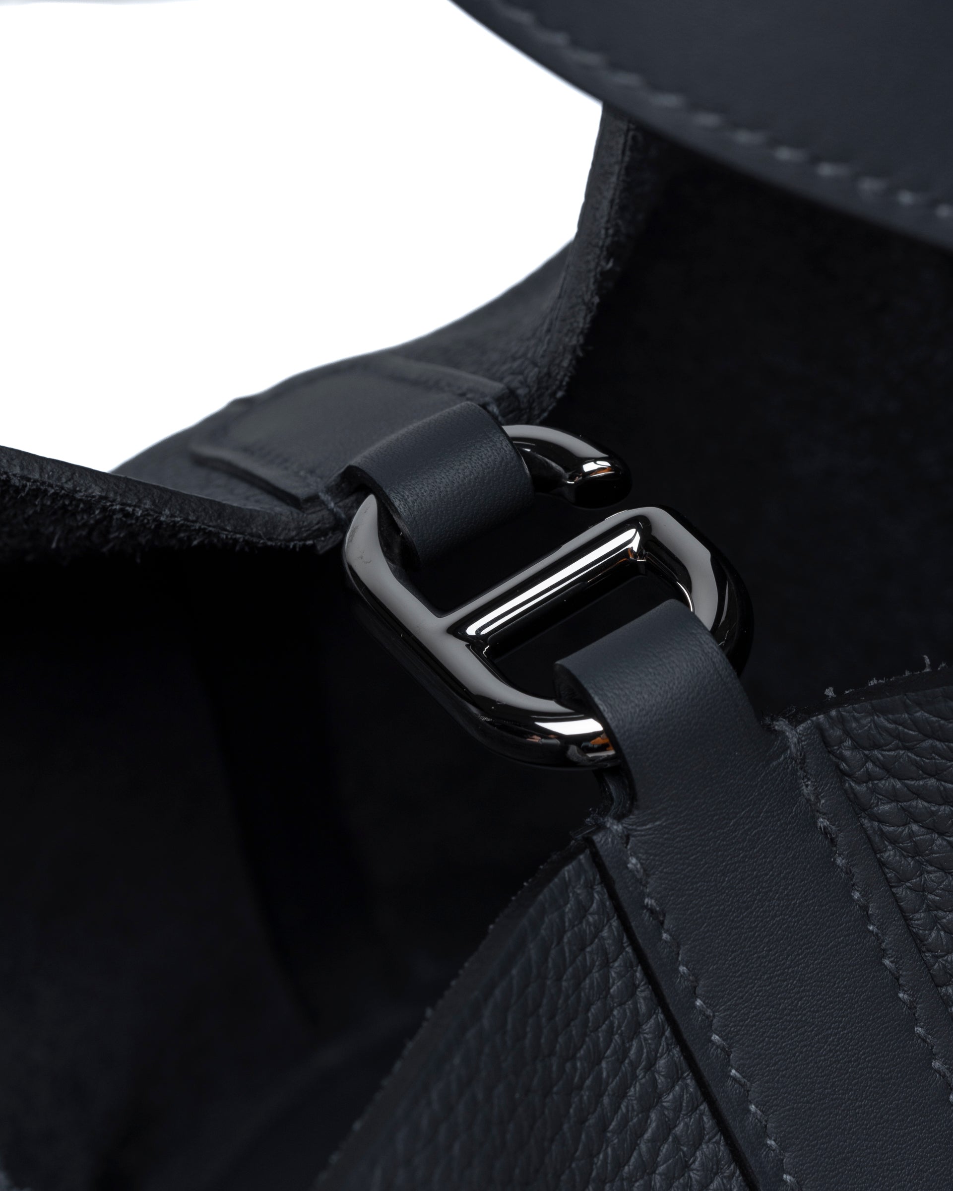 Our “In the Loop” bag from the 2022 release is a stylish and sophisticated handbag featuring a palladium-plated “Chaine d’Ancre.” It boasts a unique circular design, crafted from Clemence leather, with a loop handle and multiple motifs. The spacious interior includes an extra pocket for organization.