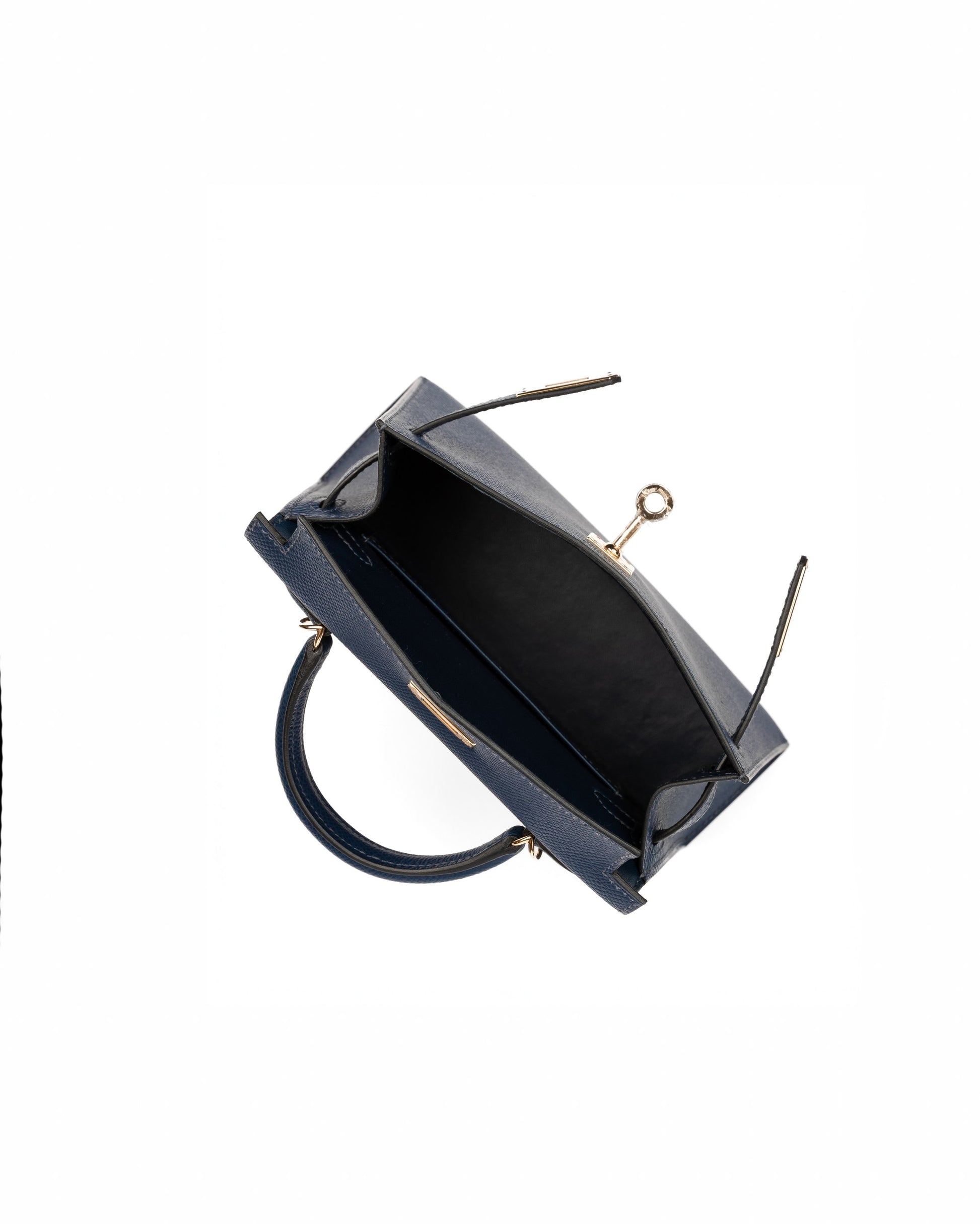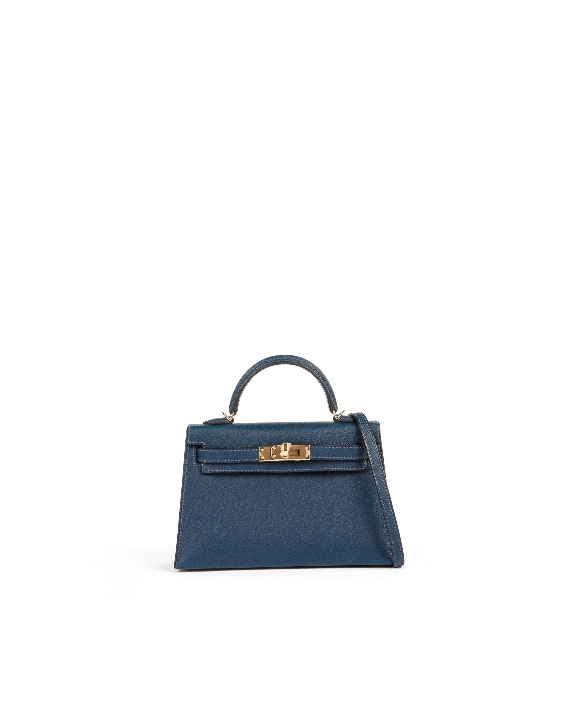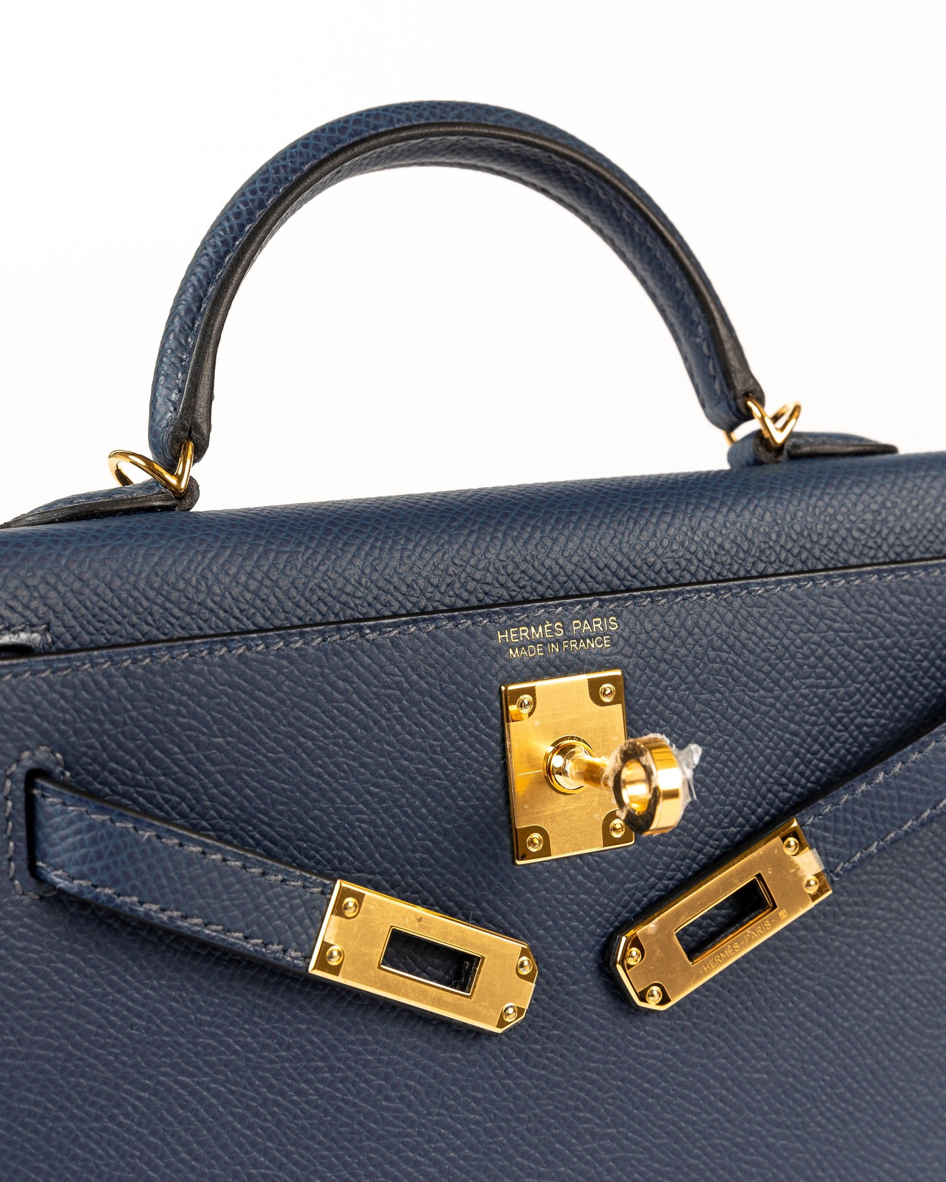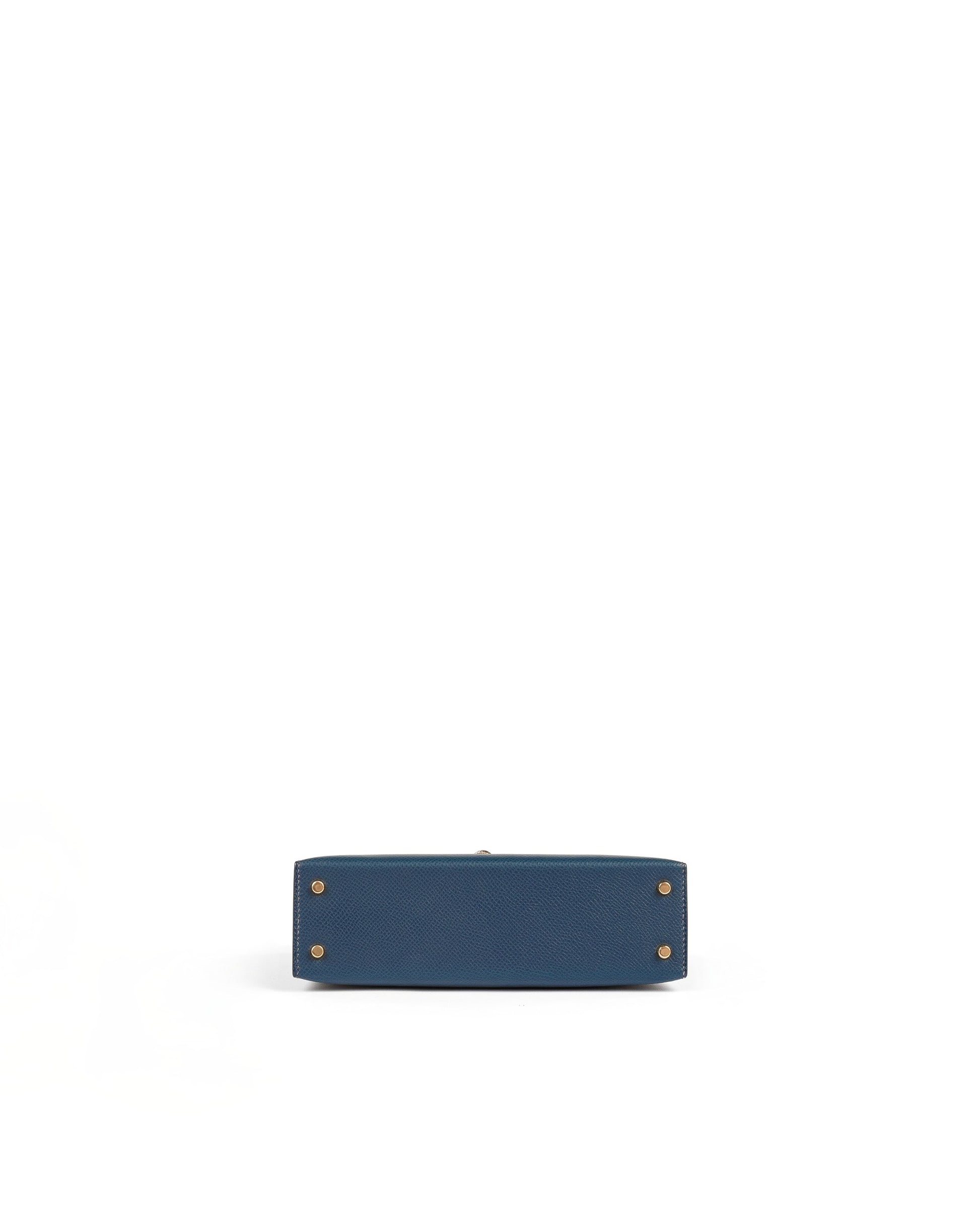 The Hermès Kelly 20 in Bleu de Prusse Epsom leather with gold hardware (ghw) is a remarkable blend of sophistication and modern elegance. The Bleu de Prusse shade, inspired by the deep, rich tones of Prussian blue, offers a refined alternative to classic black, adding a touch of distinction to any ensemble. This color is both versatile and striking, making it a standout choice in Hermès’ palette.