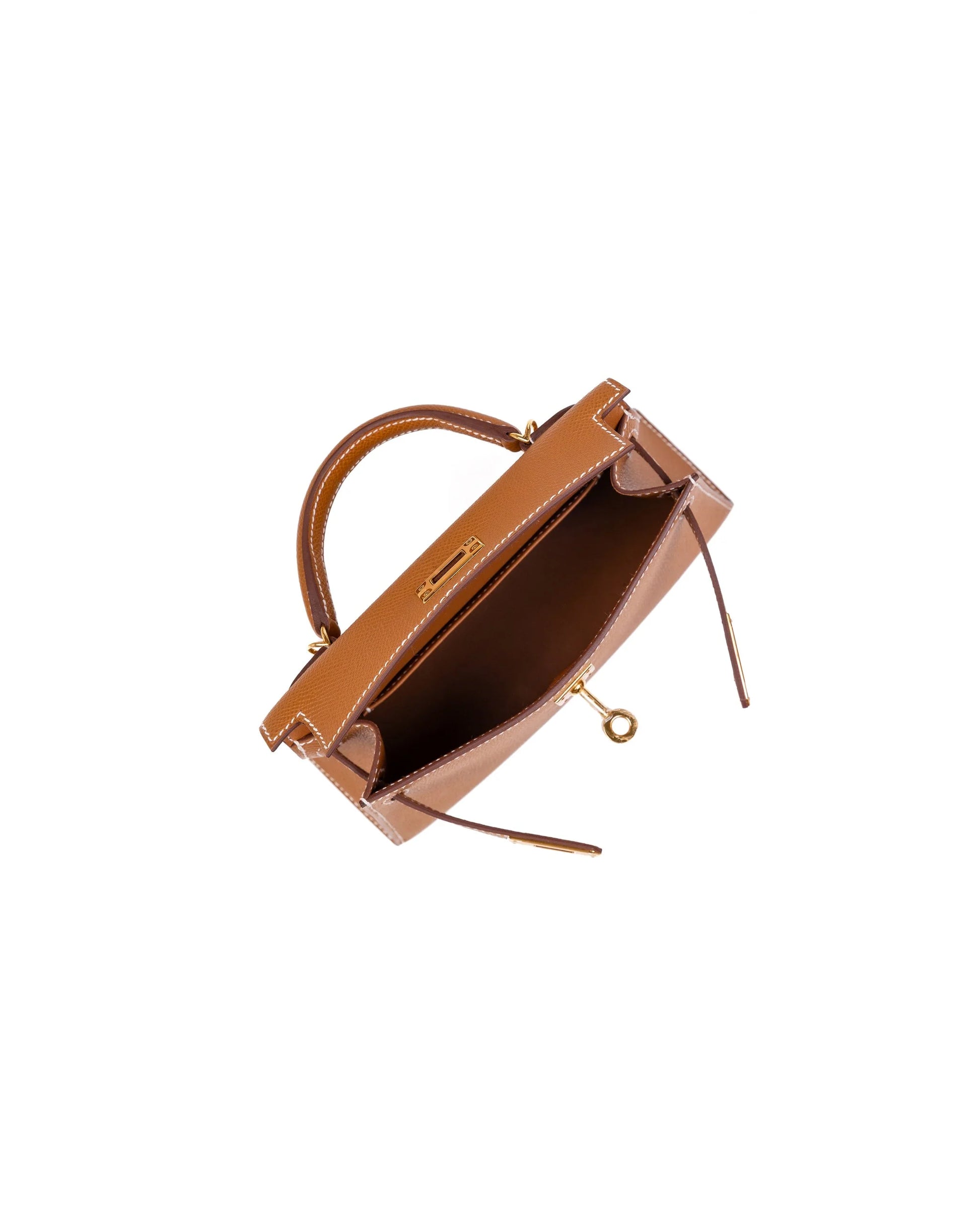 Among Hermès aficionados, this exact configuration, Gold Epsom with Gold Hardware in a Kelly 20 Sellier, is considered one of the top three most sought-after “holy grail” combinations, standing alongside only Black with Gold Hardware and Etoupe with Gold Hardware. The warmth of the gold-on-gold pairing makes the piece exceptionally versatile, allowing it to transition effortlessly from day to night, from season to season.