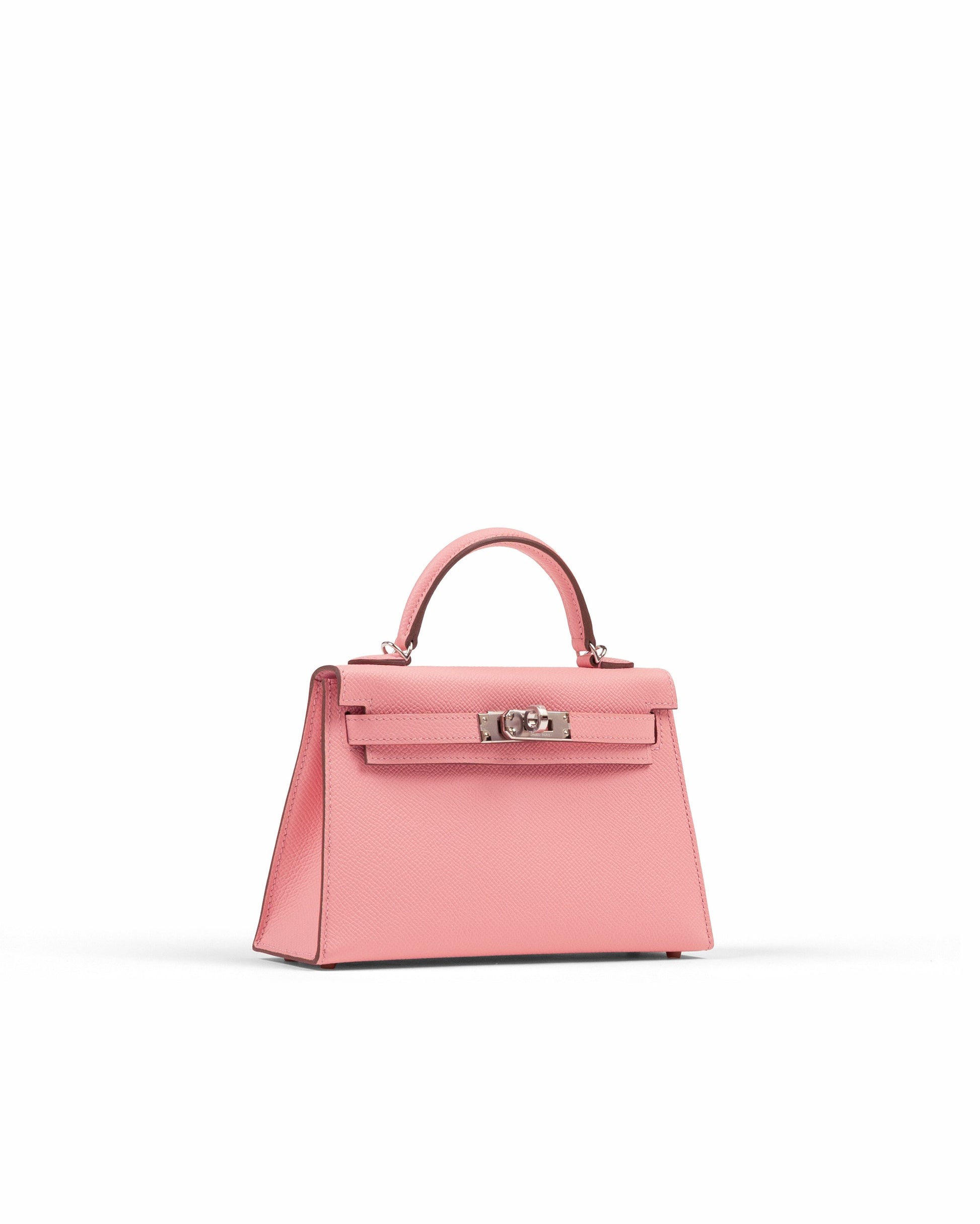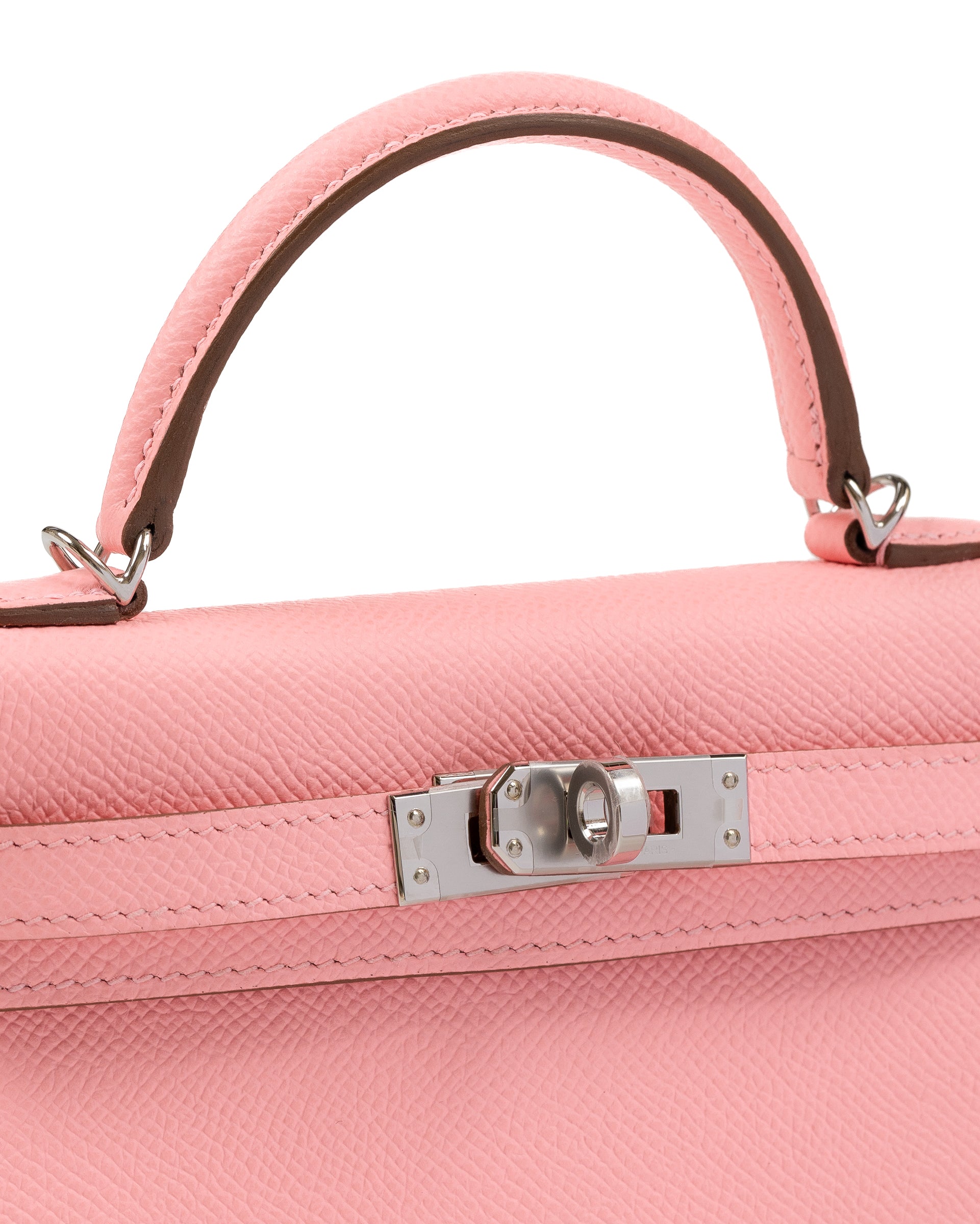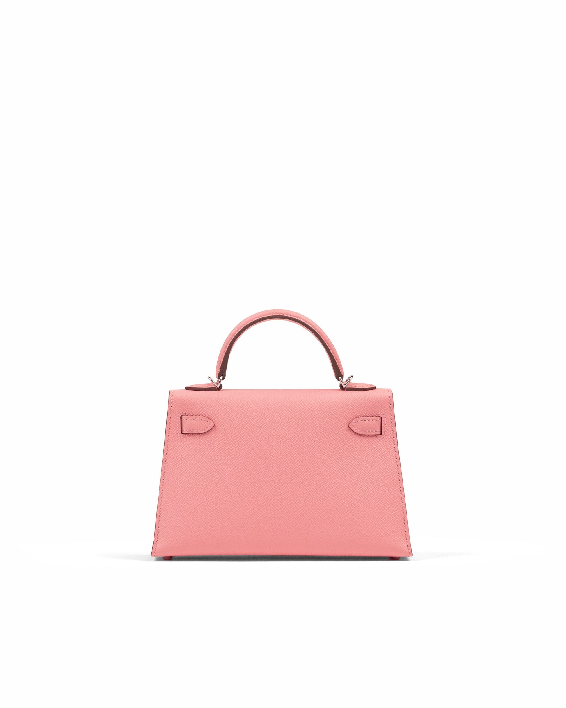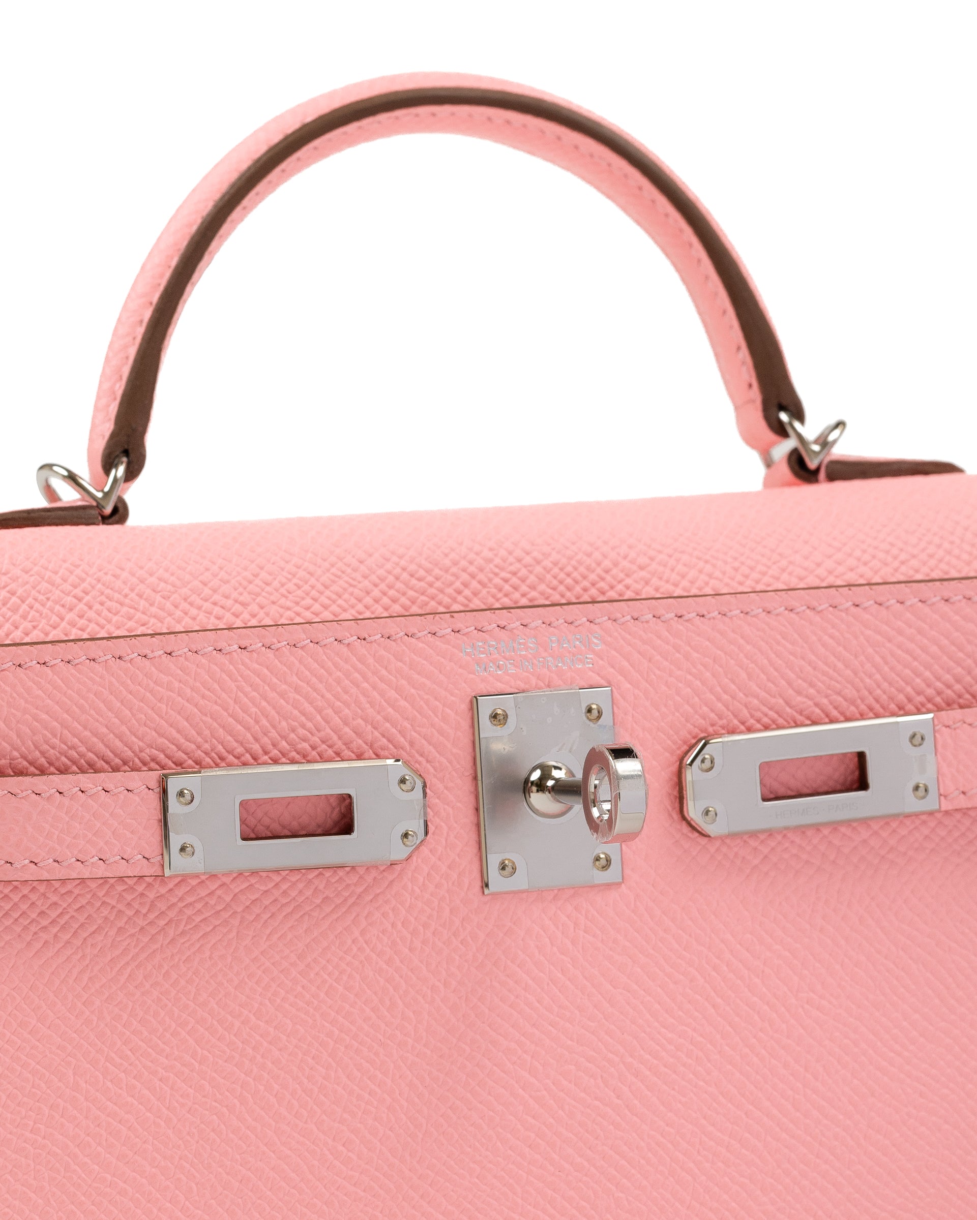 Crafted from Epsom leather in Rose Confetti — a vibrant, high-saturation pink inspired by playful femininity and reminiscent of spring florals and pastel candy tones — this shade is one of Hermès’ most joyful and collectible colors. Rarely produced and even more scarcely seen in the ultra-compact Kelly 20 Sellier silhouette, this piece is a standout treasure in the world of Hermès minis.