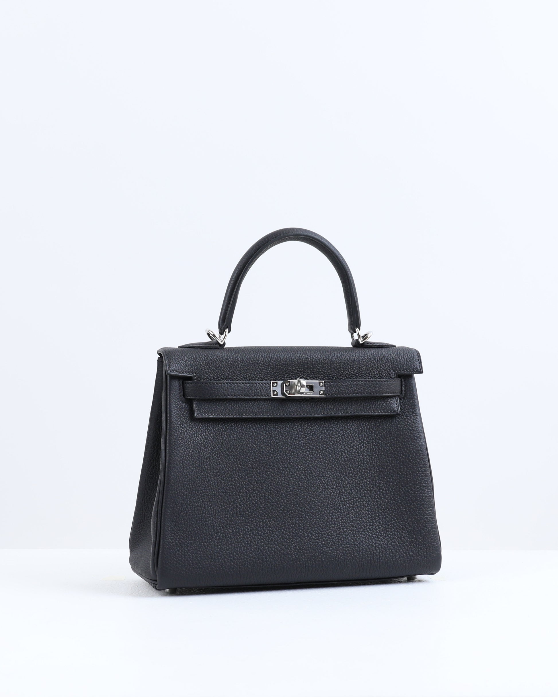 Kelly 25 Black in Togo Leather with Palladium Hardware