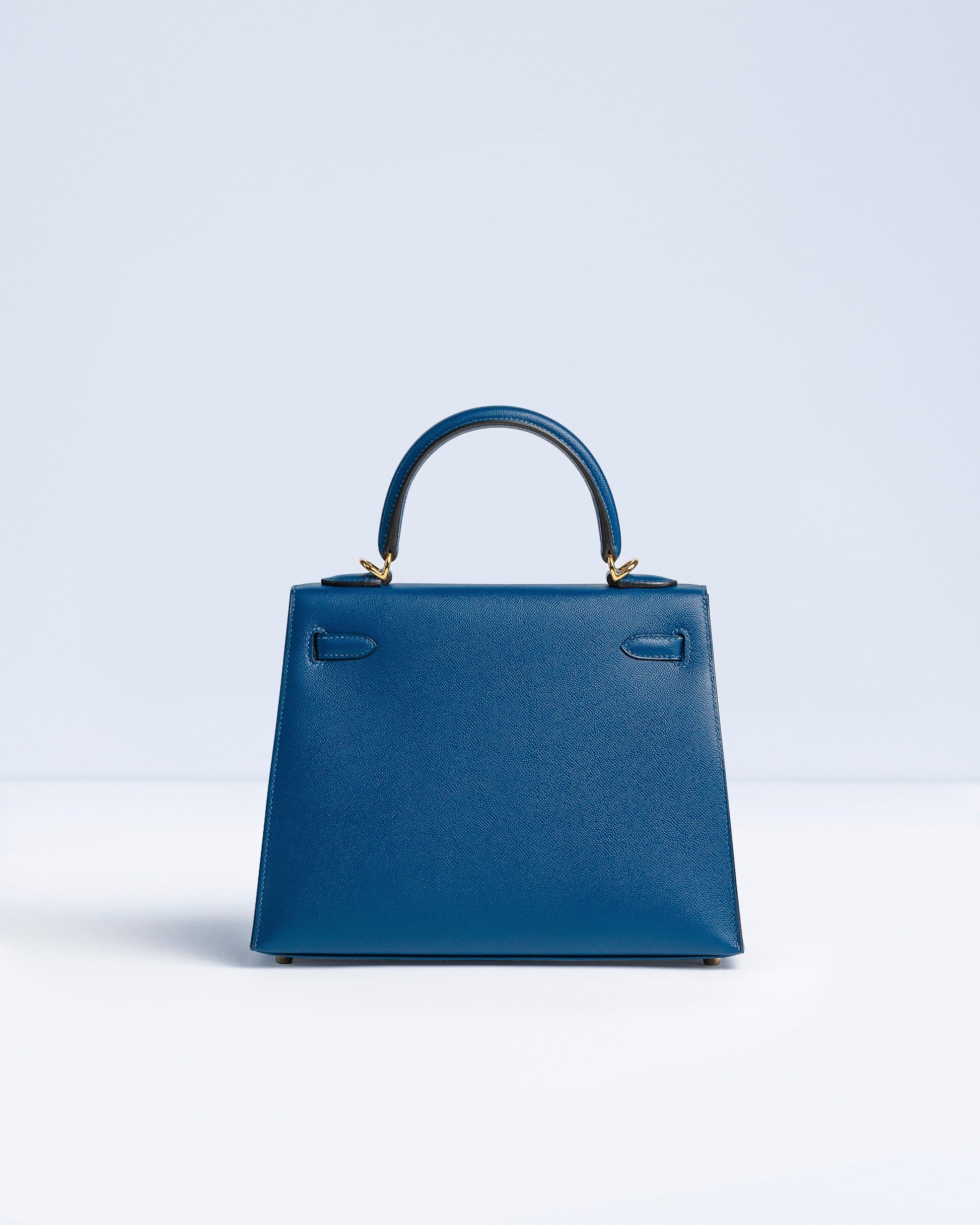 Kelly 25 Sellier Deep Bleu Veau Madame with Gold Hardware