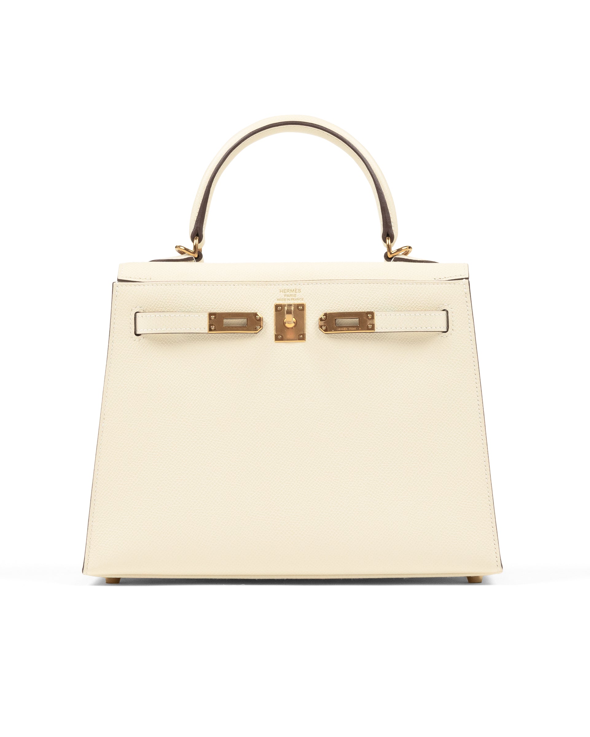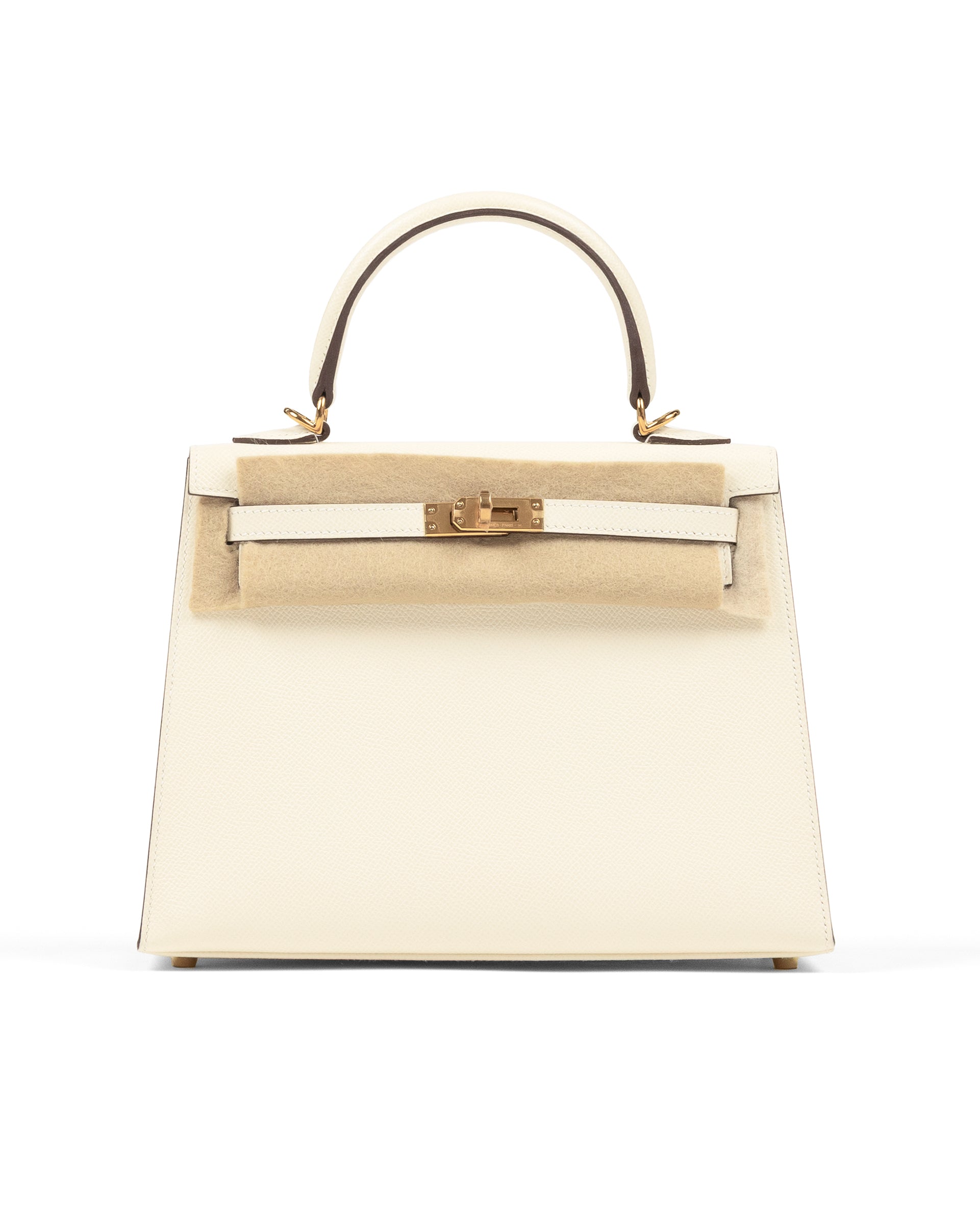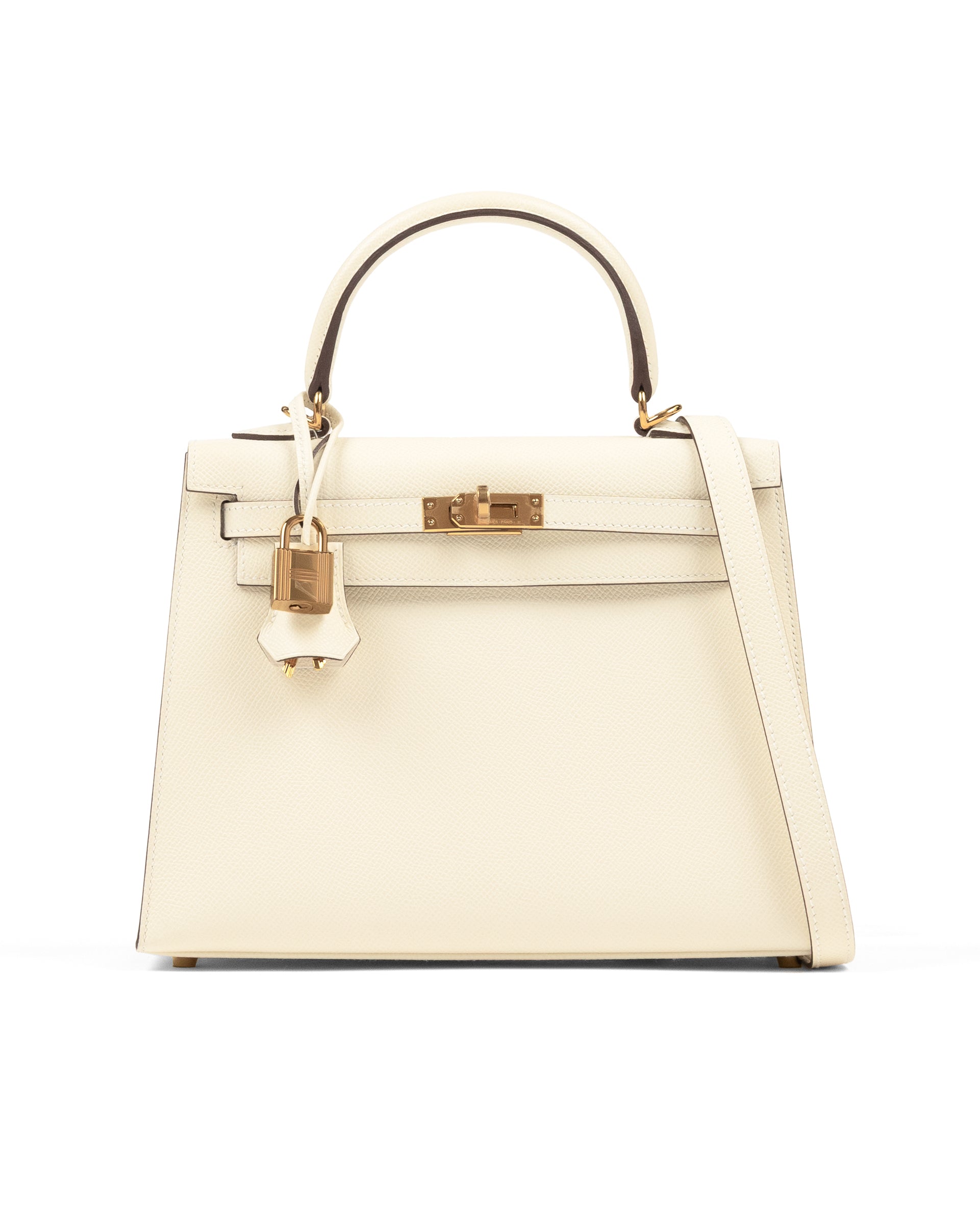 Refined, structured, and perpetually in demand — the Kelly 25 in Nata is one of the most coveted neutral bags in the Hermès lineup. This soft off-white shade, introduced in 2019, carries subtle ivory undertones that offer a warmer, creamier alternative to classic Blanc. When paired with Gold hardware, it creates a contrast that feels both feminine and striking, making it a staple piece for collectors and minimalists alike.