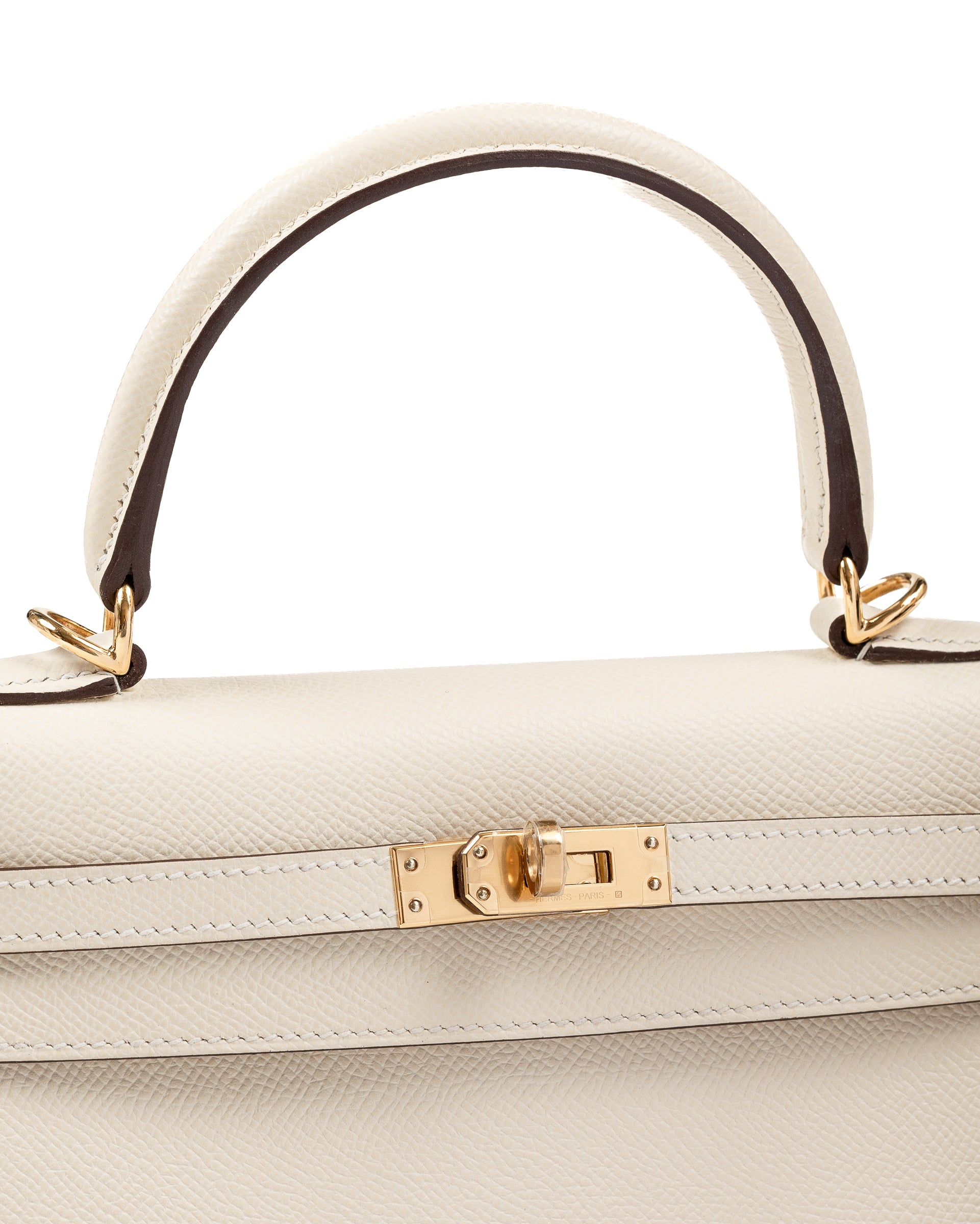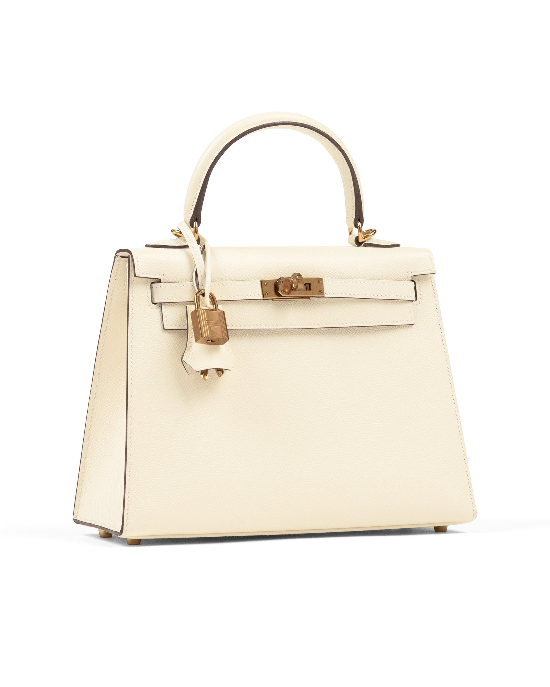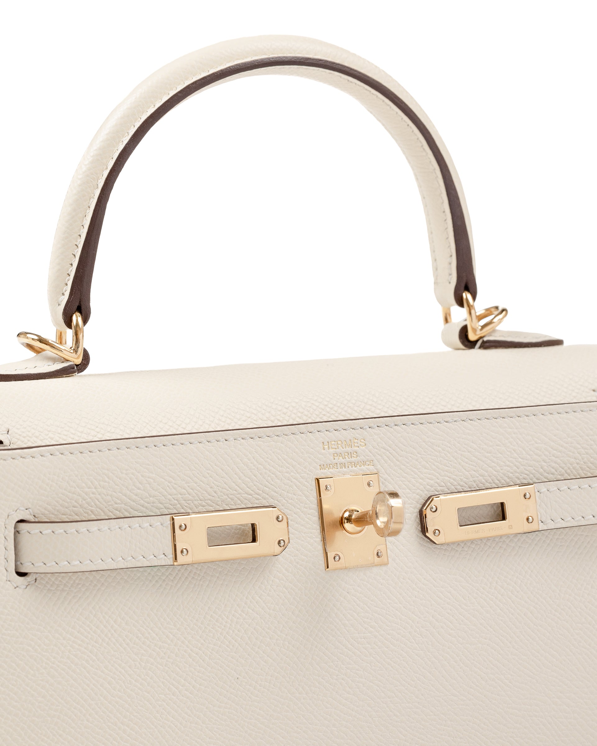Refined, structured, and perpetually in demand — the Kelly 25 in Nata is one of the most coveted neutral bags in the Hermès lineup. This soft off-white shade, introduced in 2019, carries subtle ivory undertones that offer a warmer, creamier alternative to classic Blanc. When paired with Gold hardware, it creates a contrast that feels both feminine and striking, making it a staple piece for collectors and minimalists alike.