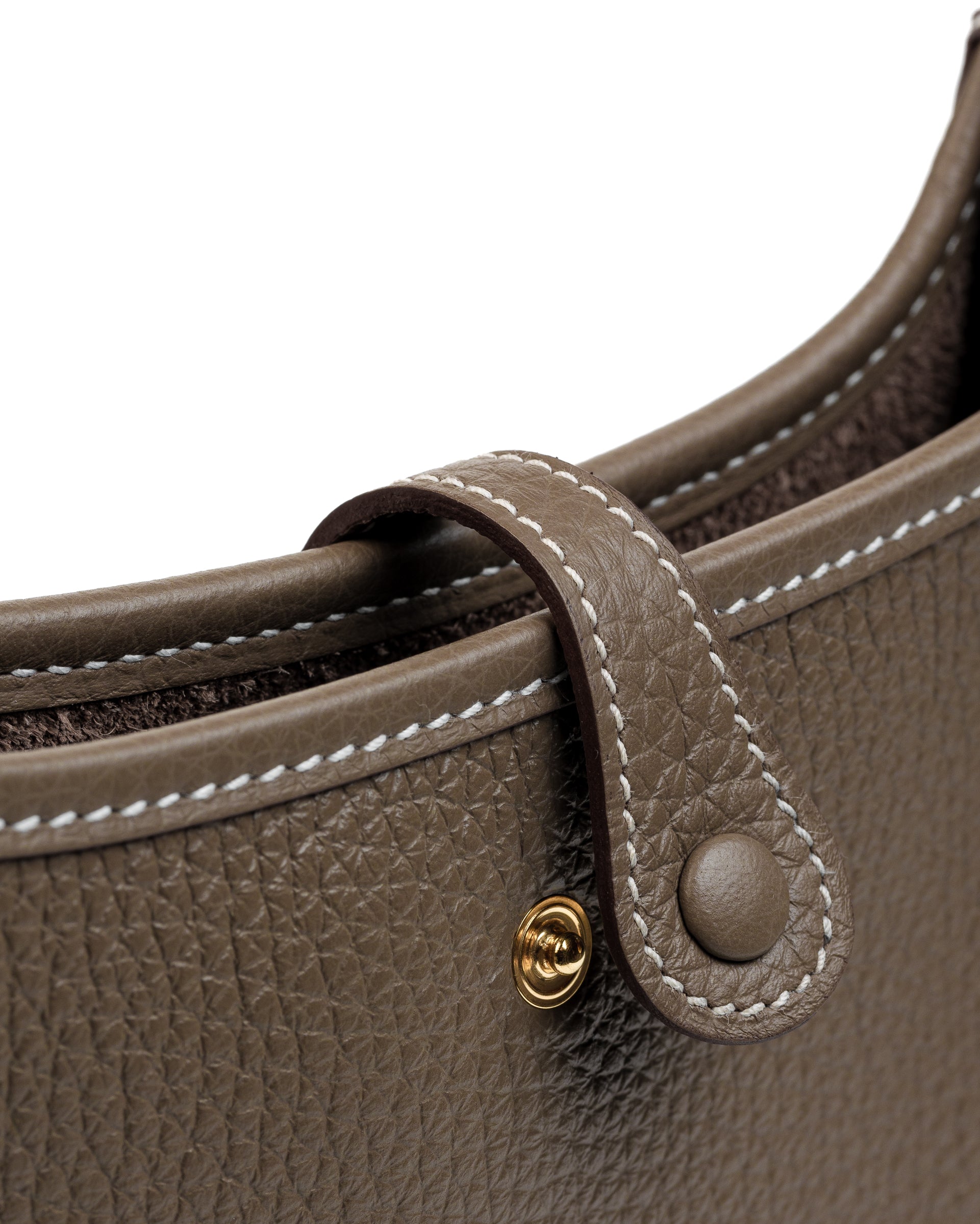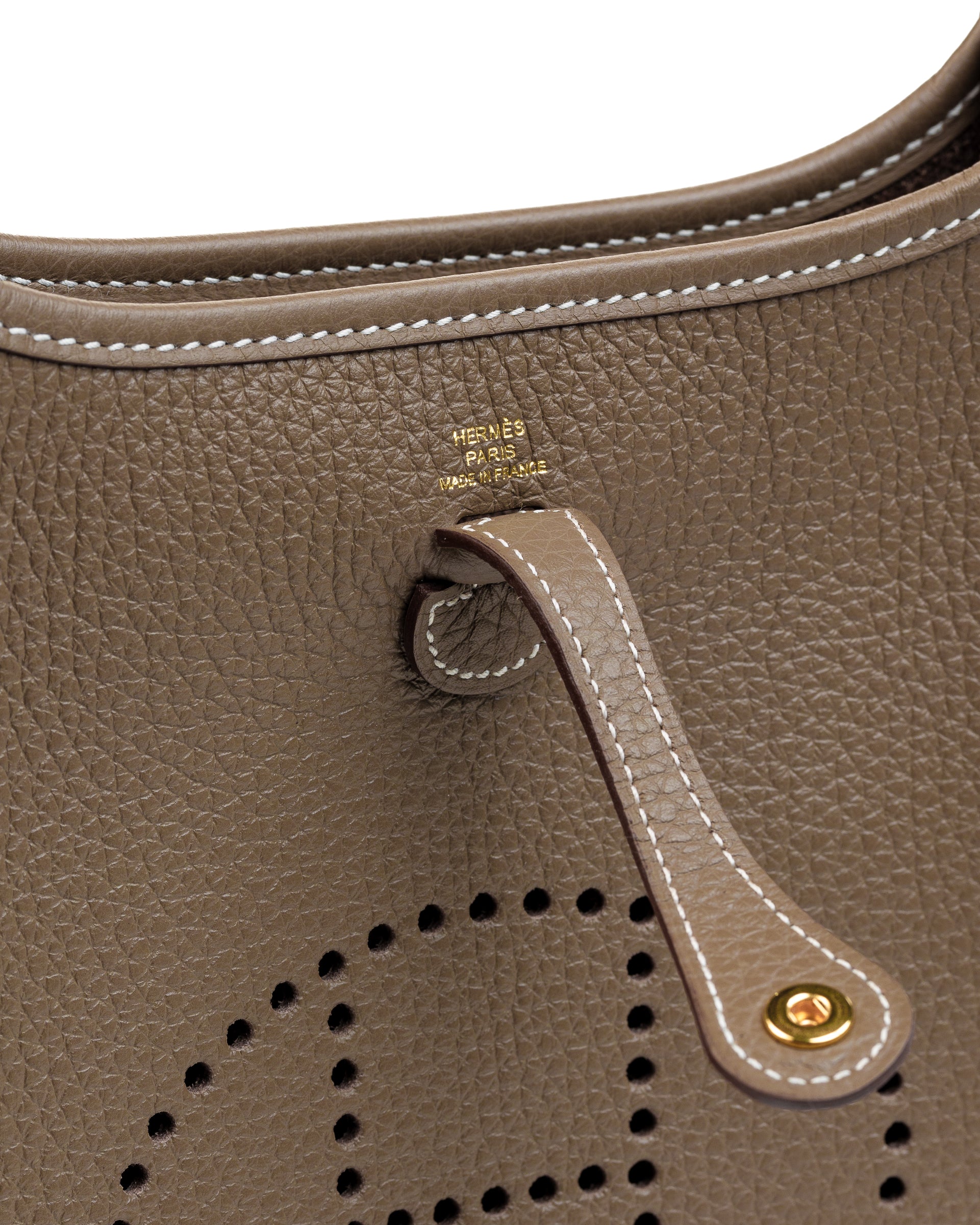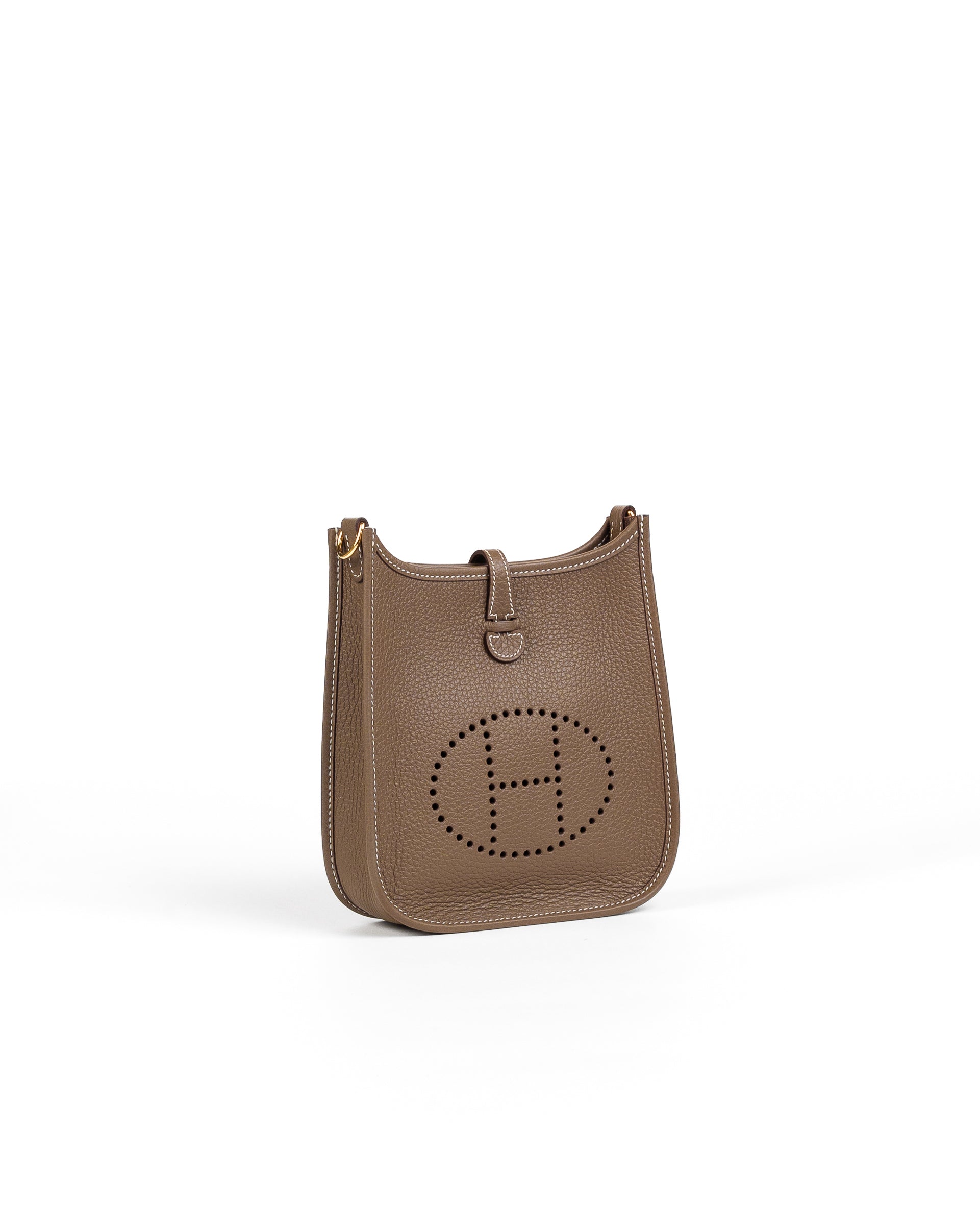 The Hermès Mini Evelyne in Etoupe and Blue Indigo is a harmonious blend of timeless neutrals and bold contrasts. Etoupe, inspired by the natural earthy tones of unpolished clay, reflects Hermès’ commitment to grounding its designs in nature’s simplicity. Paired with Blue Indigo, a deep shade reminiscent of classic denim and twilight skies, this combination offers both versatility and a subtle pop of color. Accented with gold hardware, this Mini Evelyne exudes understated sophistication.