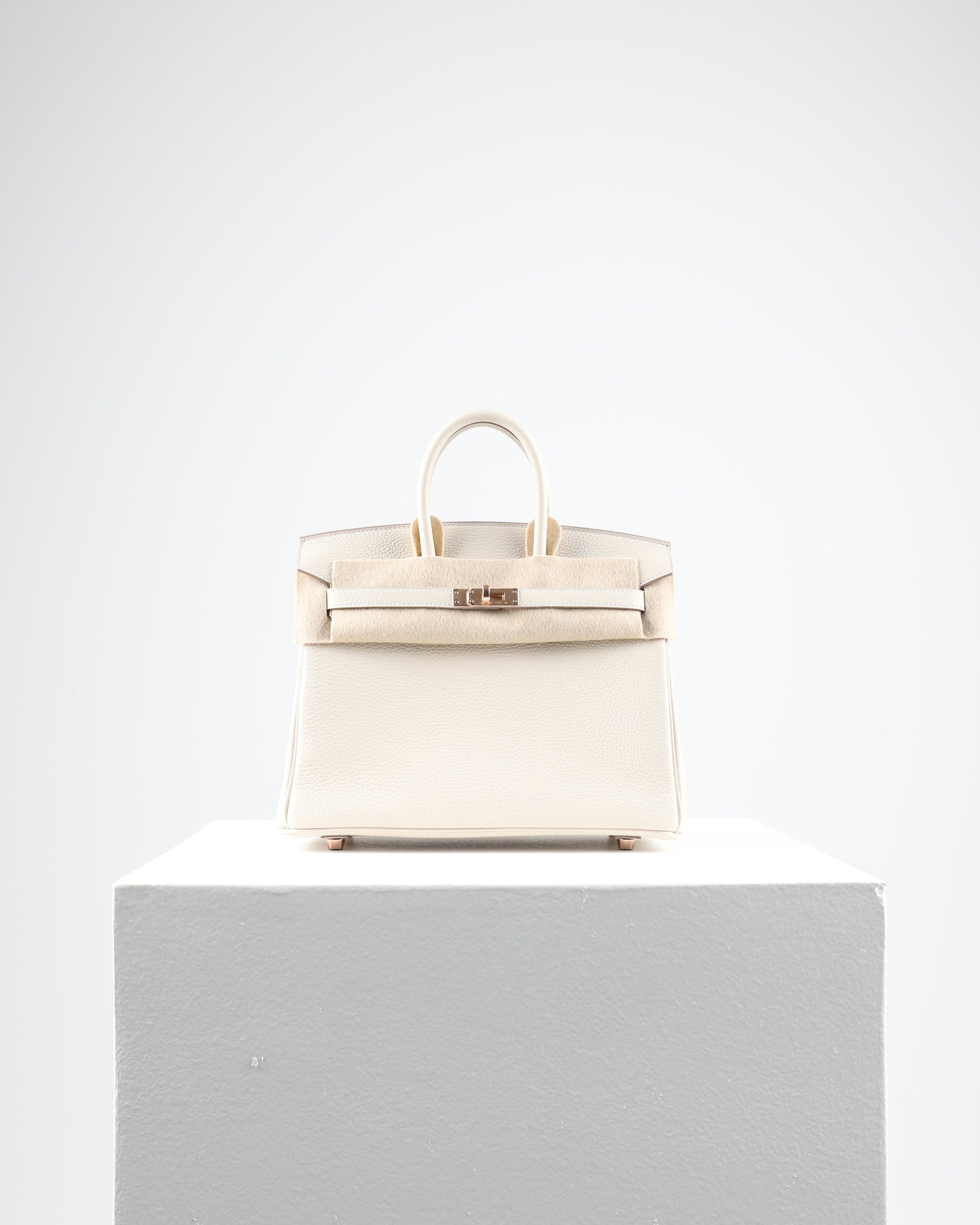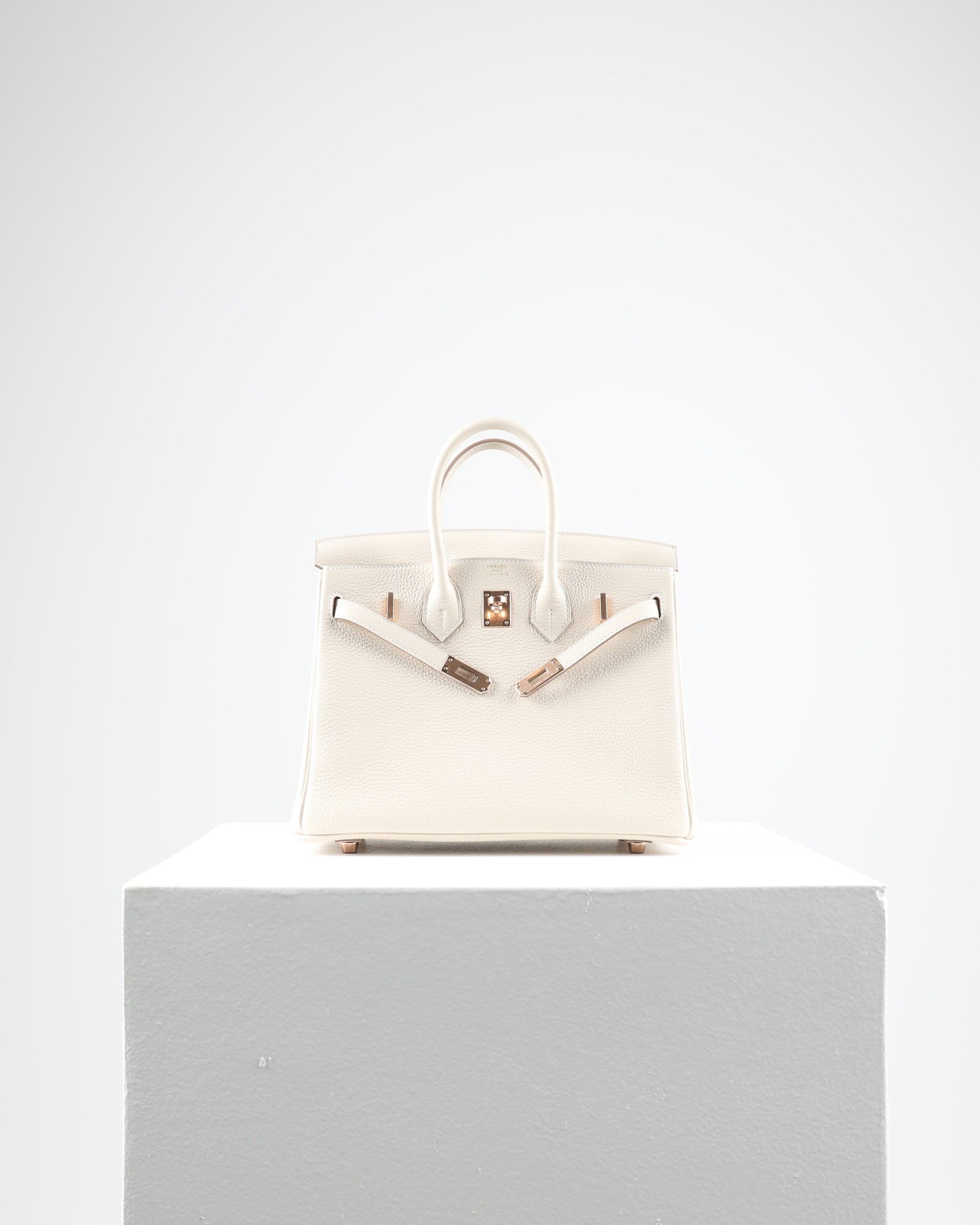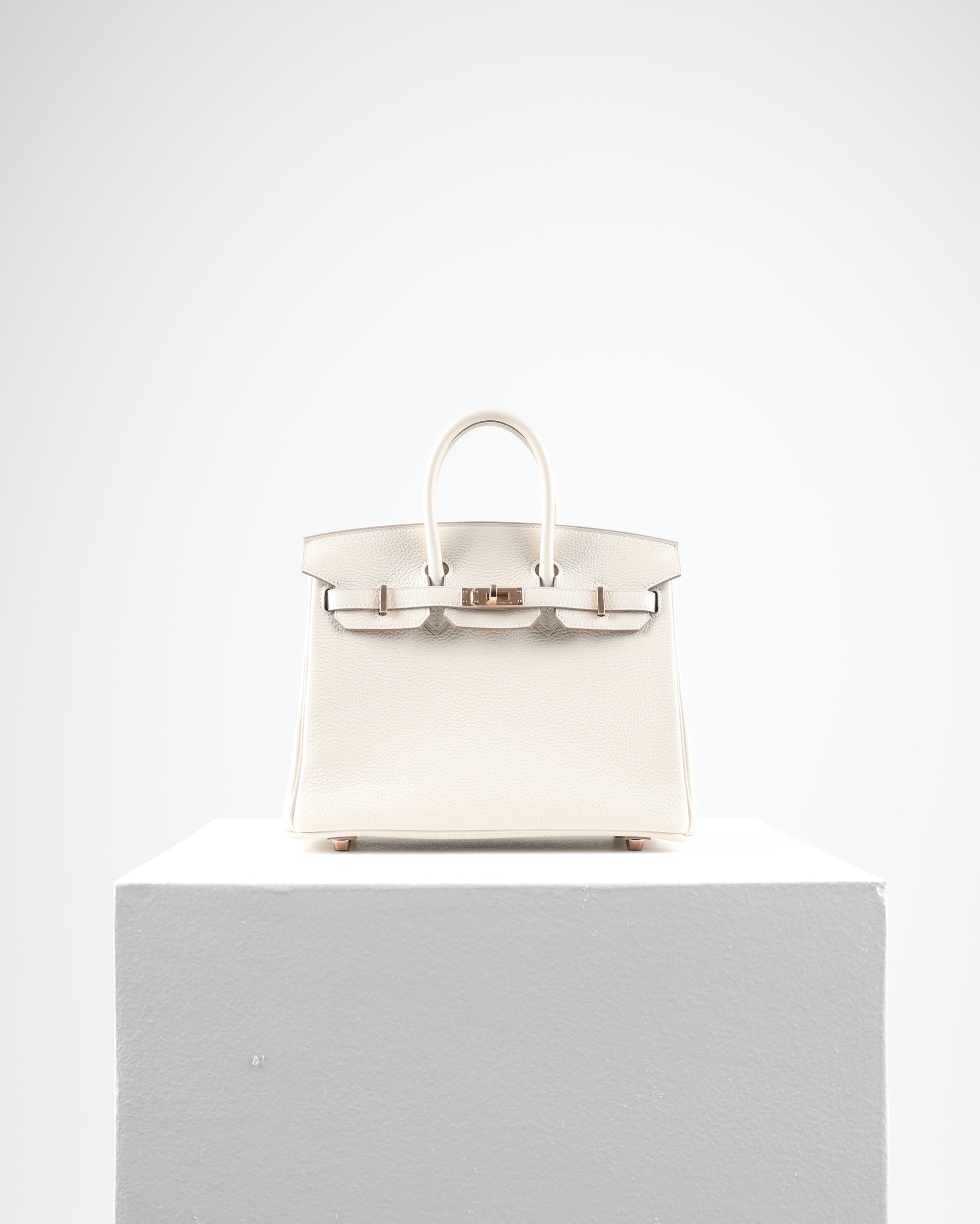 Our Birkin 25 in Craie with gold hardware is a stunning and rare collector's piece, crafted with Togo leather. Togo leather is known for its natural grain and durability, making it a popular choice for collectors' handbags. The leather is carefully selected and tanned to create a soft yet sturdy material that ages beautifully over time.