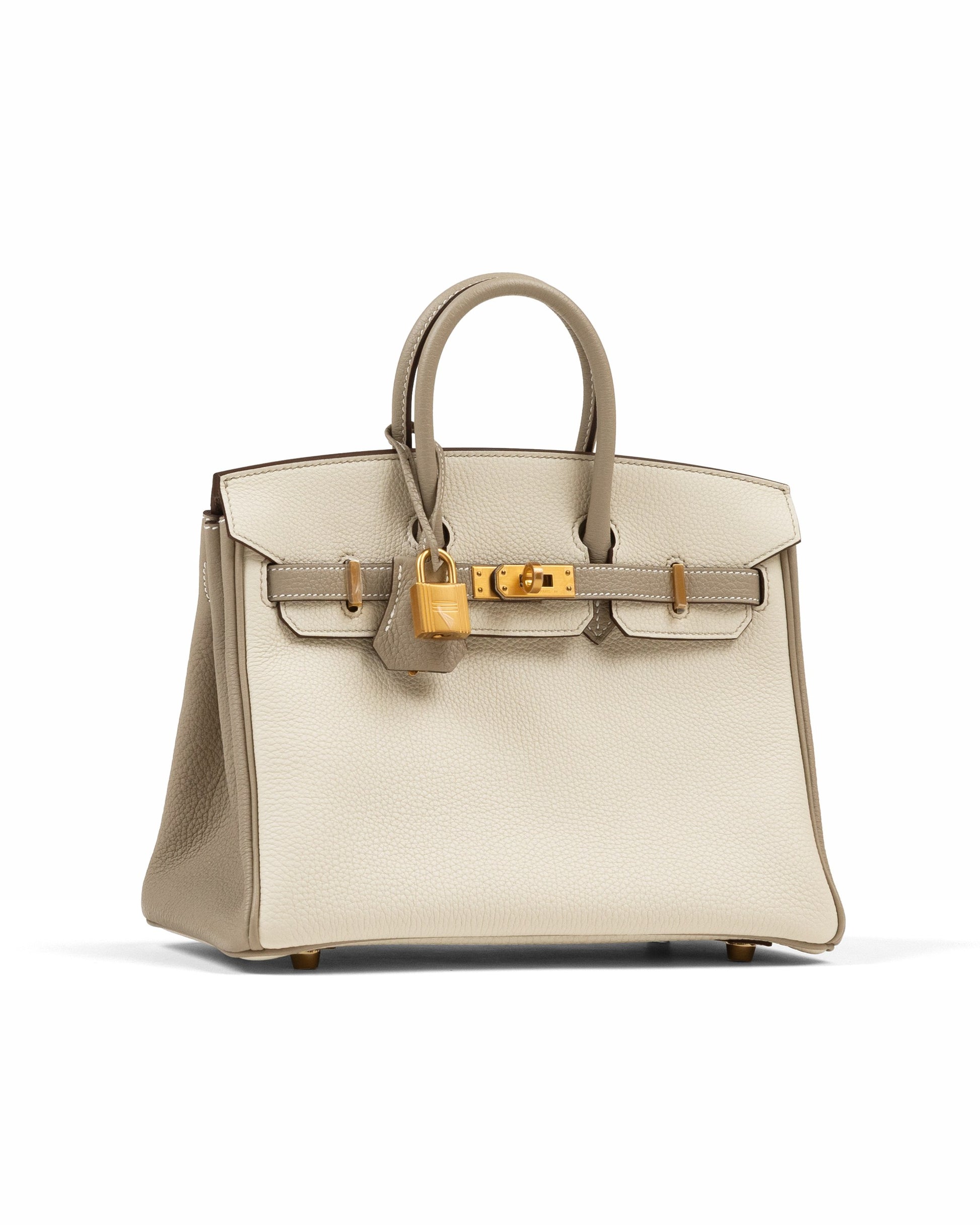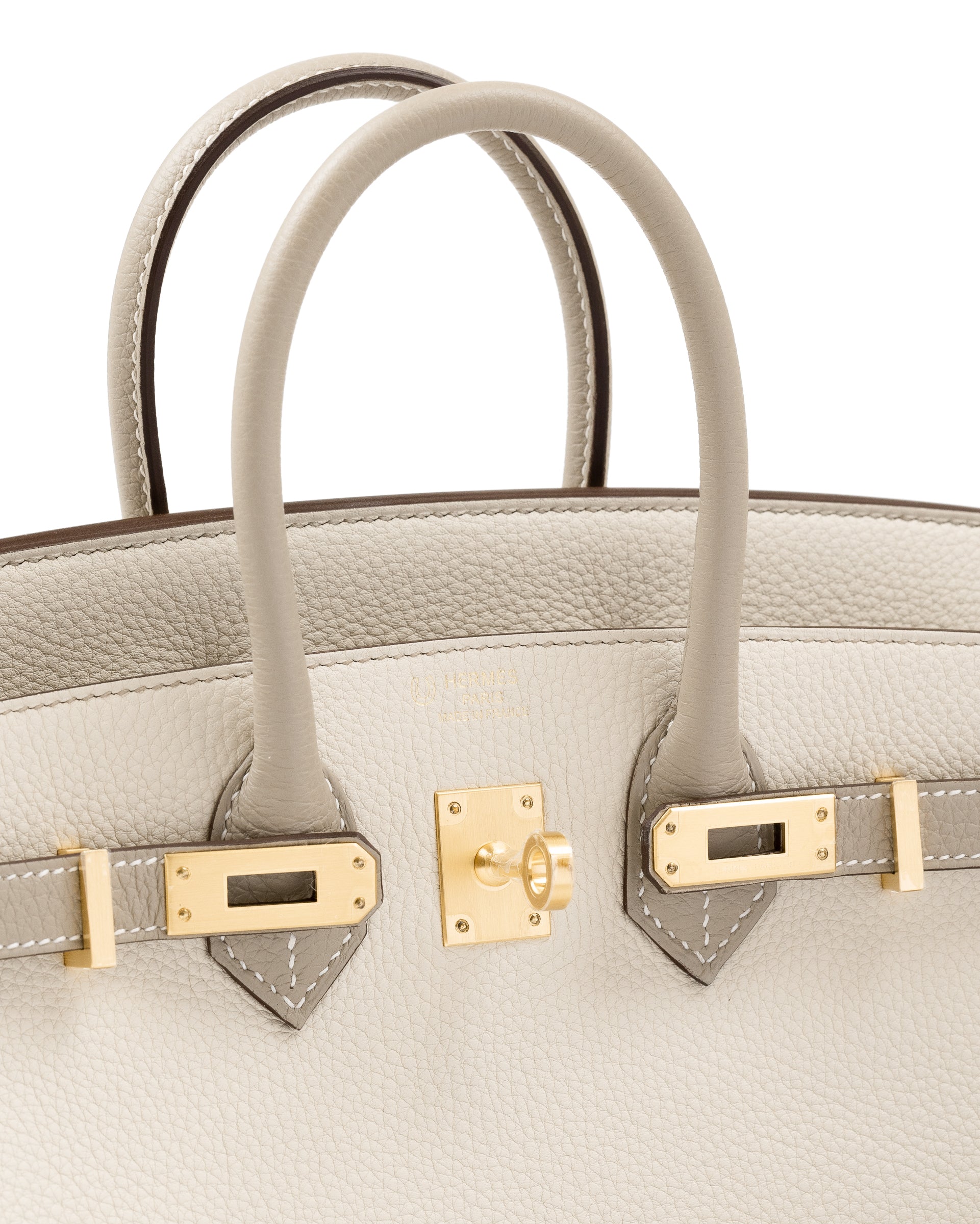 Birkin 25 HSS Craie/Gris Tourterelle in Togo Leather with Brushed Gold Hardware