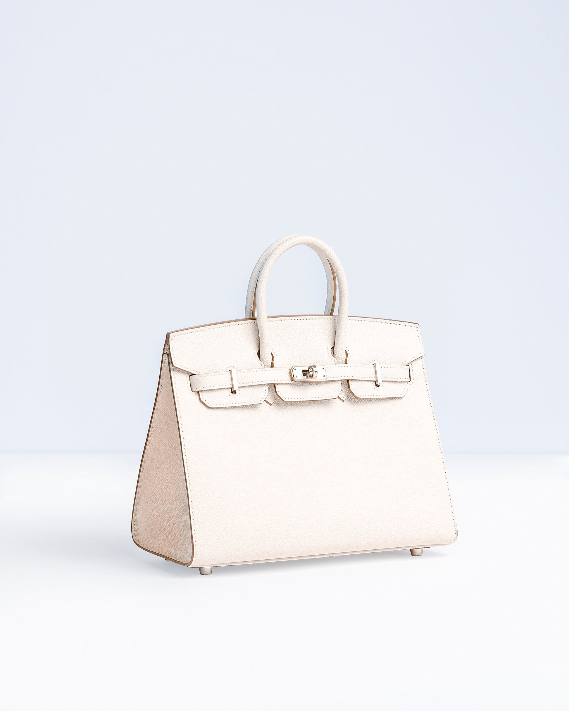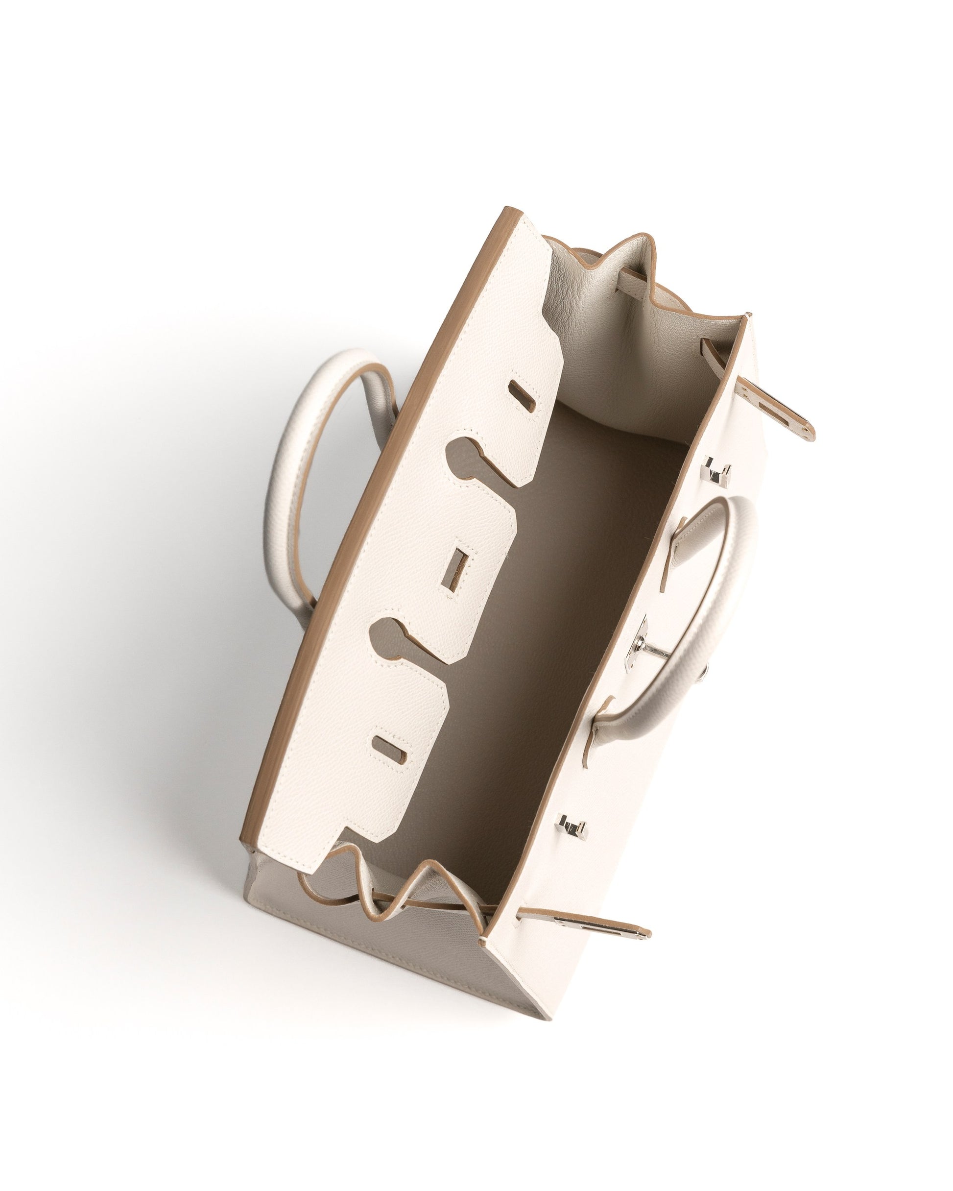 Introducing the Sellier Birkin 25 in Gris Pale, crafted from luxurious Sellier leather with Palladium hardware. This sophisticated shade, part of Hermès’ 2023 SS collection, embodies the theme of “Astonishing Hermès.” Gris Pale seamlessly blends pearl grey and mellow white, offering a harmonious beauty that radiates serene elegance. With a subtle greyish hue, it exudes a subdued charm compared to the clean white “New White” and achieves a more modern feel than “Mushroom.” Elevate your style with this neutral and balanced accessory that effortlessly complements any color palette.