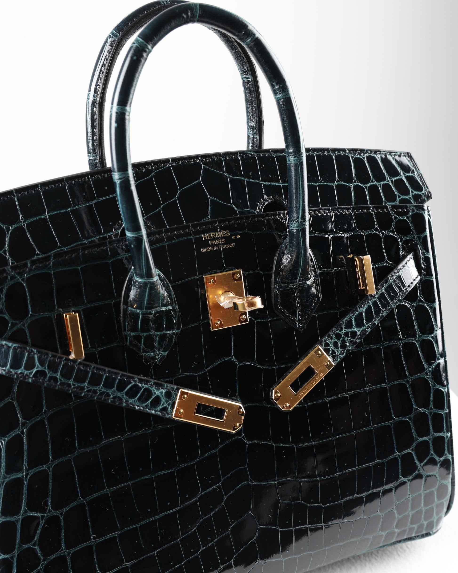 Birkin 25 Vert Fonce Niloticus Crocodile with Gold Hardware