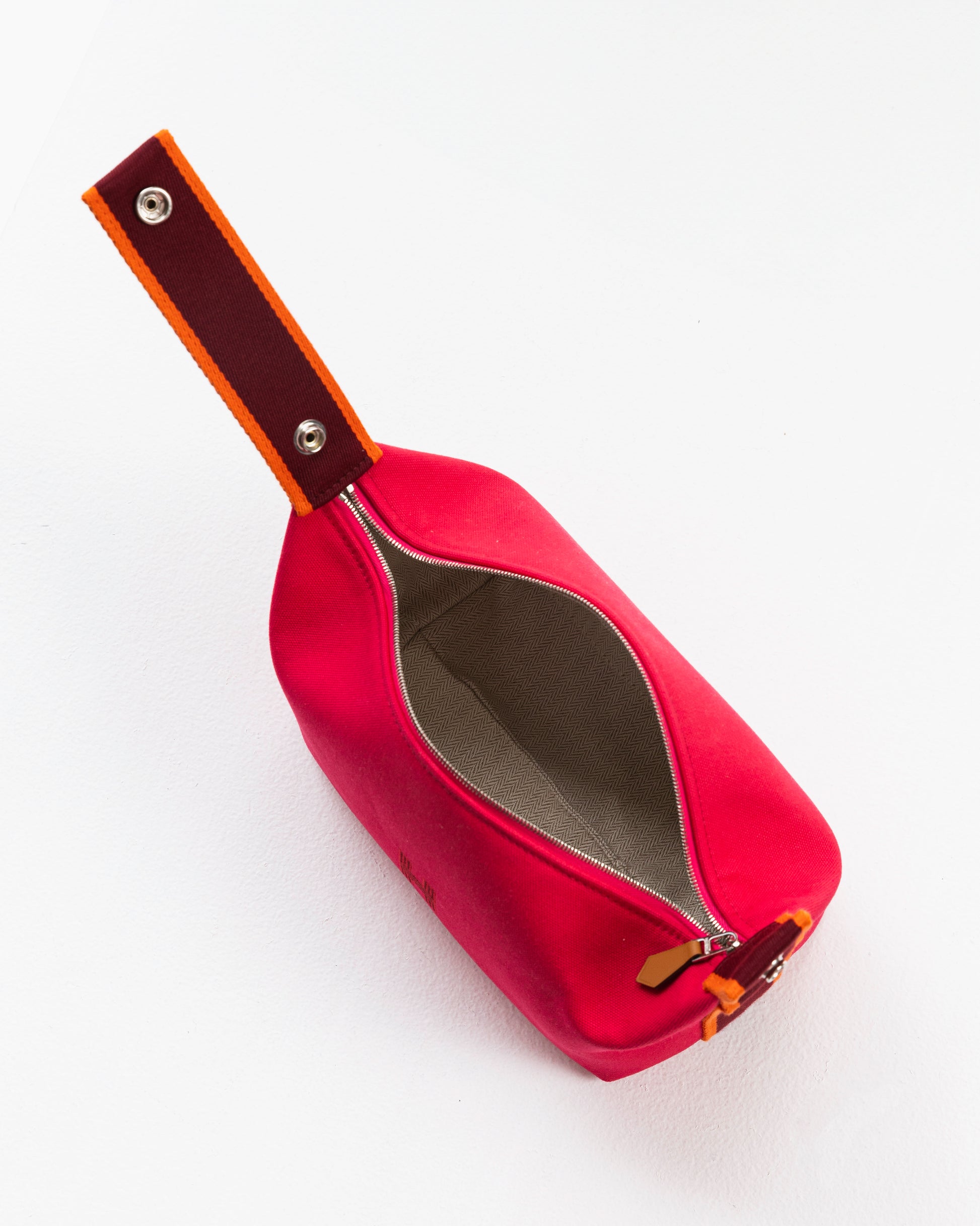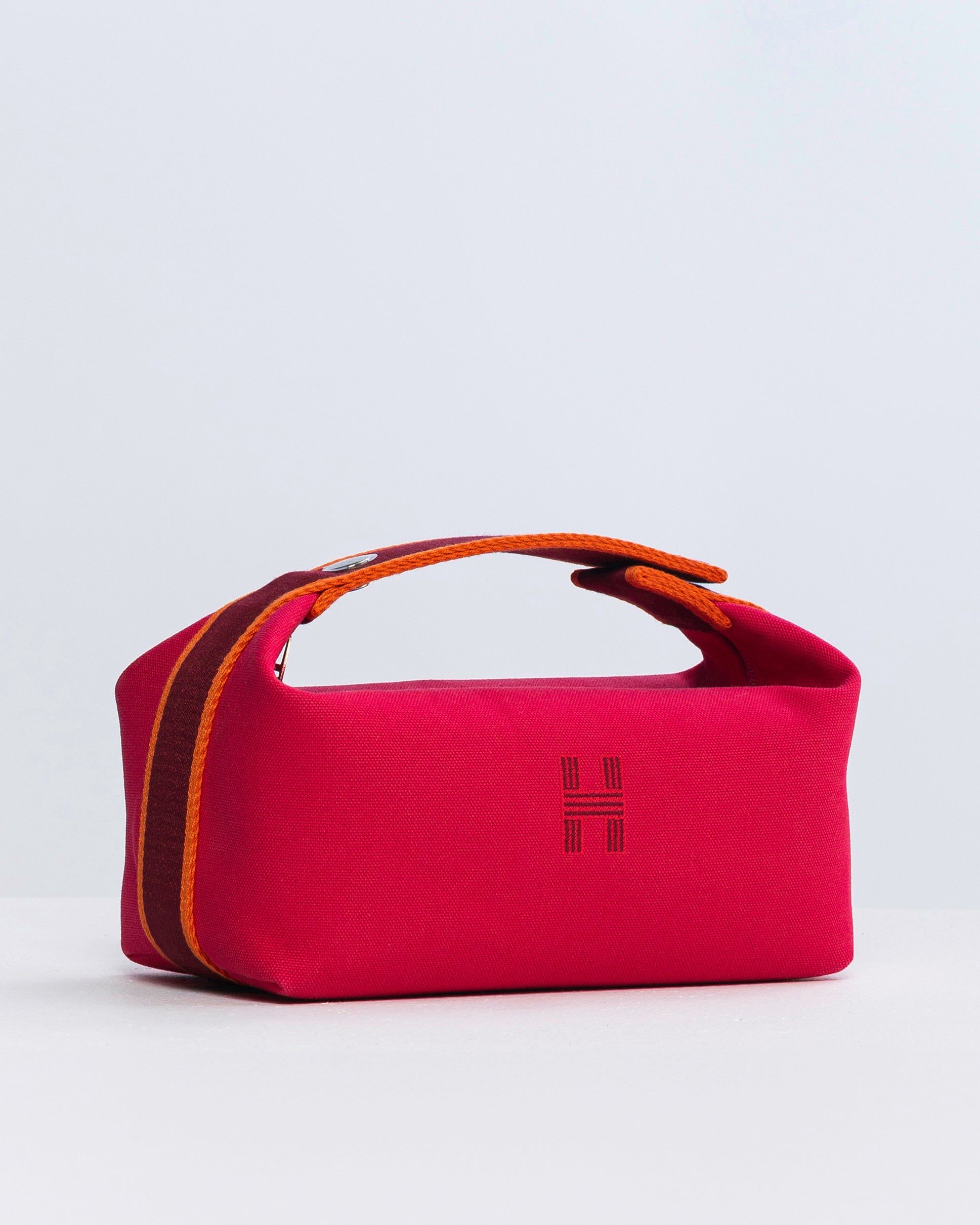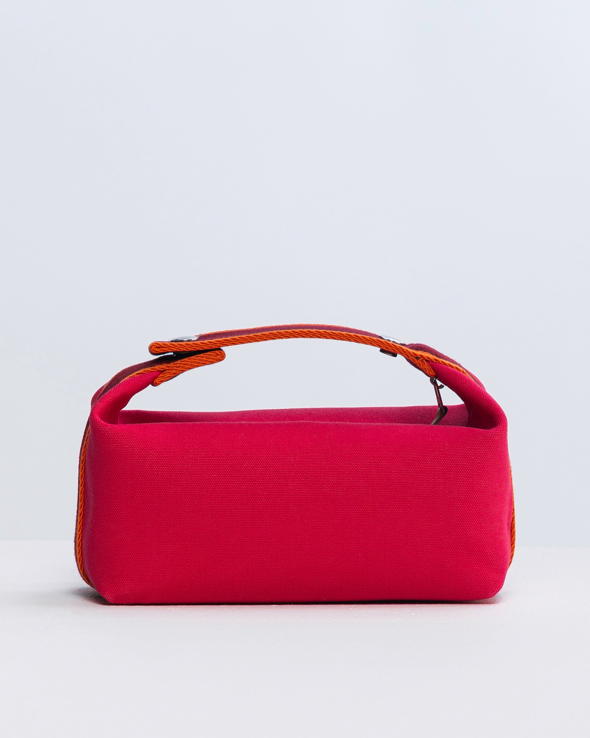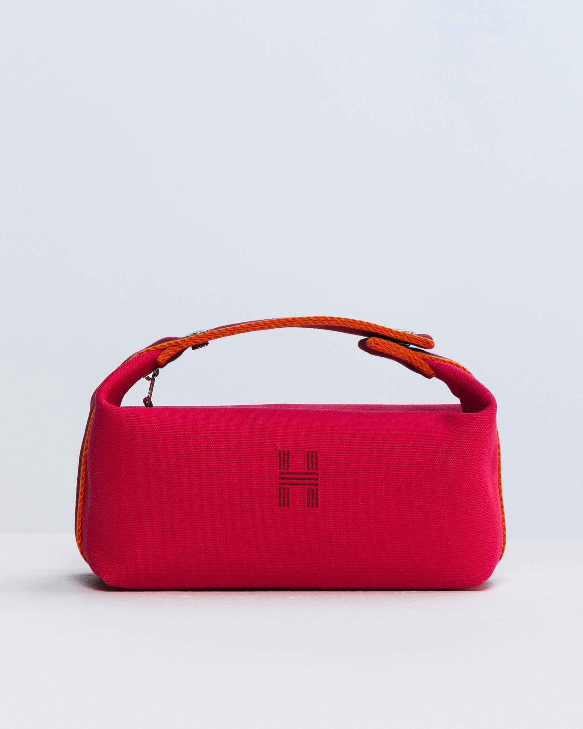 The Hermès Bride-A-Brac Case in the PM size (small), featuring the captivating Hibiscus Pink and Orange lining combination, is a true testament to both style and functionality. Crafted with precision, this case is a fusion of artistry and innovation. Its lightweight canvas construction is elegantly paired with a chevron lining that wards off stains and repels water, ensuring your treasured beauty essentials remain secure even in the face of occasional mishaps.