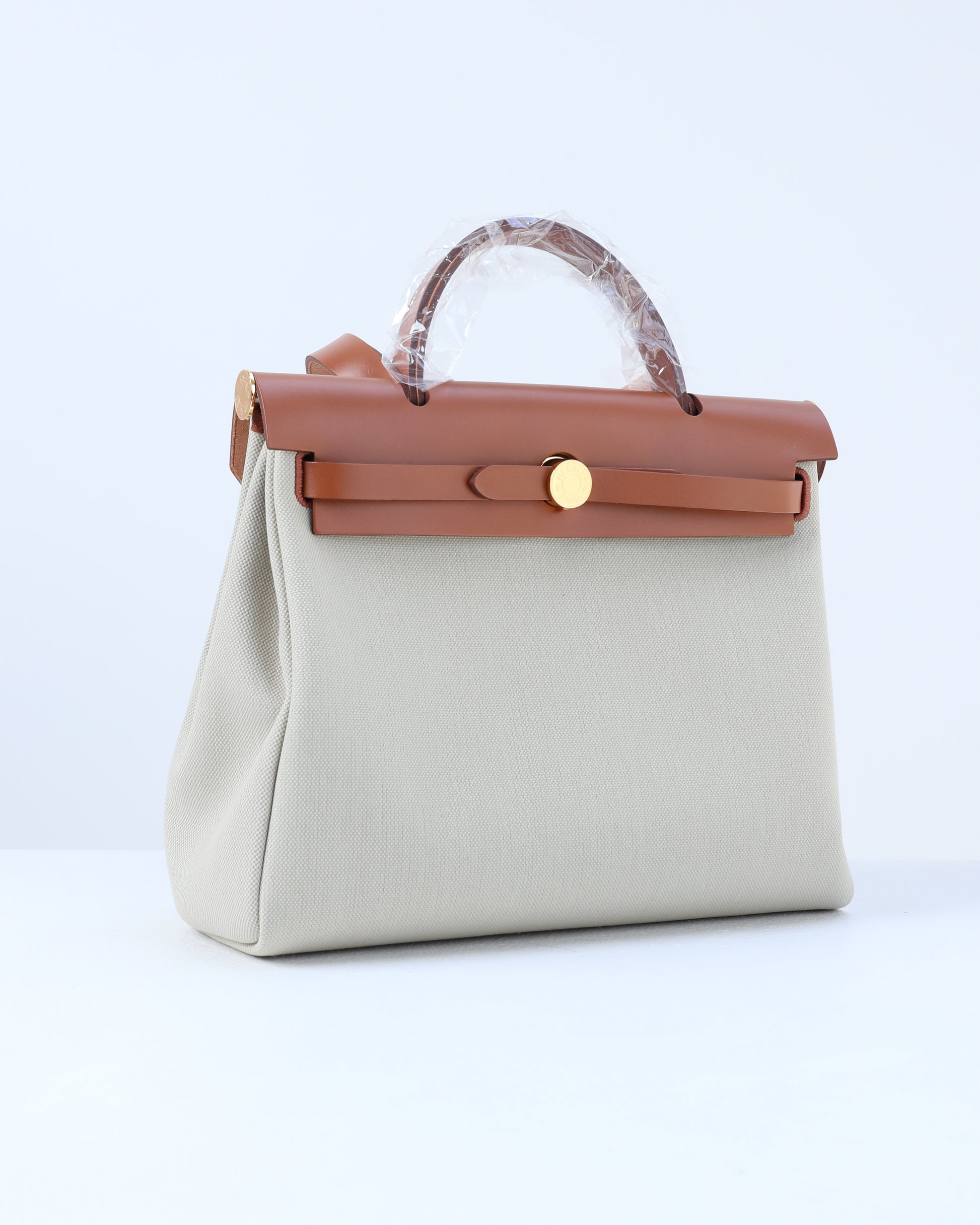 Herbag Zip 31 in Tan Vache Hunter and Beton Toile with Gold Hardware
