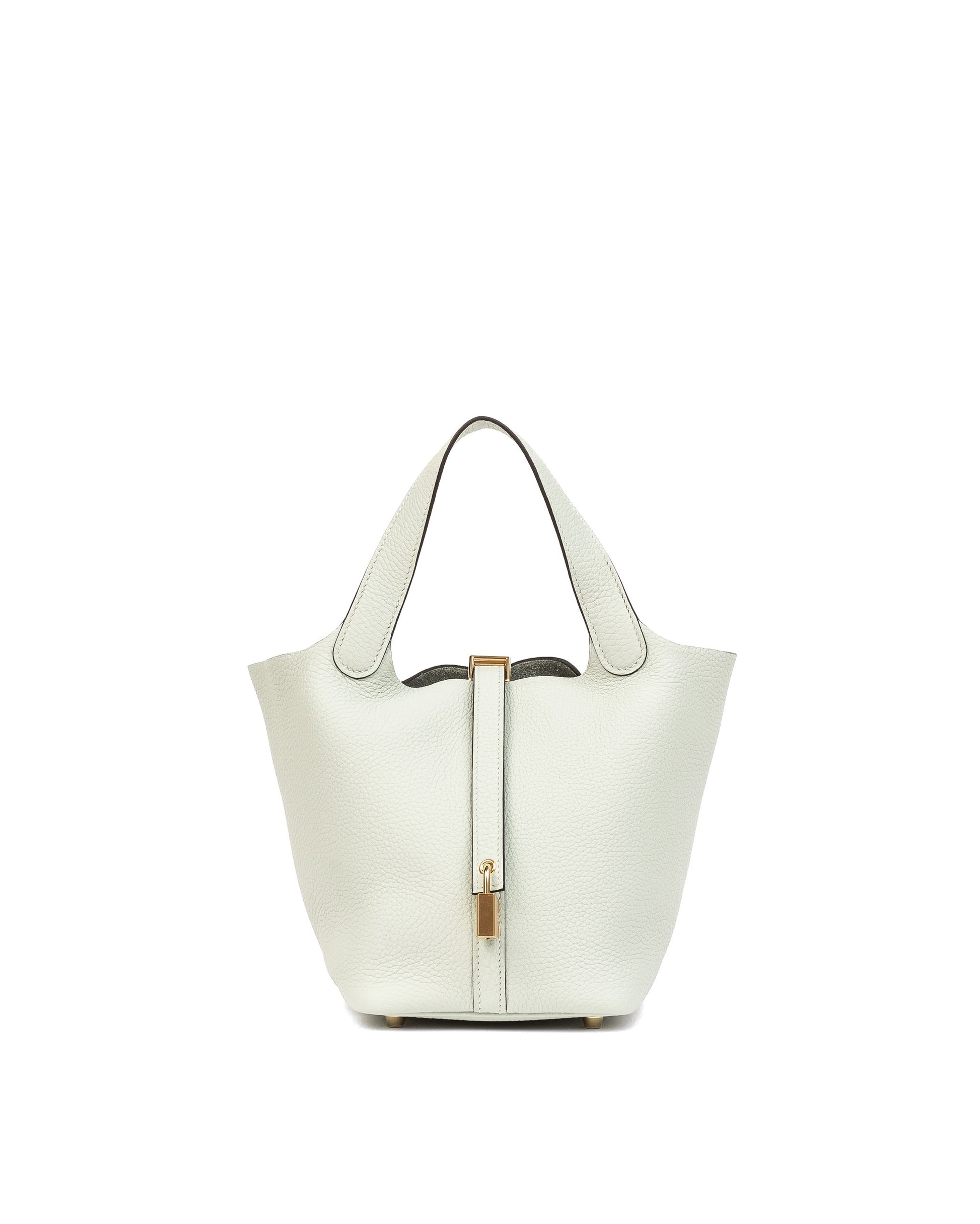 Picotin 18 Gris Neve in Taurillon Clemence with Gold Hardware