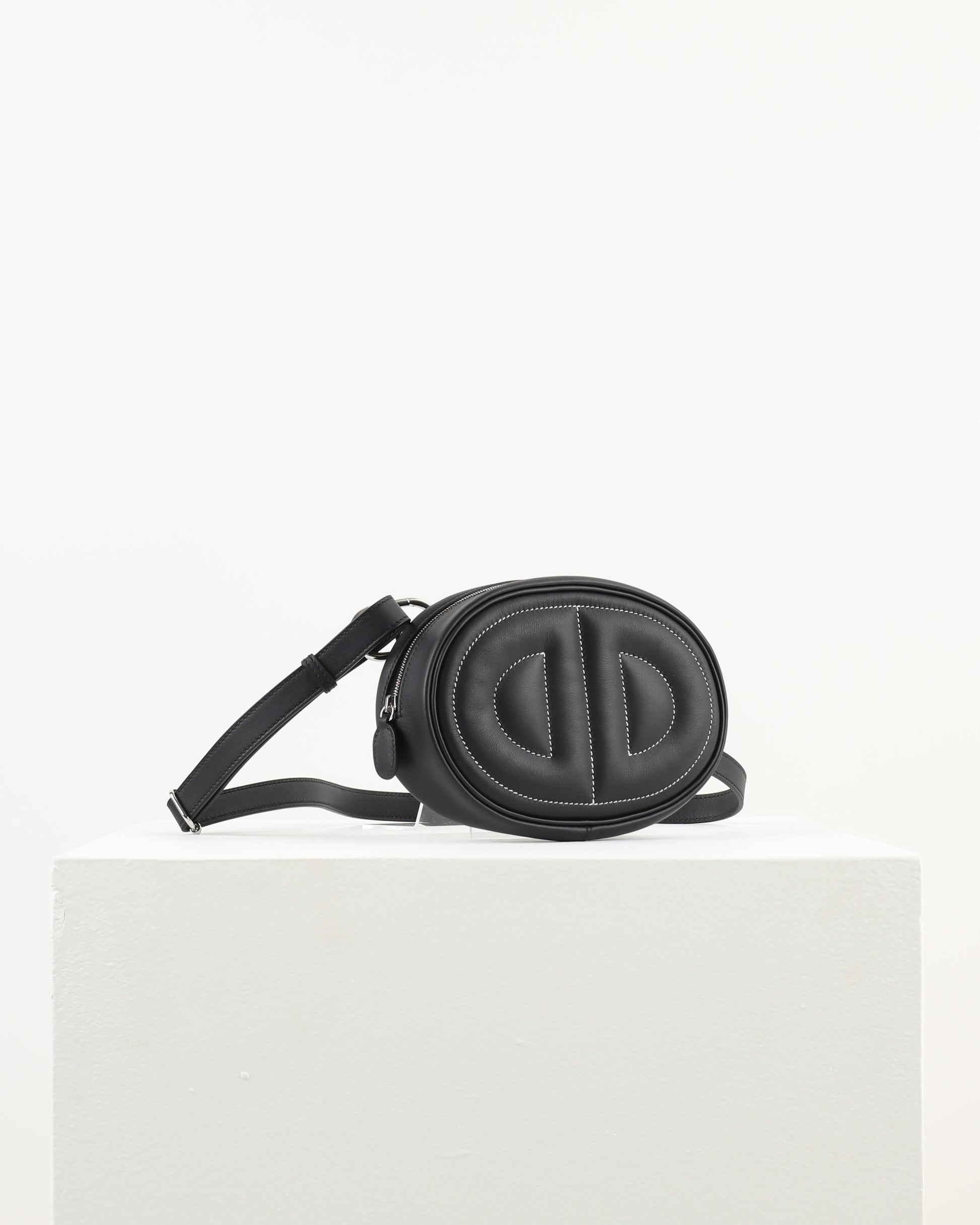 Introducing the stunning In-The-Loop bag, crafted from exquisite Noir swift leather and adorned with palladium hardware. This bag boasts a captivating design, featuring contrast stitching that adds a touch of visual intrigue. The zip top closure ensures the security of your belongings, while the removable gold belt strap provides versatility and style.