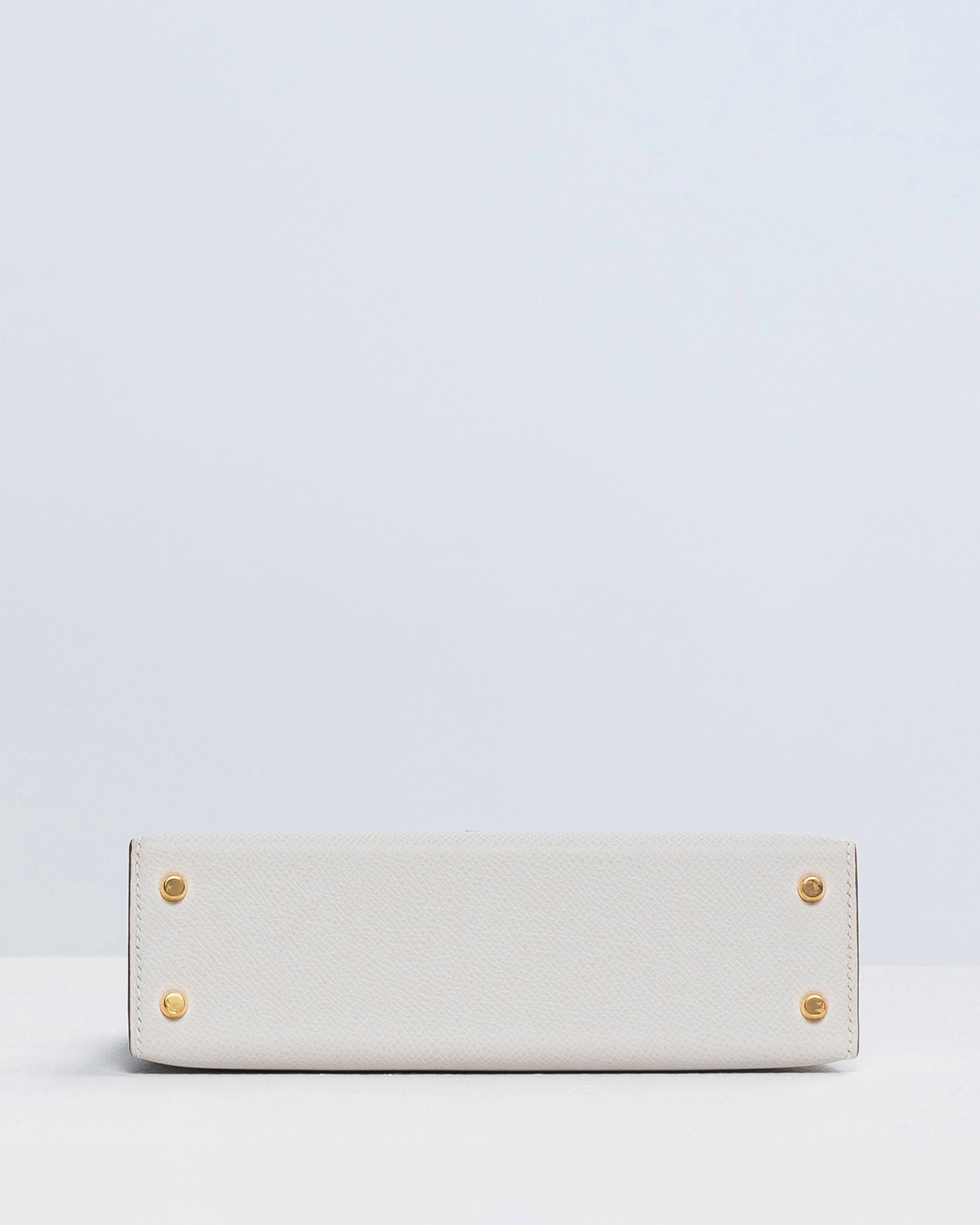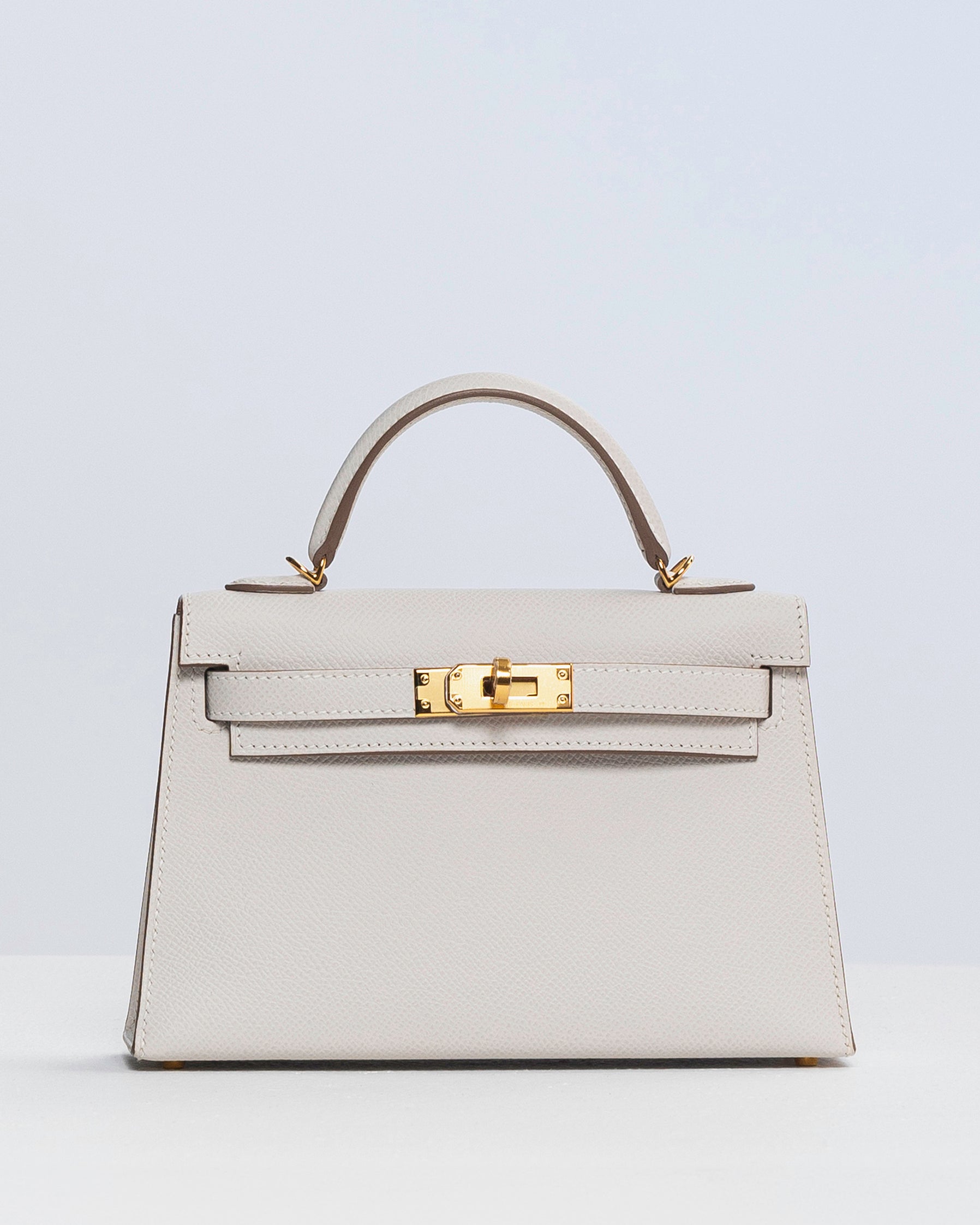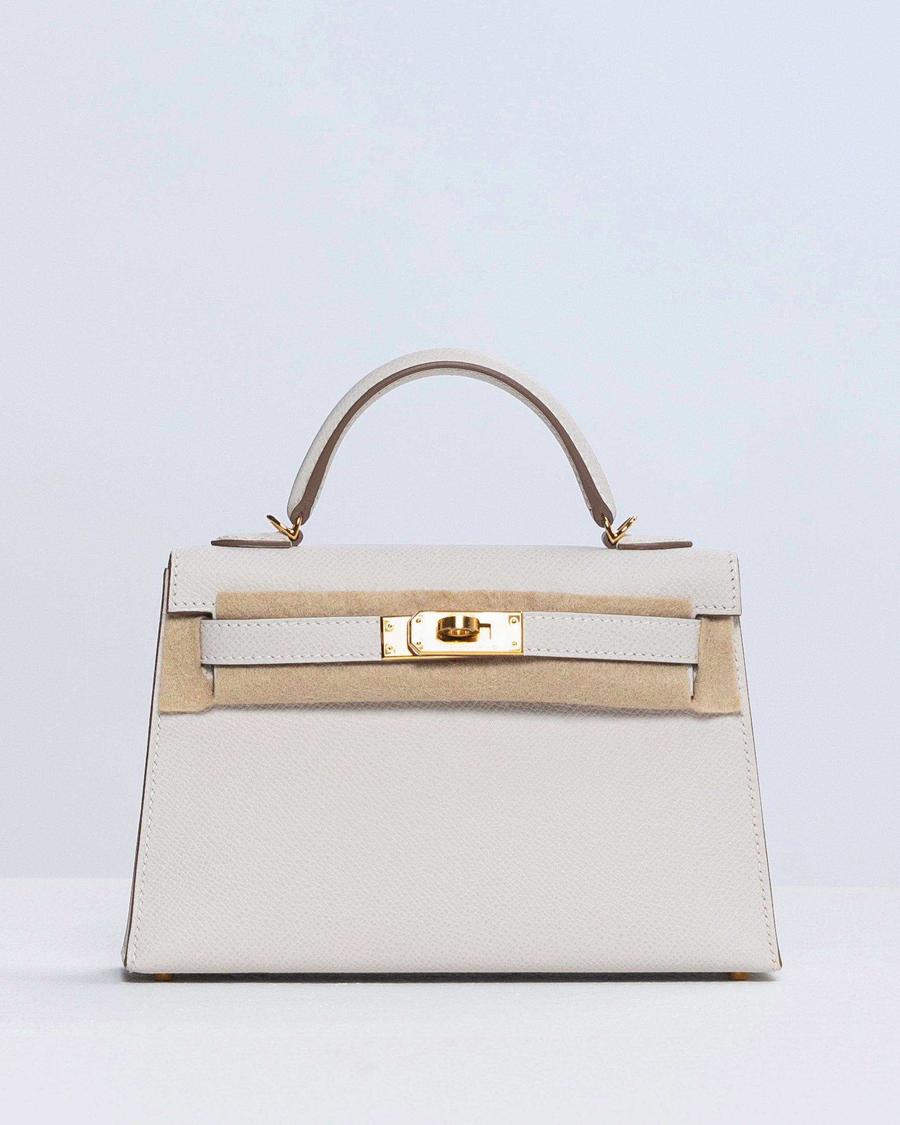 Introducing the Kelly 20 in Gris Pale, crafted from luxurious Epsom leather with gold hardware. This sophisticated shade, part of Hermès' 2023 SS collection, embodies the theme of "Astonishing Hermès." Gris Pale seamlessly blends pearl grey and mellow white, offering a harmonious beauty that radiates serene elegance. With a subtle greyish hue, it exudes a subdued charm compared to the clean white "New White" and achieves a more modern feel than "Mushroom." Elevate your style with this neutral and balanced accessory that effortlessly complements any color palette.