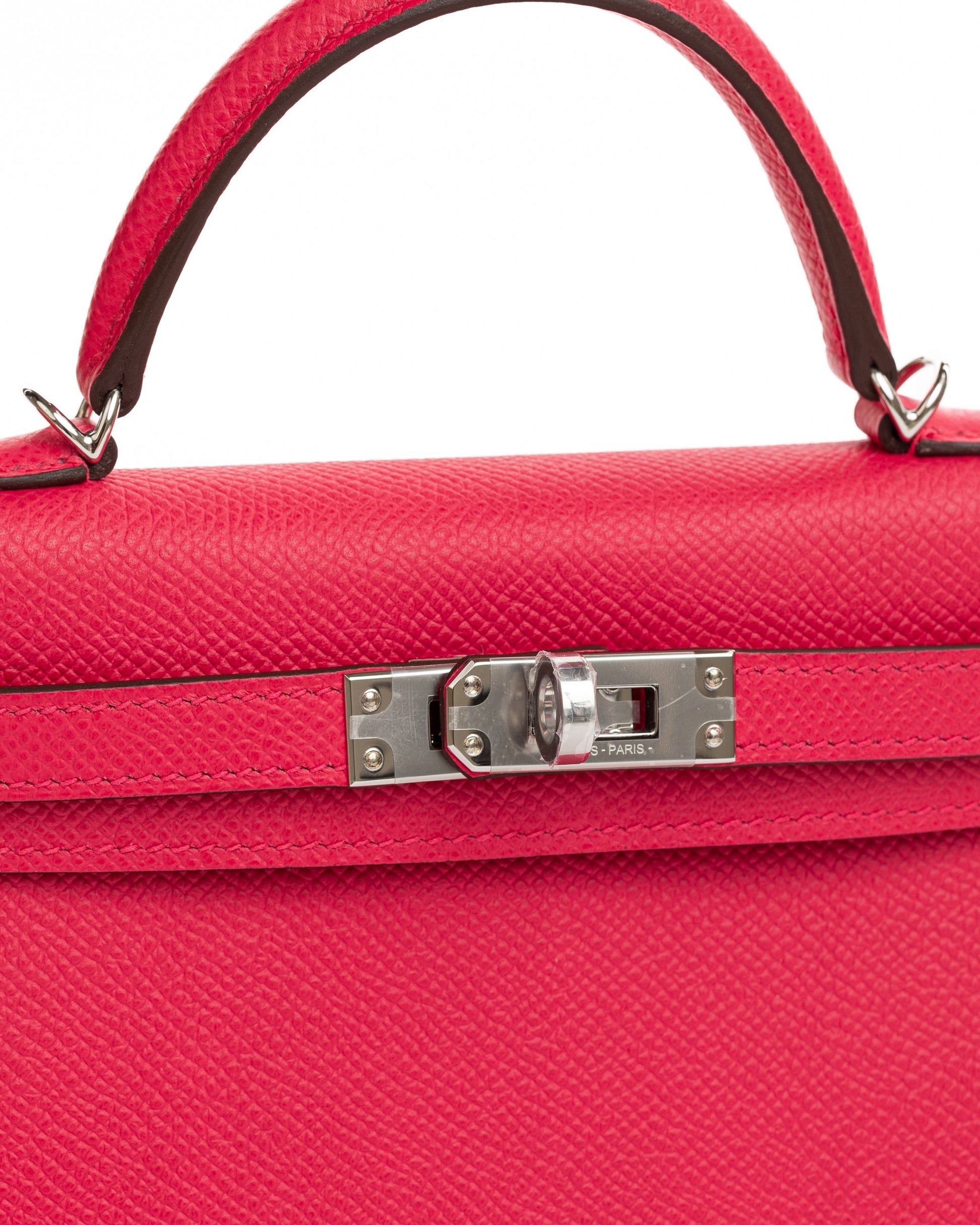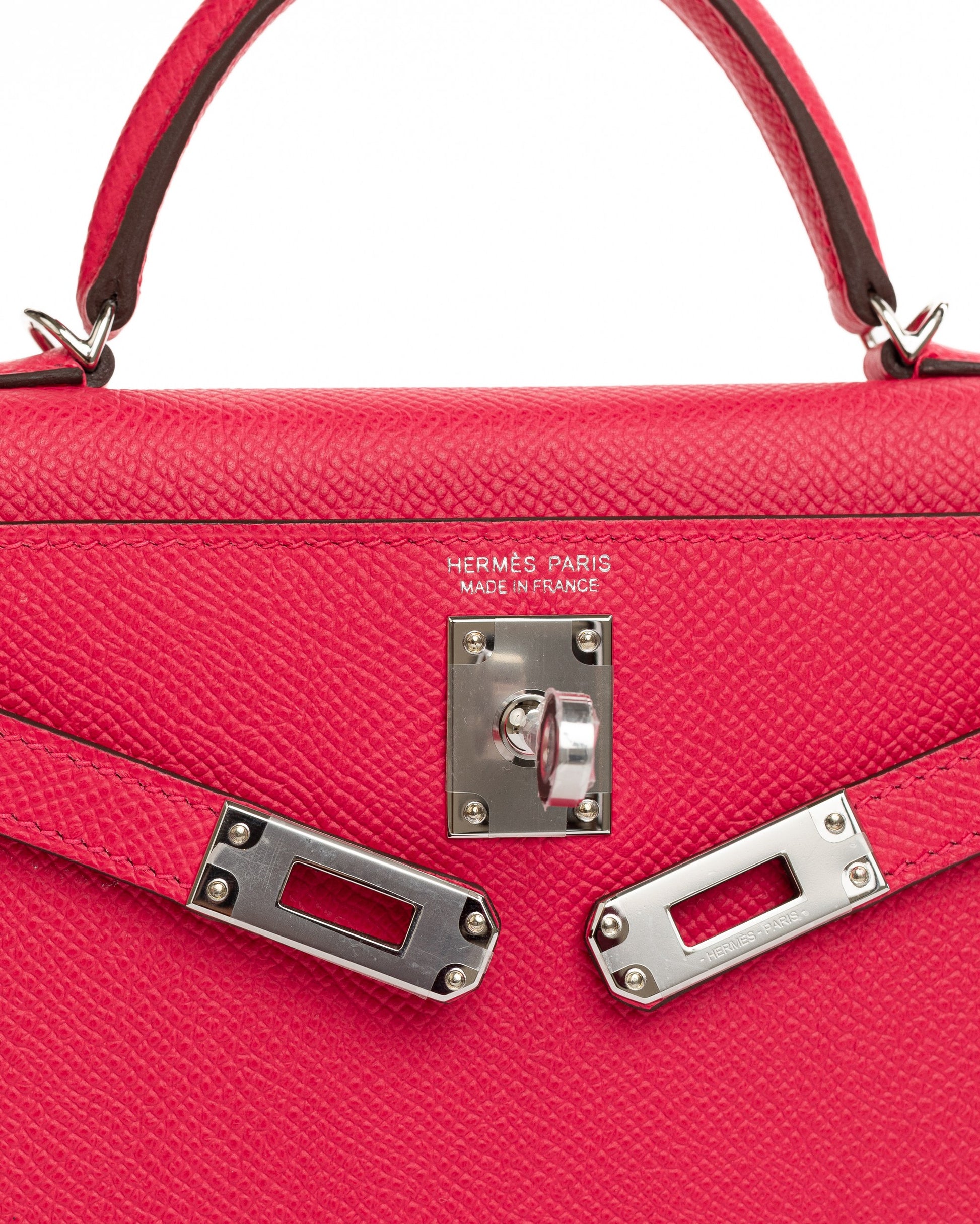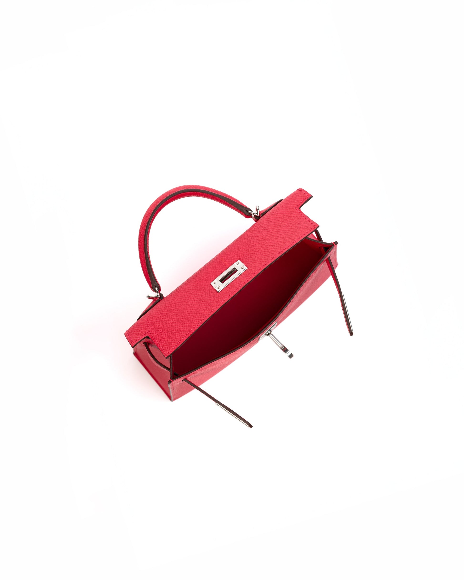 The Hermès Kelly 20 in Rose Extreme Epsom Leather with Palladium Hardware is a striking piece, designed in a bold and vibrant shade of pink that exudes energy and style. The color Rose Extreme by Hermès is inspired by the vivid, intense shades of pink found in natural settings, such as tropical flowers and dramatic sunsets. This shade was created to embody the boldness and energy associated with vibrant, high-impact colors. It is a tribute to the bright, expressive tones often found in modern art and pop culture, reflecting Hermès’ ability to balance classic designs with daring, contemporary colors.
