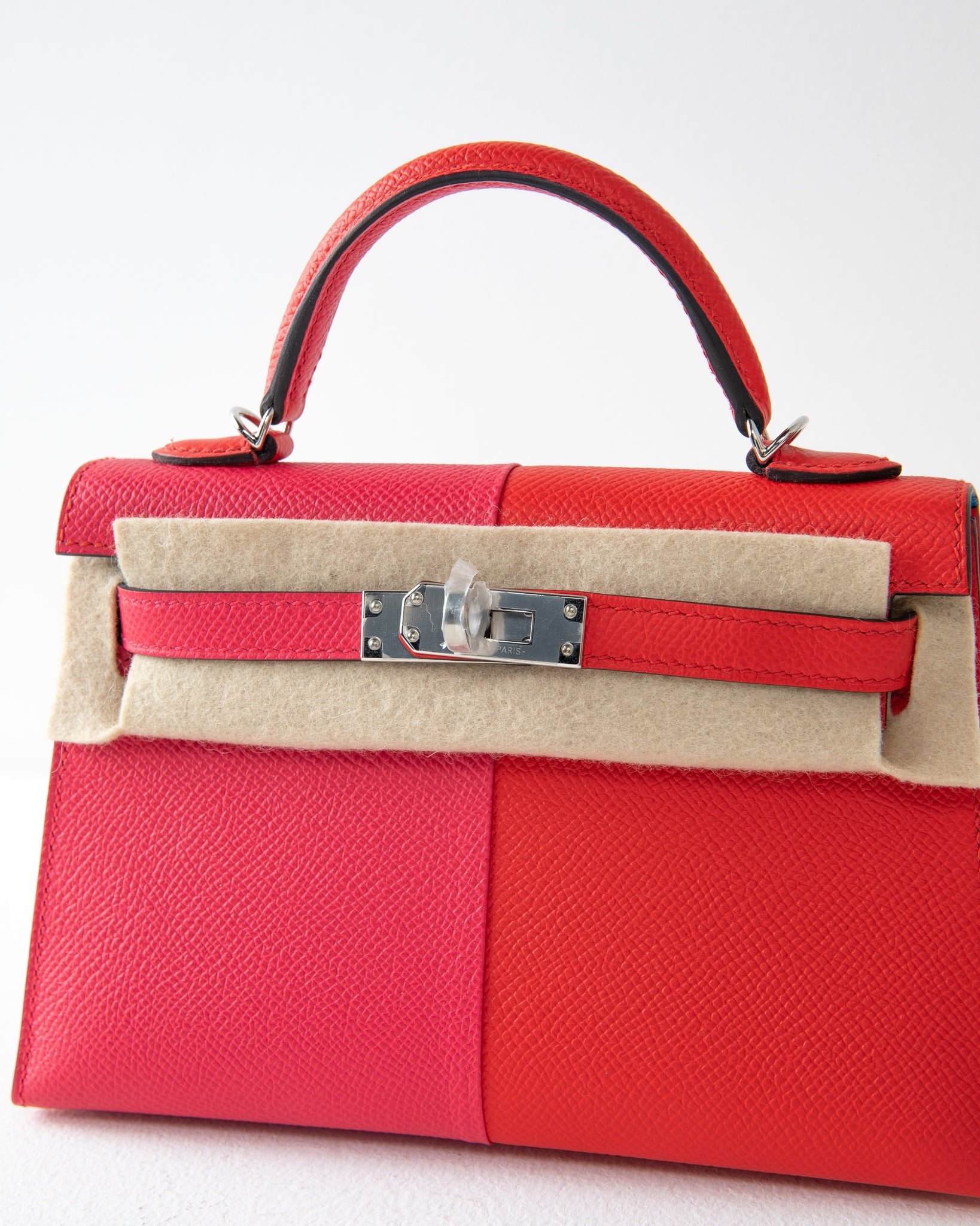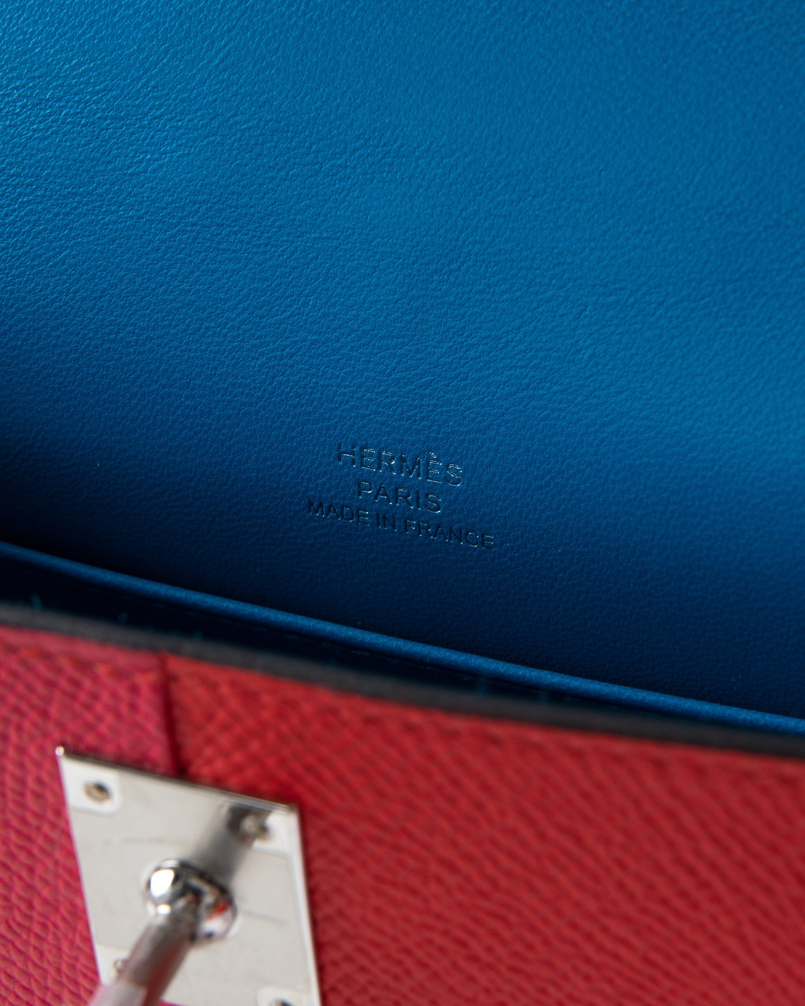 Hermès has kept production of these coveted 20cm Sellier Kelly’s extremely limited by releasing very small batches in one colorway. In 2019, Hermès released limited-edition variations of tricolor Mini Kellys, increasing their value. This specific color combination is now a limited edition piece, making it a rare collector’s item. There are currently only ten available in the market worldwide.