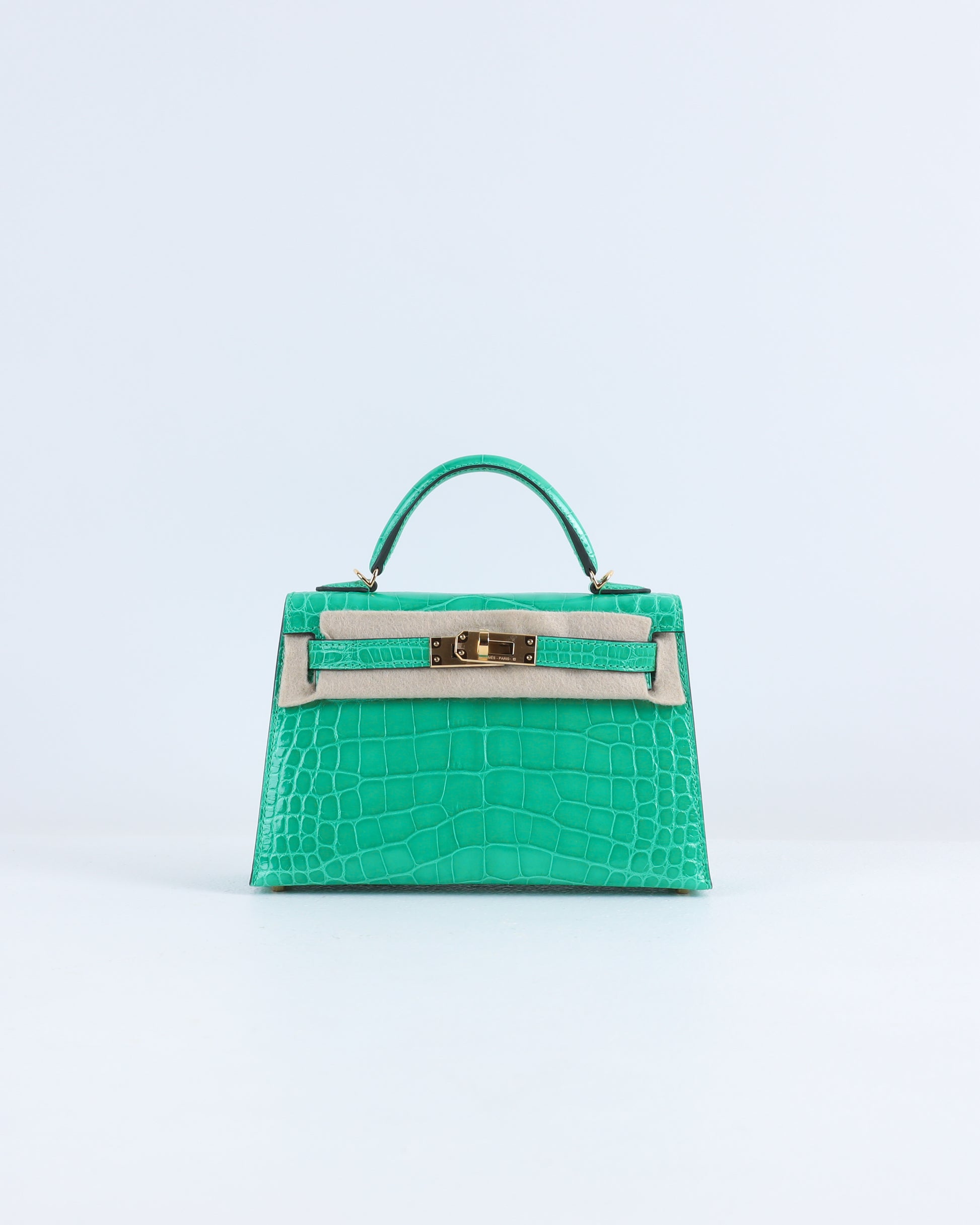 Kelly 20 Vert Jade Sellier Alligator with Gold Hardware