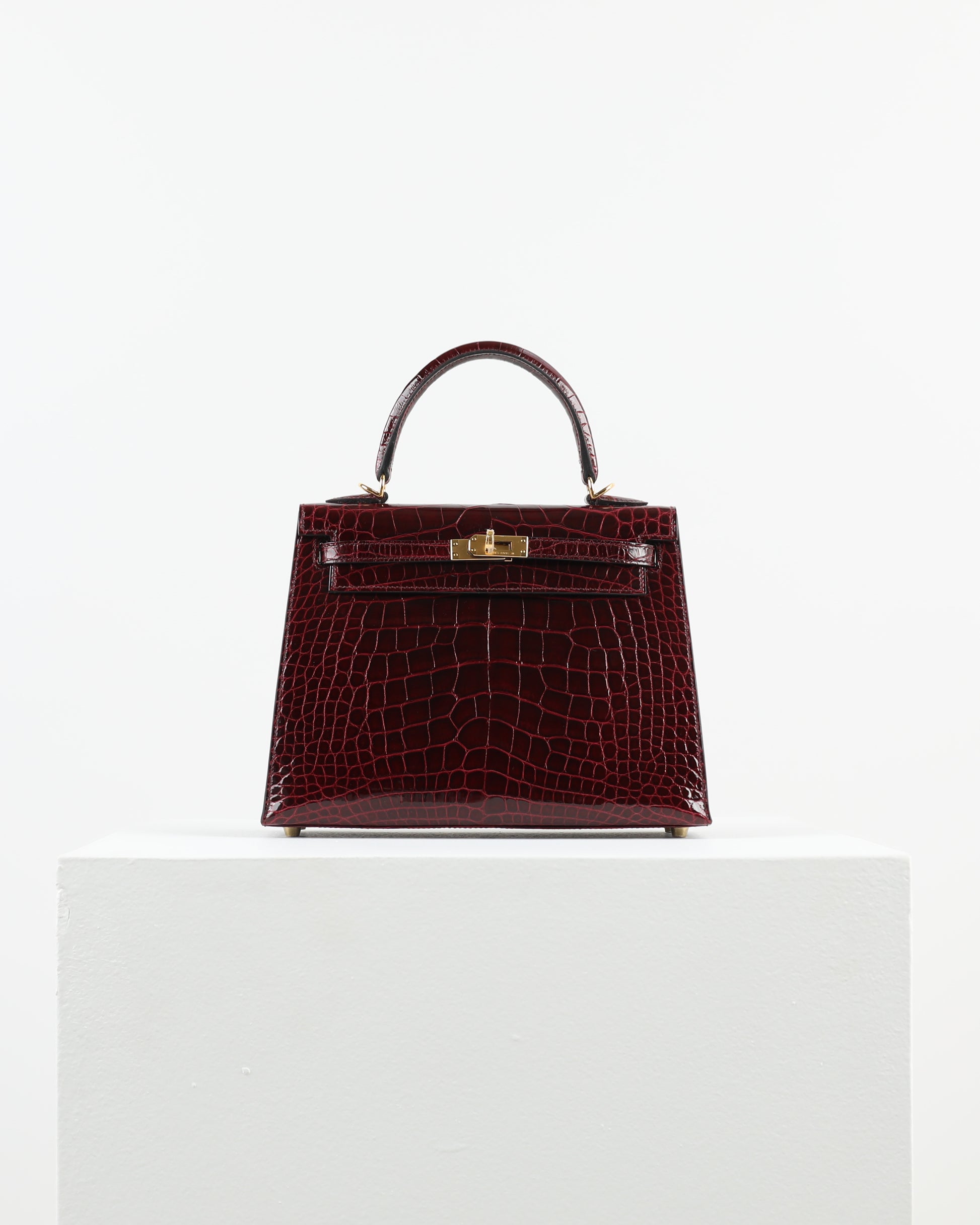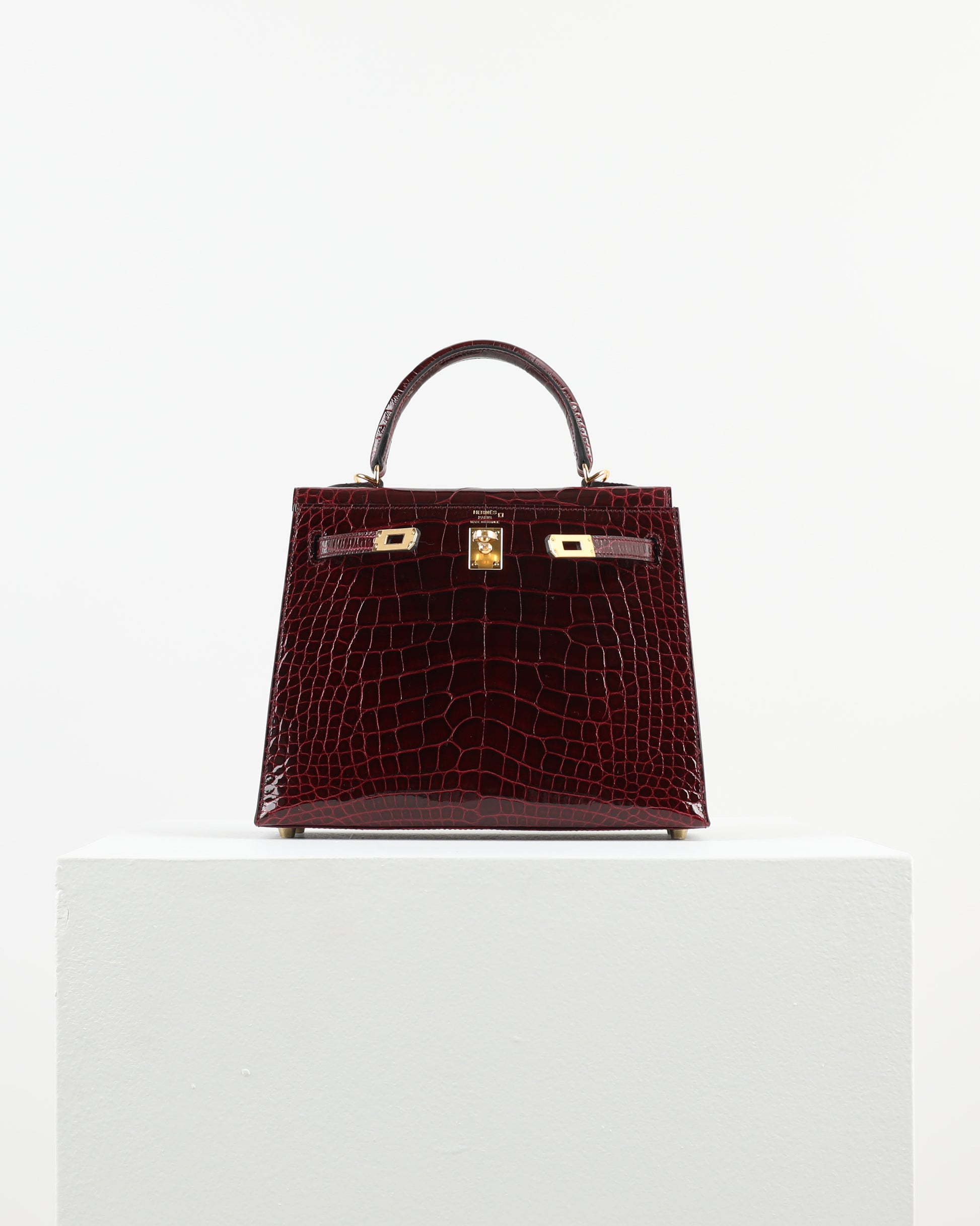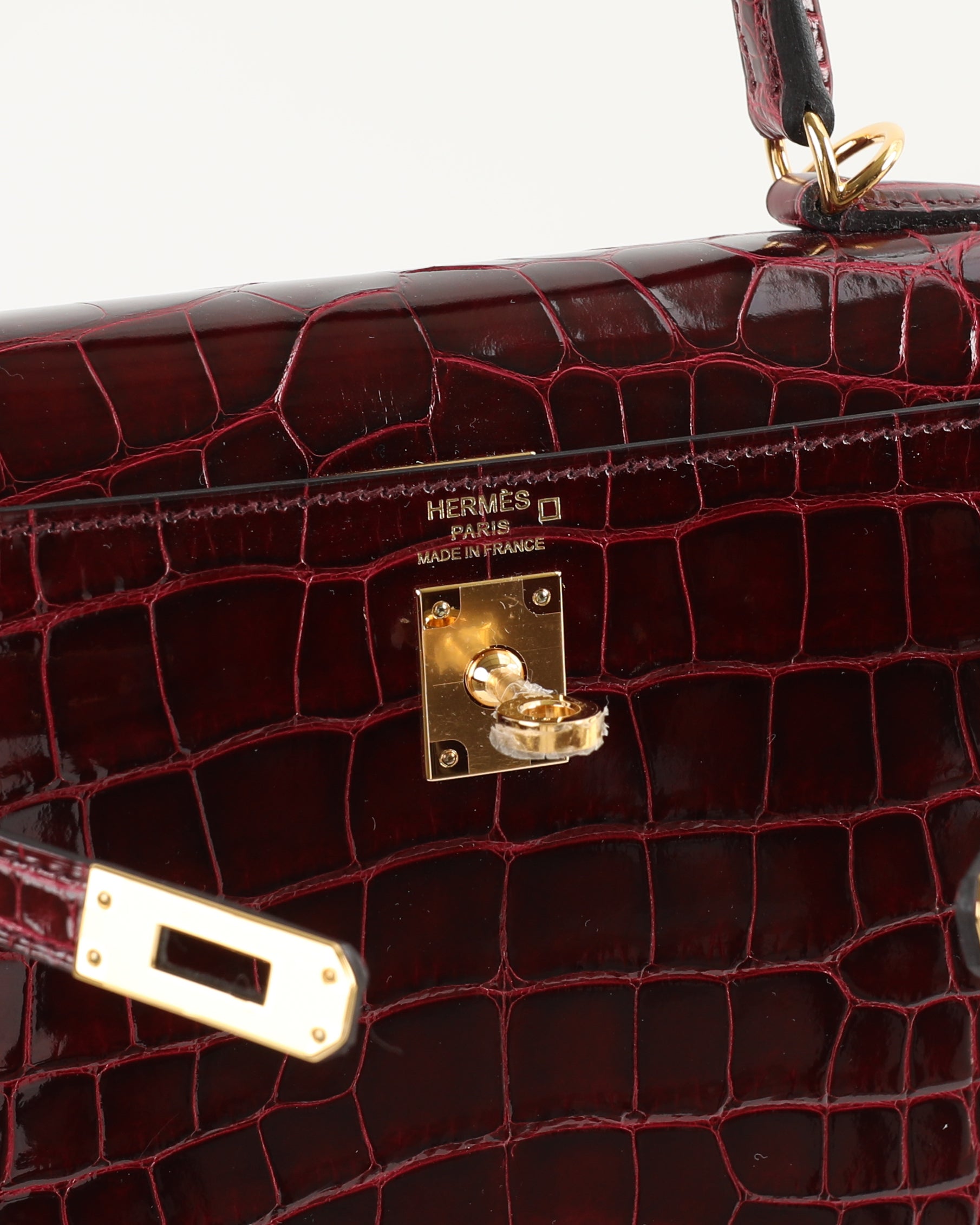 Kelly 25 Bordoeaux Alligator with Gold Hardware