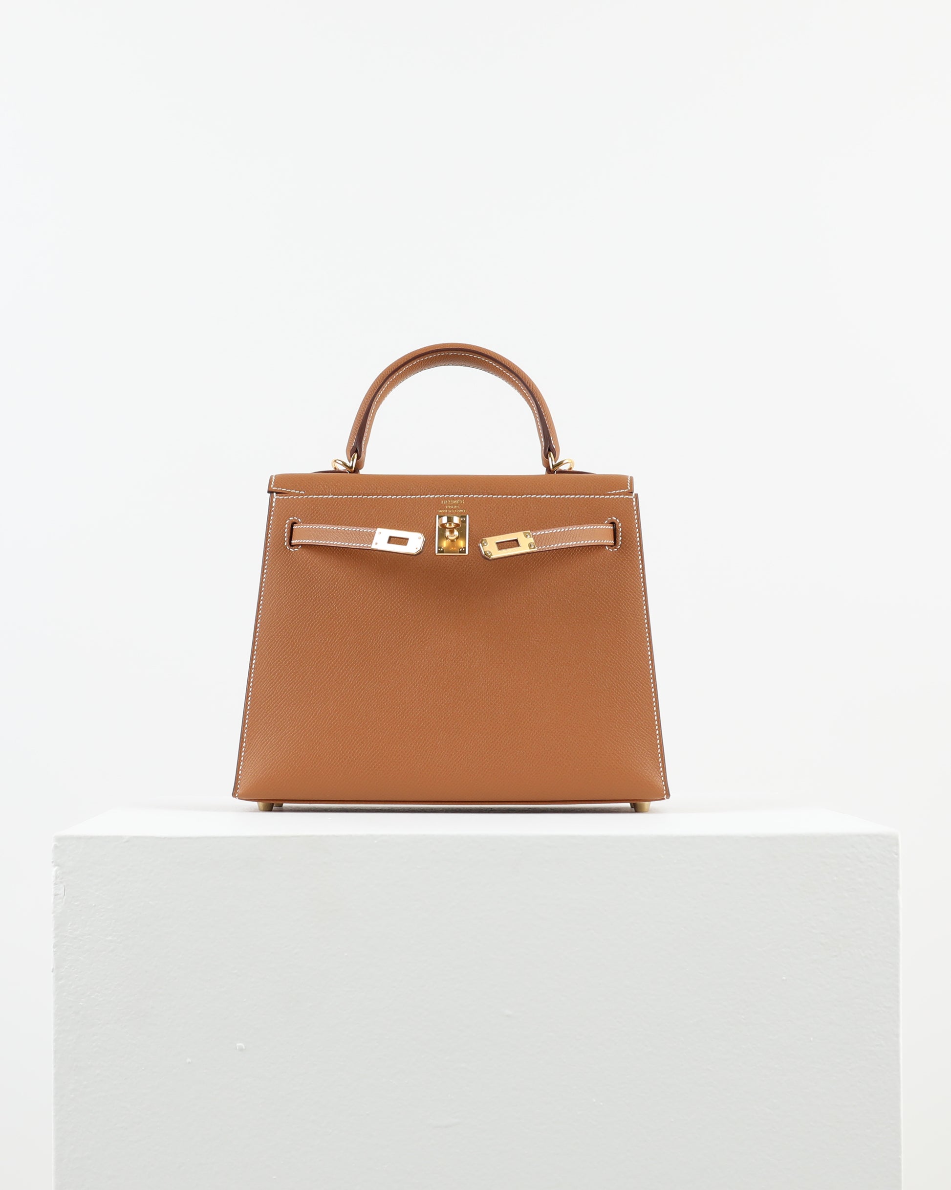 Kelly 25 Gold in Epsom Leather with Gold Hardware