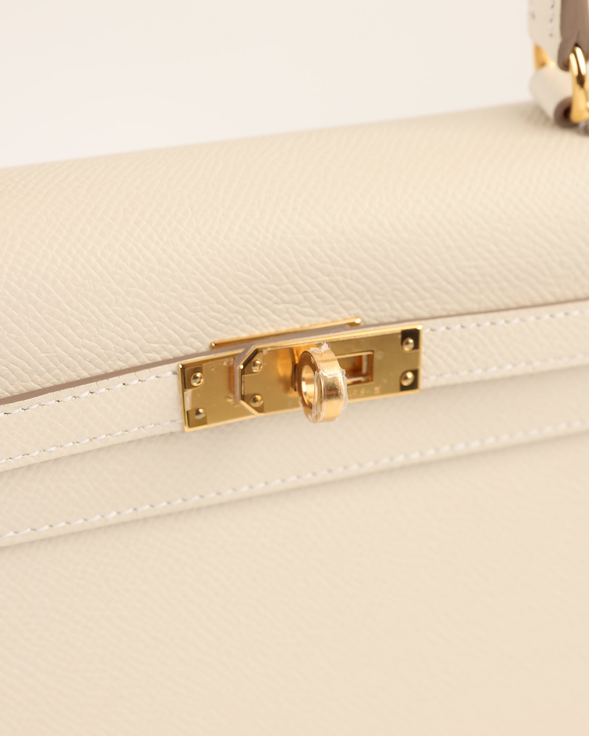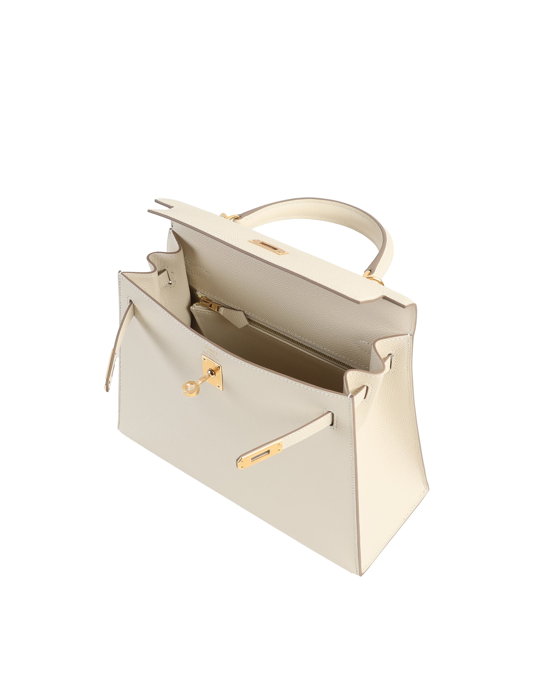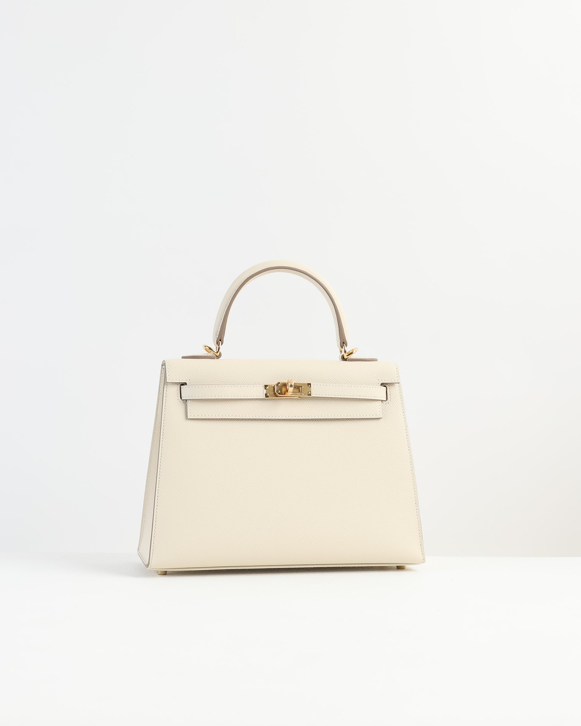 Kelly 25 Sellier Craie in Epsom Leather with Gold Hardware
