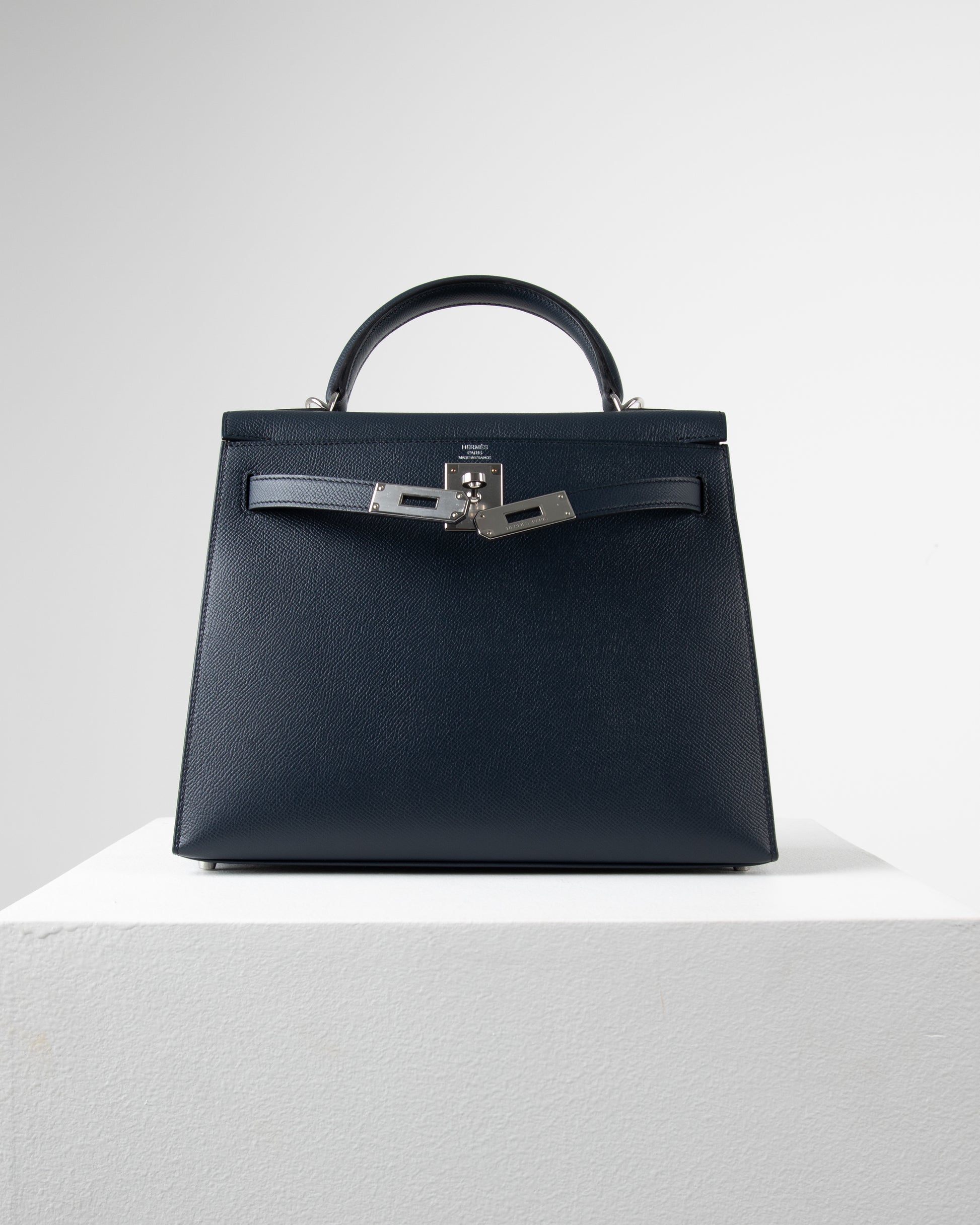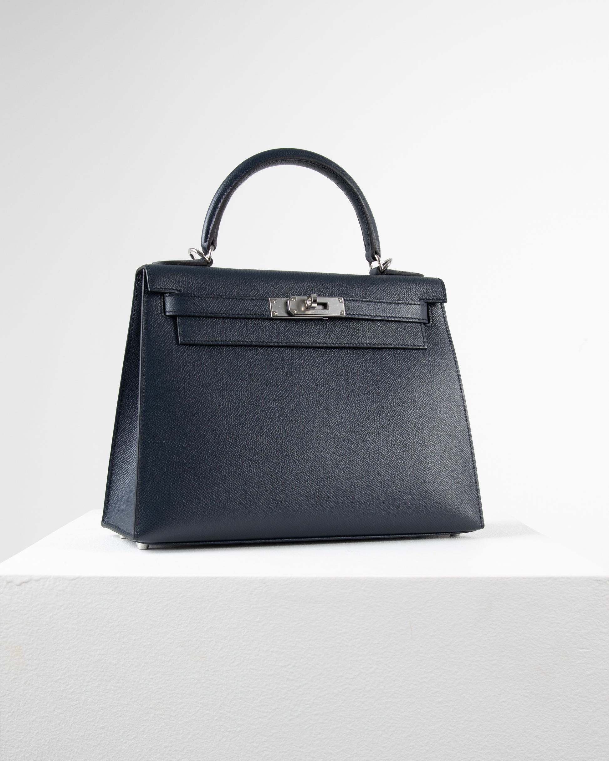Kelly 28 Bleu Indigo in Epsom Leather with Palladium Hardware