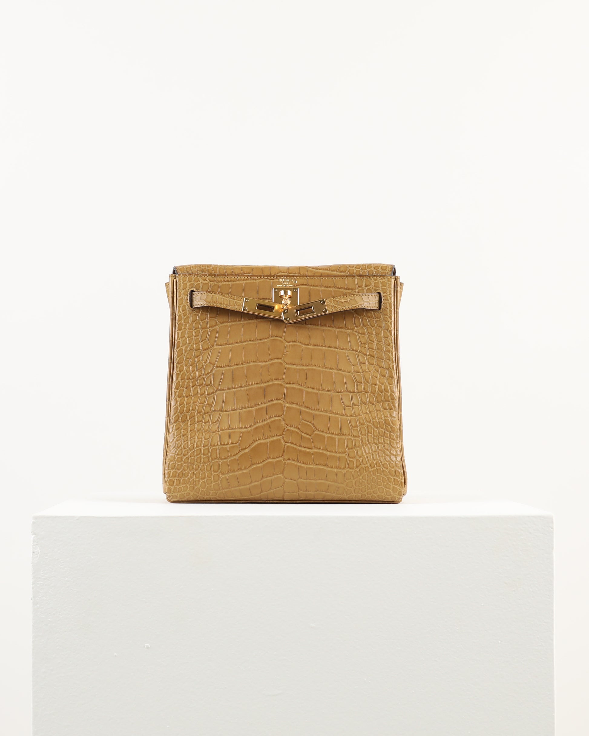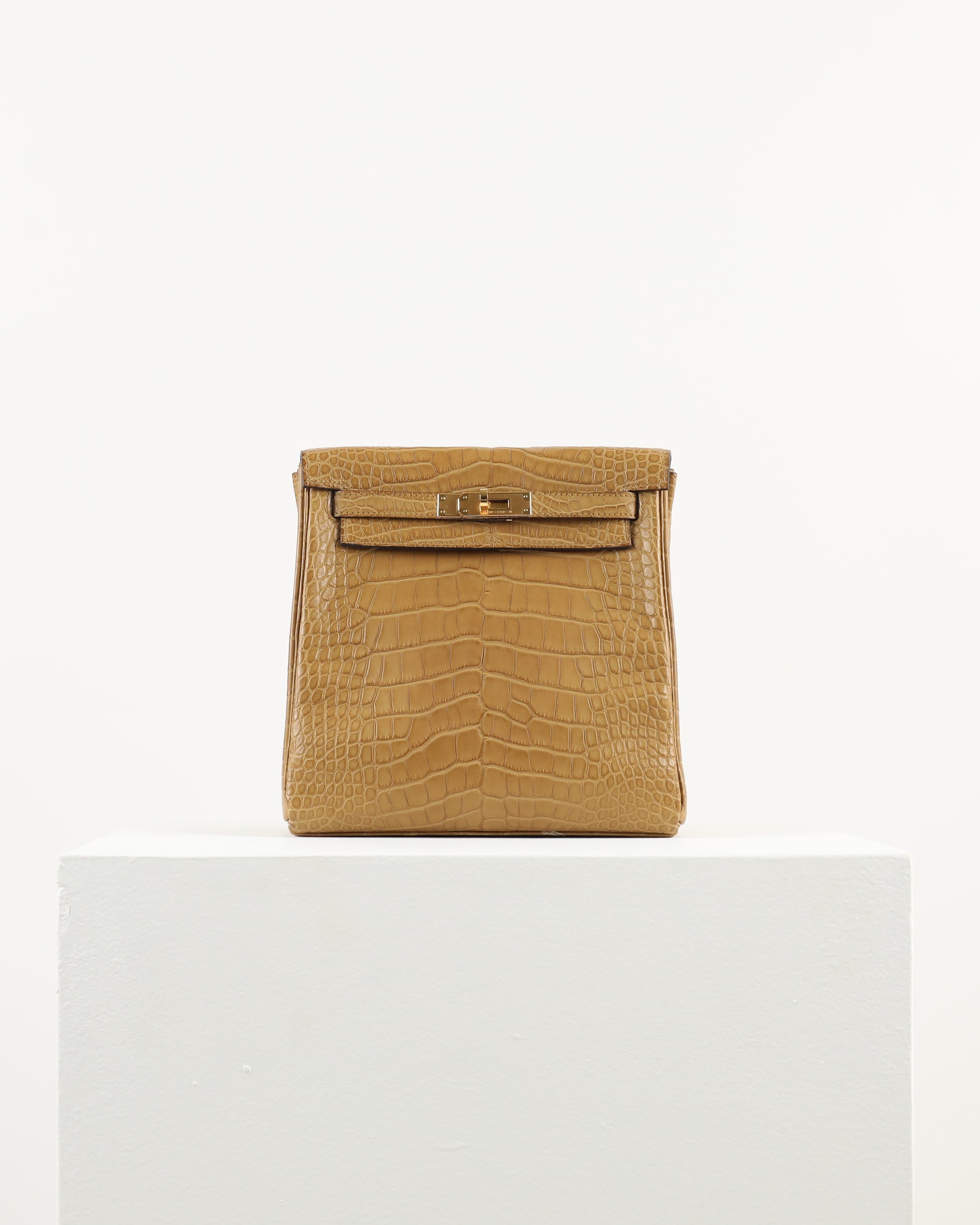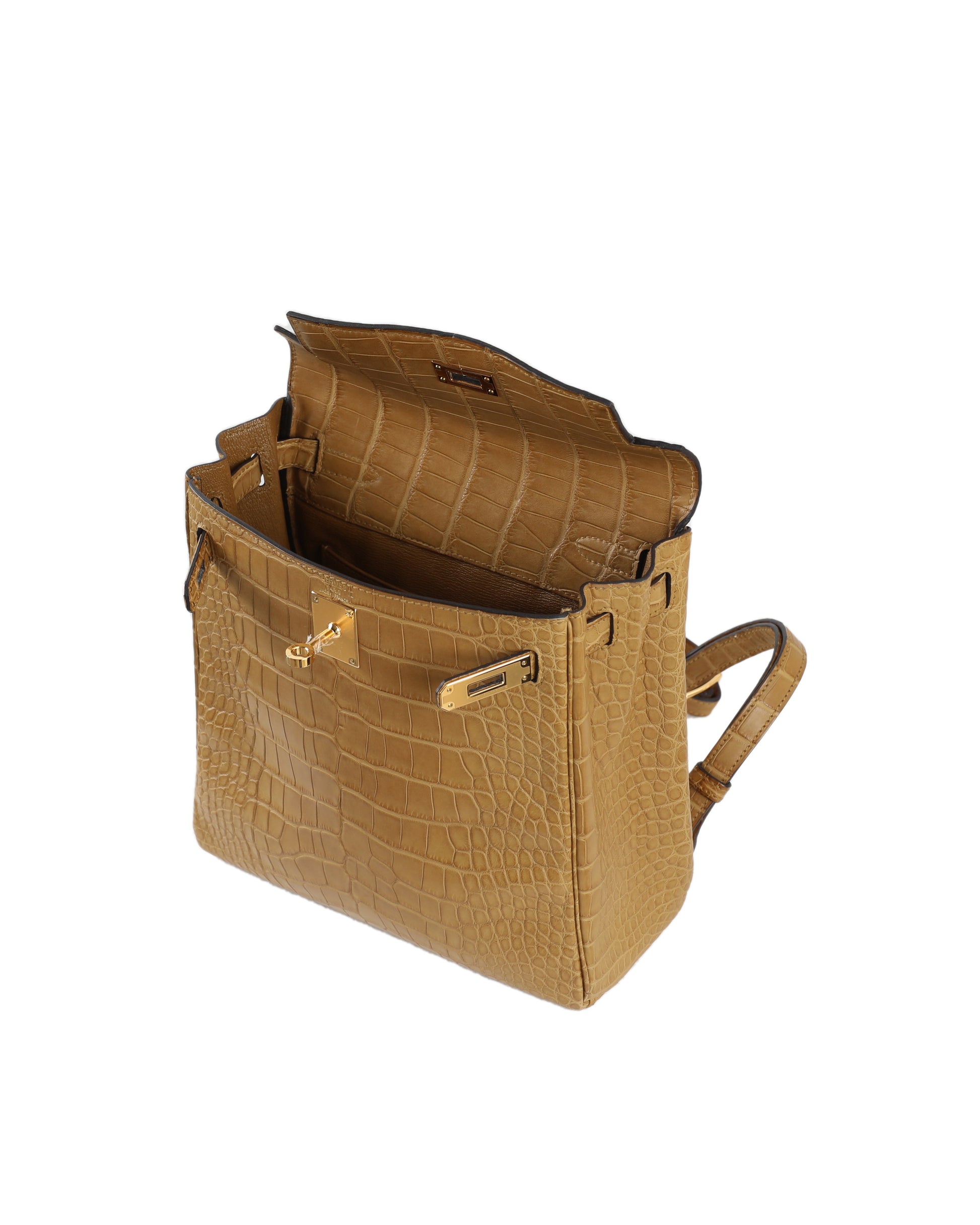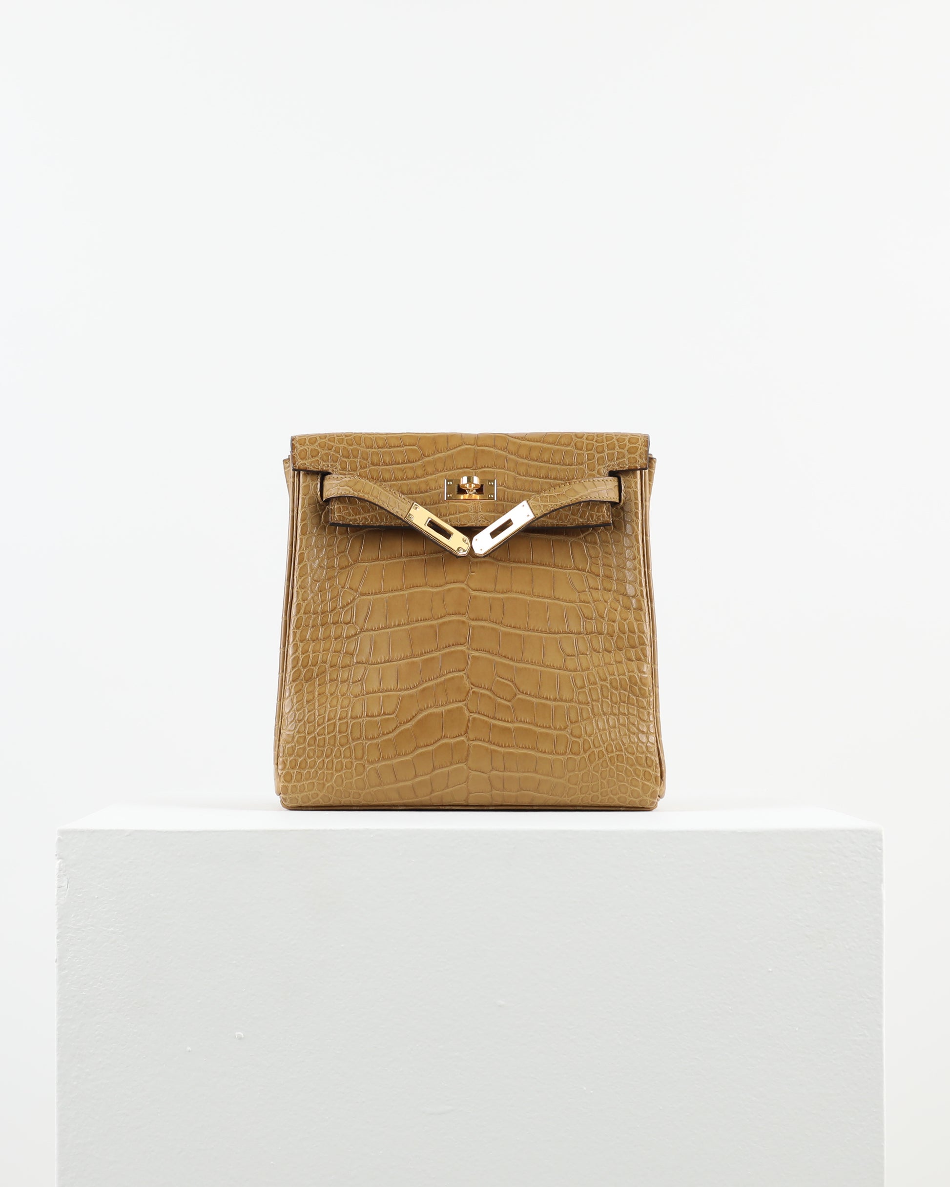 Kelly Ado Backpack Matte Kraft Alligator with Gold Hardware