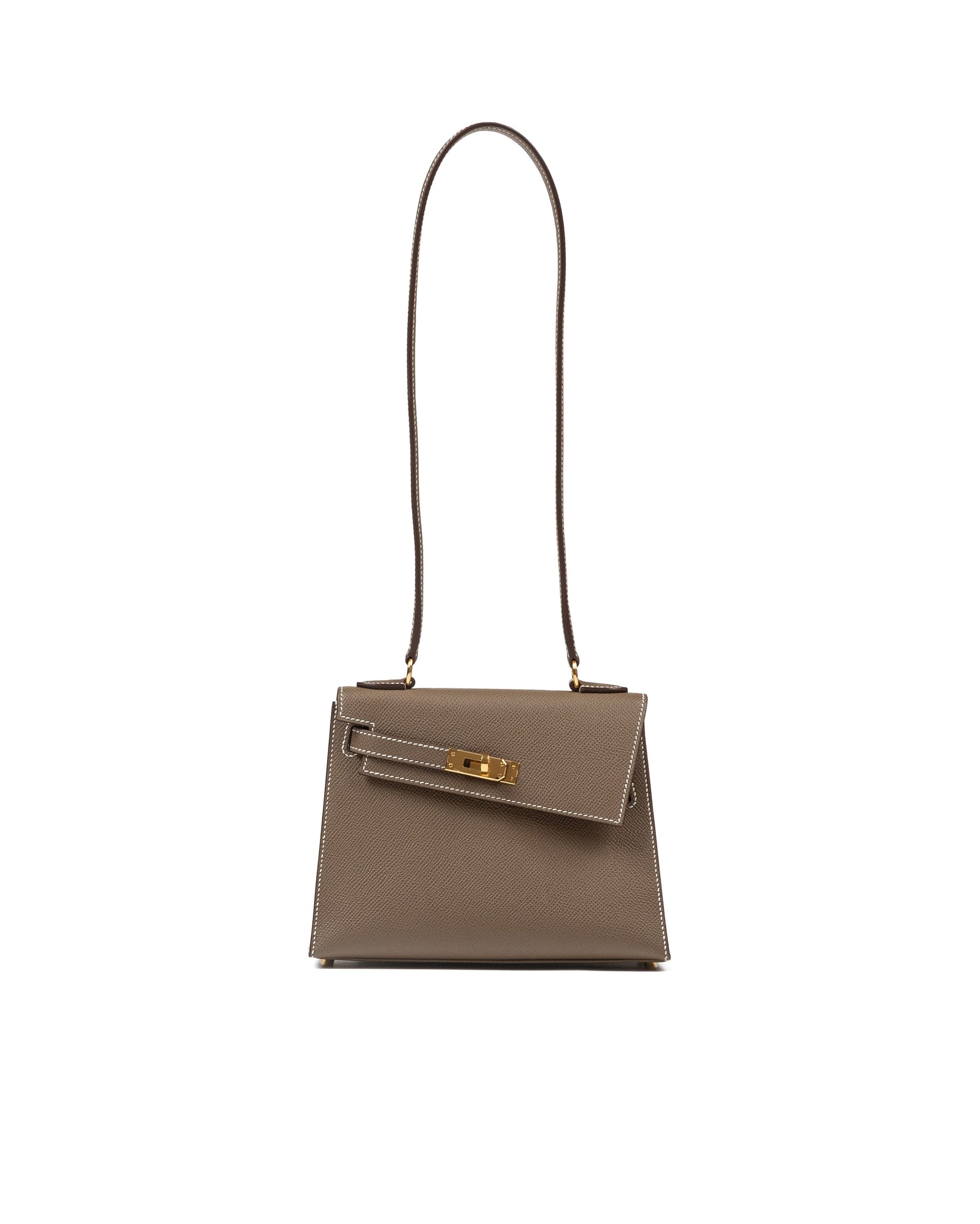 A contemporary interpretation of Hermès’ most iconic silhouette, the Kelly Désordre reimagines timeless design through an asymmetric lens. Crafted in Etoupe Epsom leather, one of Hermès’ most recognizable neutrals, this piece merges refinement with modern edge. Etoupe, with its taupe-grey undertone and white contrast stitching, is a universally flattering shade known for its elegance and versatility, pairing seamlessly with both casual and formal wardrobes.