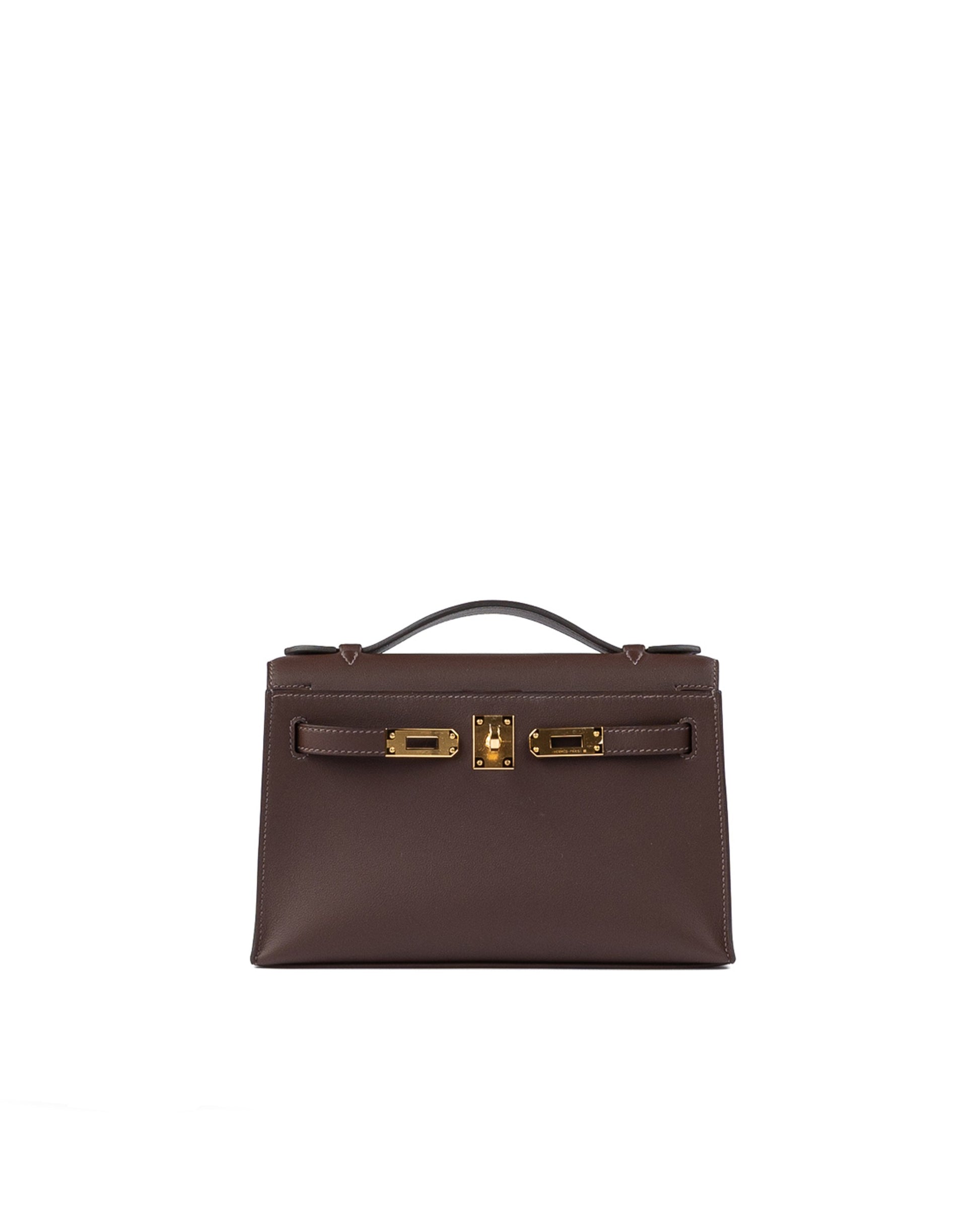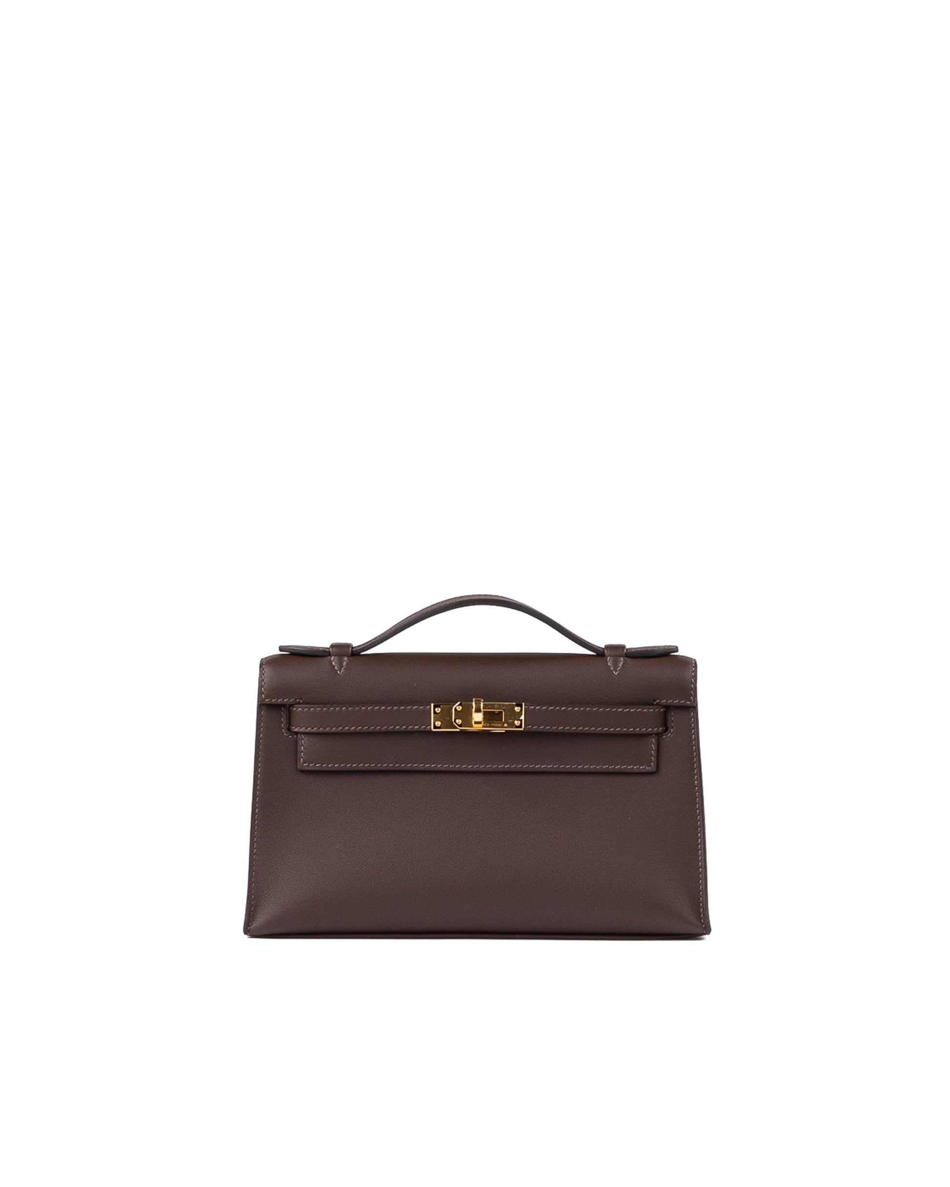 This Kelly Pochette is crafted in Swift leather in Havane, paired with gold hardware. Havane is a rich, deep brown shade known for its warmth and depth, often associated with Hermès’ exotic leathers. It is far more commonly seen in crocodile or alligator, making its appearance in Swift leather particularly rare and highly unusual.