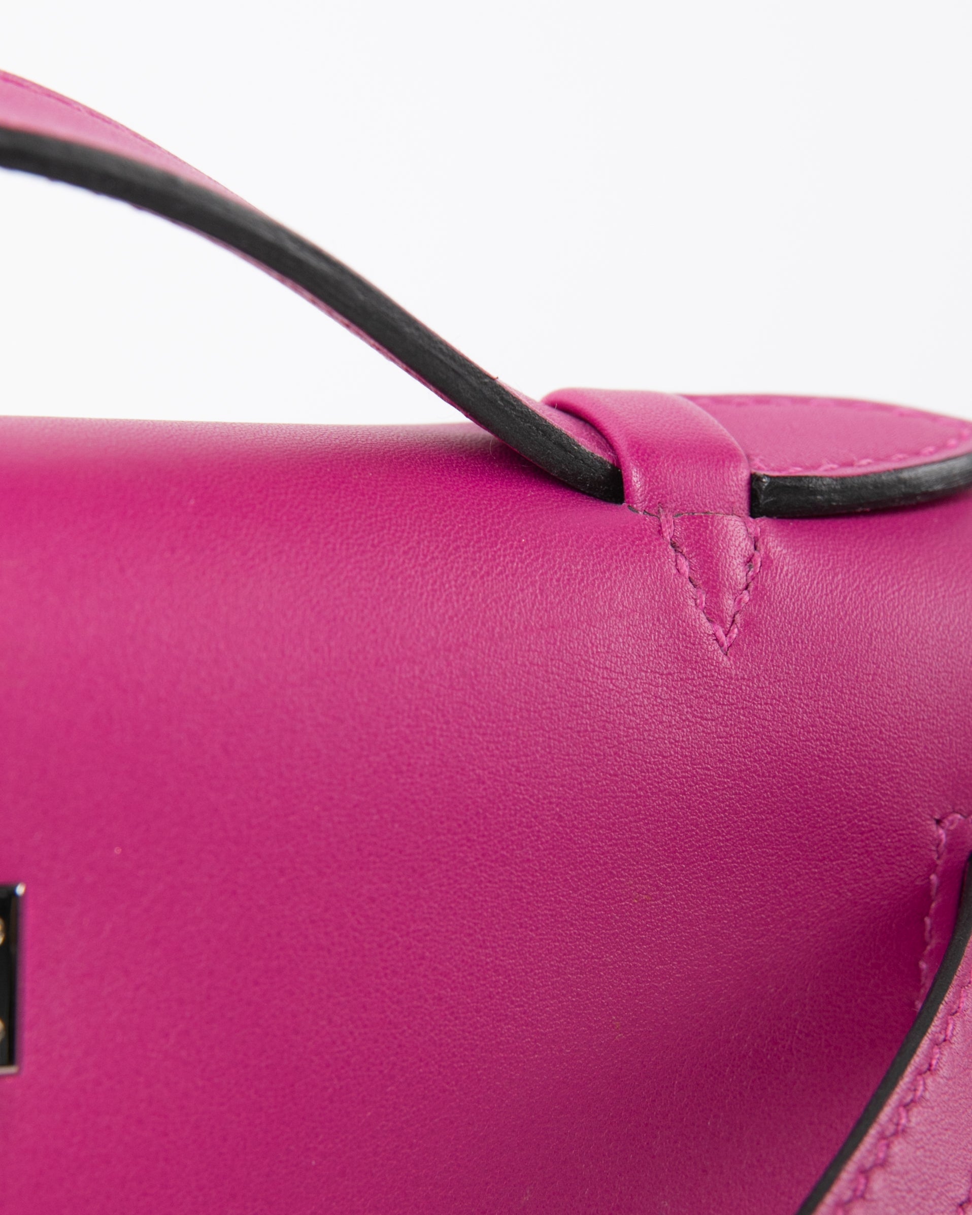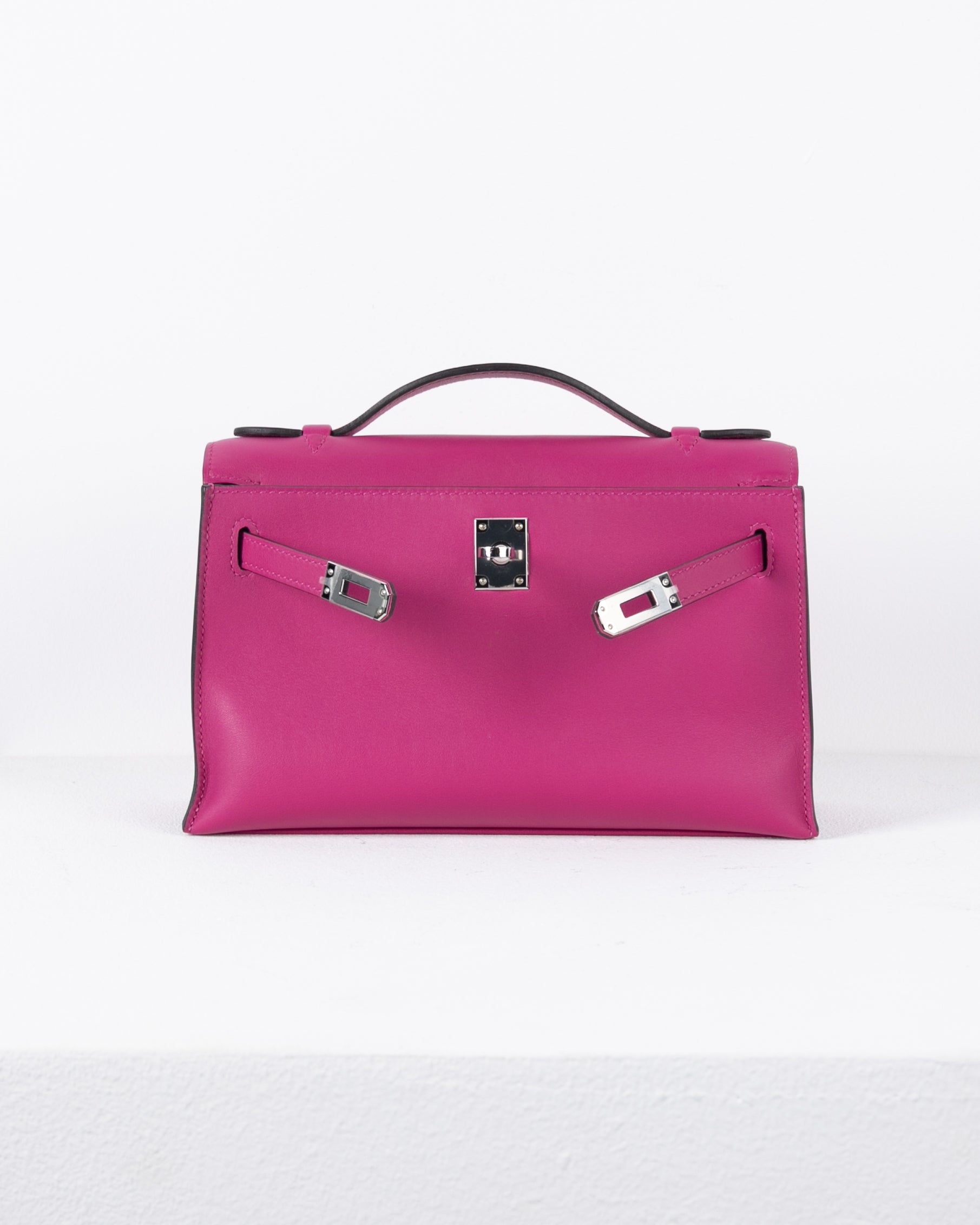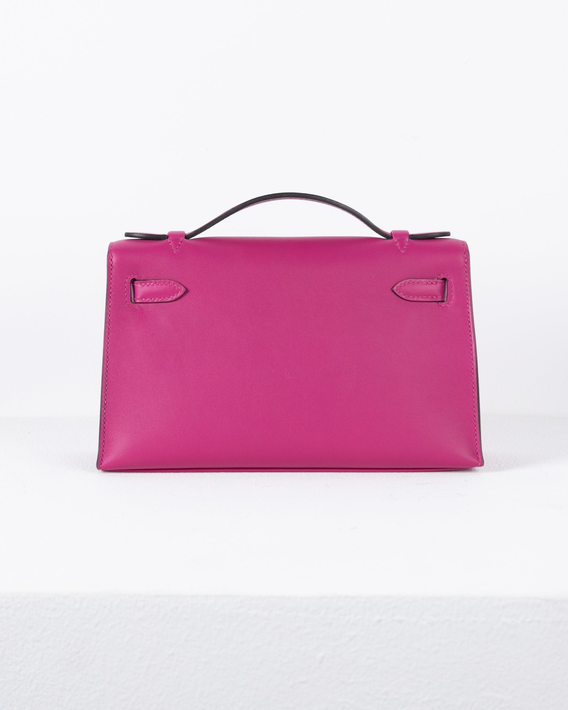 Kelly Pochette in Rose Pourpre Swift with Palladium Hardware