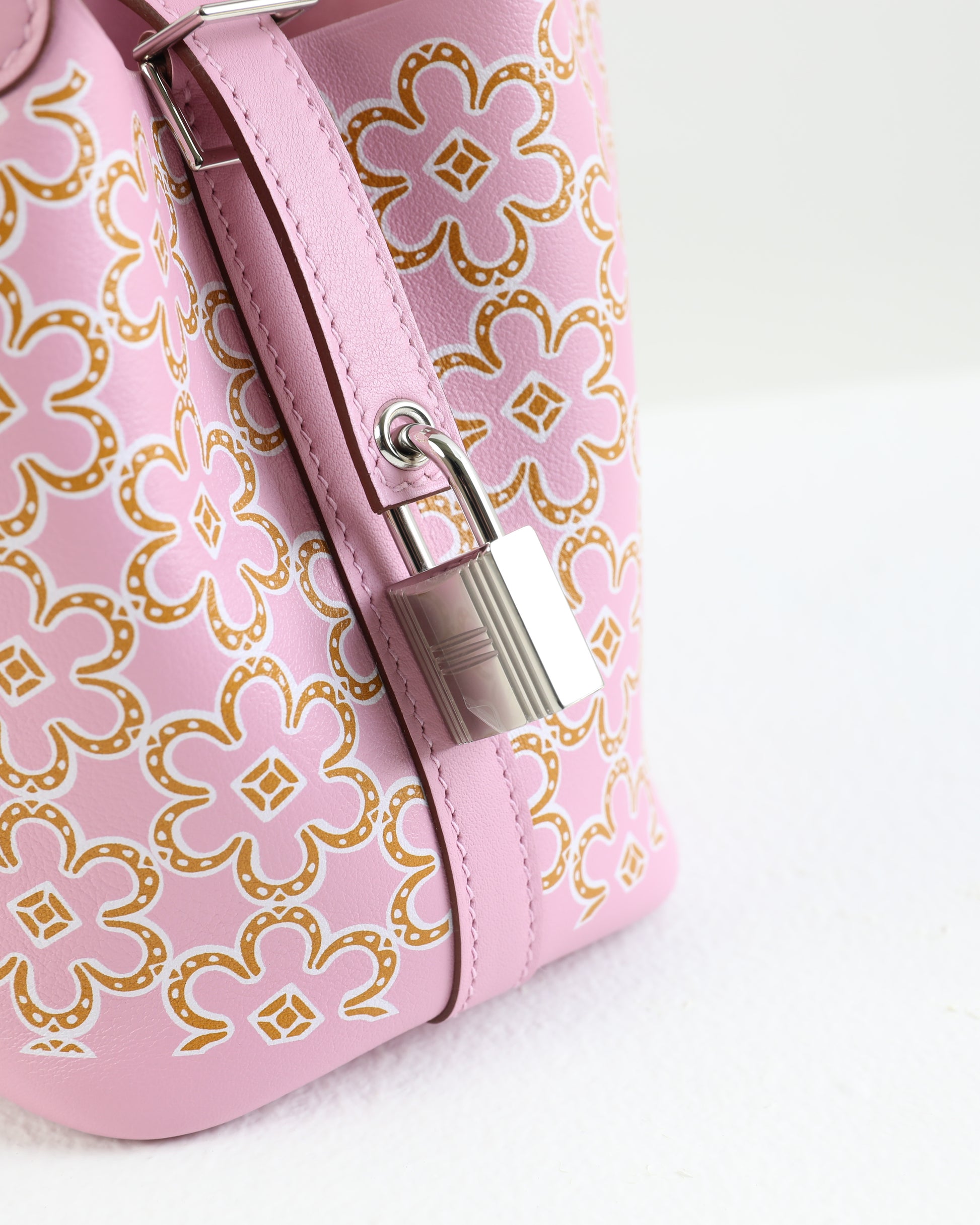 Printed in a “Lucky Daisy” pattern on Swift leather, it features the iconic horseshoe theme, which is re-arranged to mimic a flower design. In addition to the casualness of the Picotin lock itself, the small size of this micro makes it even more adorable as well as a collector's piece.