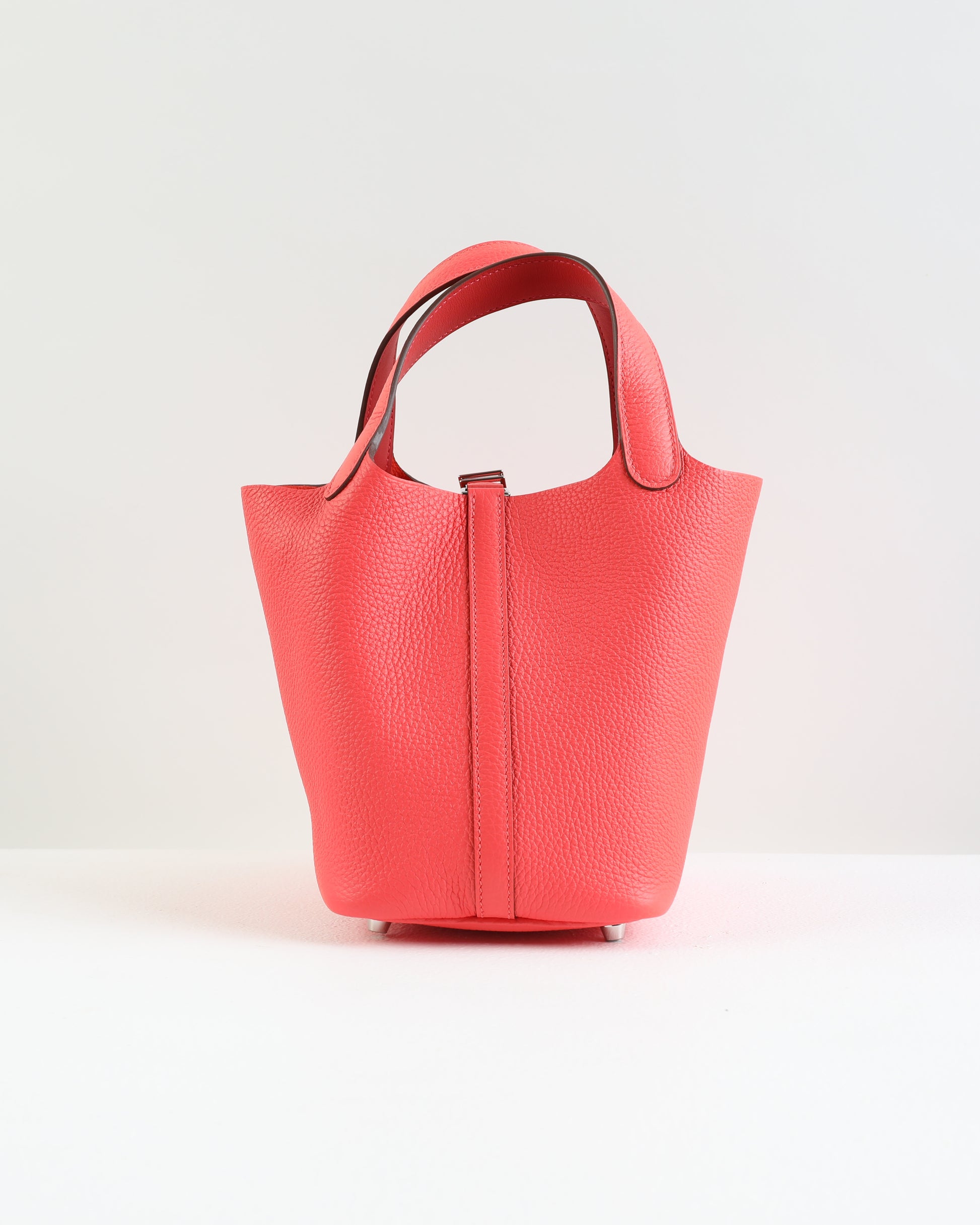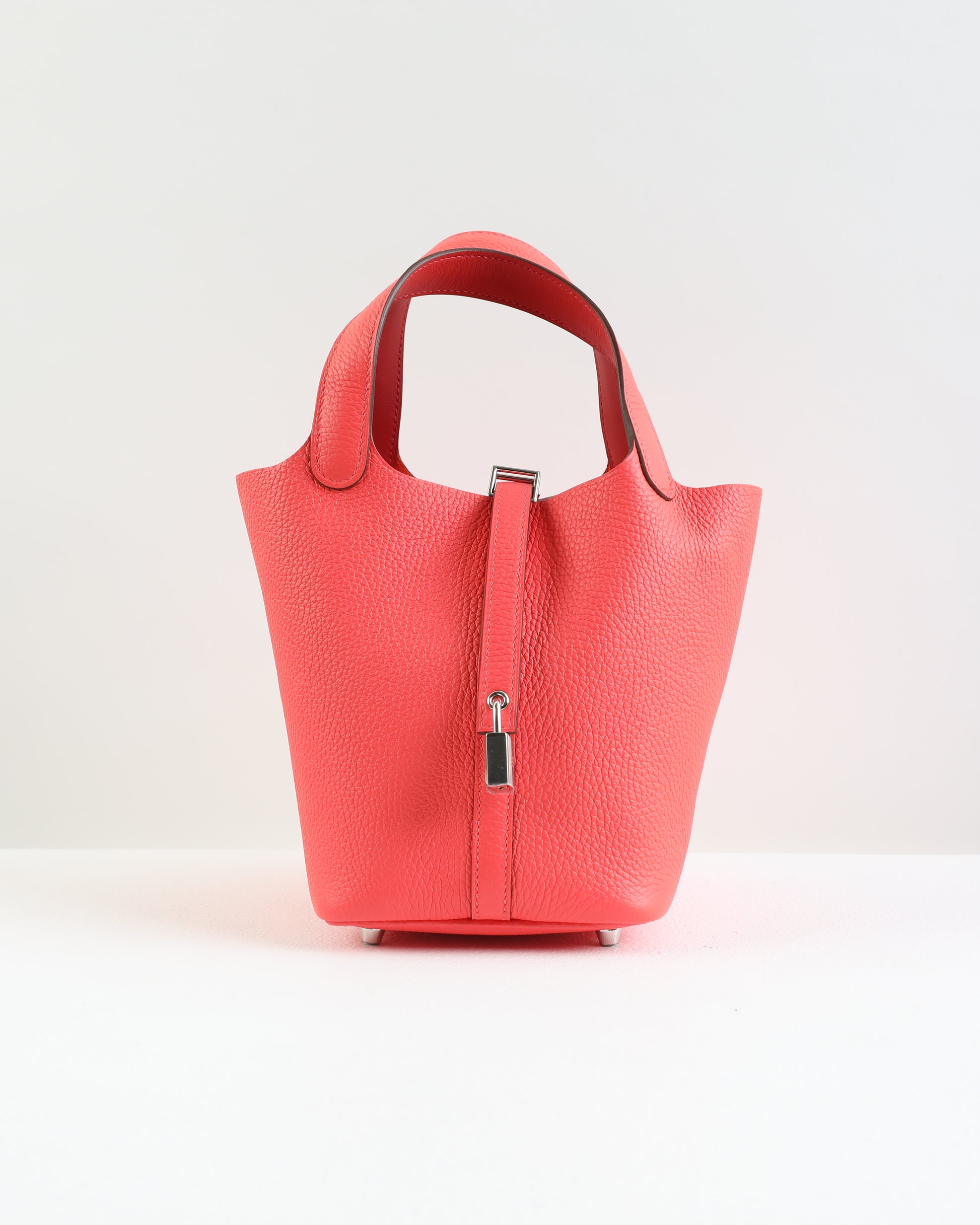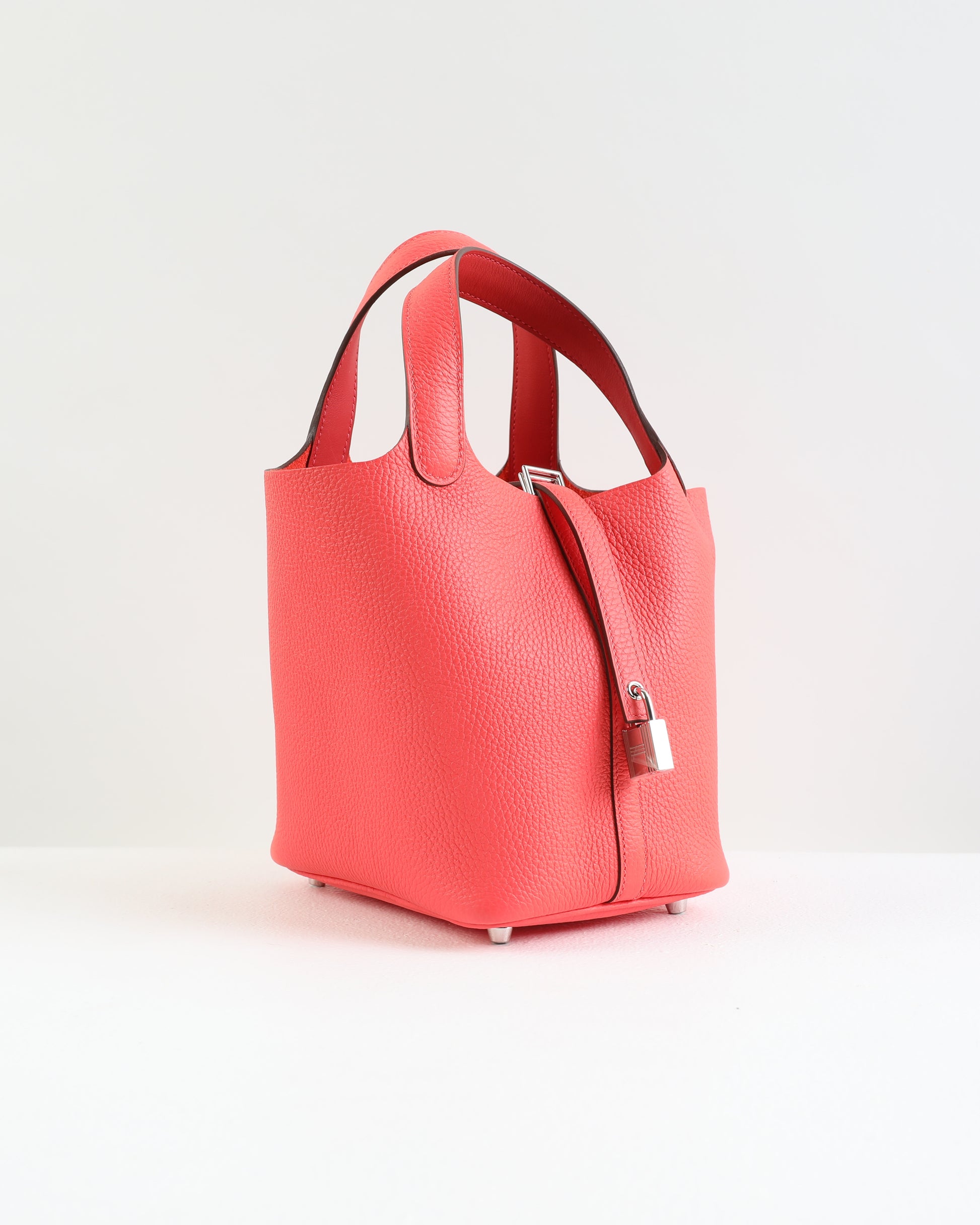 Picotin 18 Bi Color Rose Texas/Vermillon in Clemence Leather with Palladium Hardware
