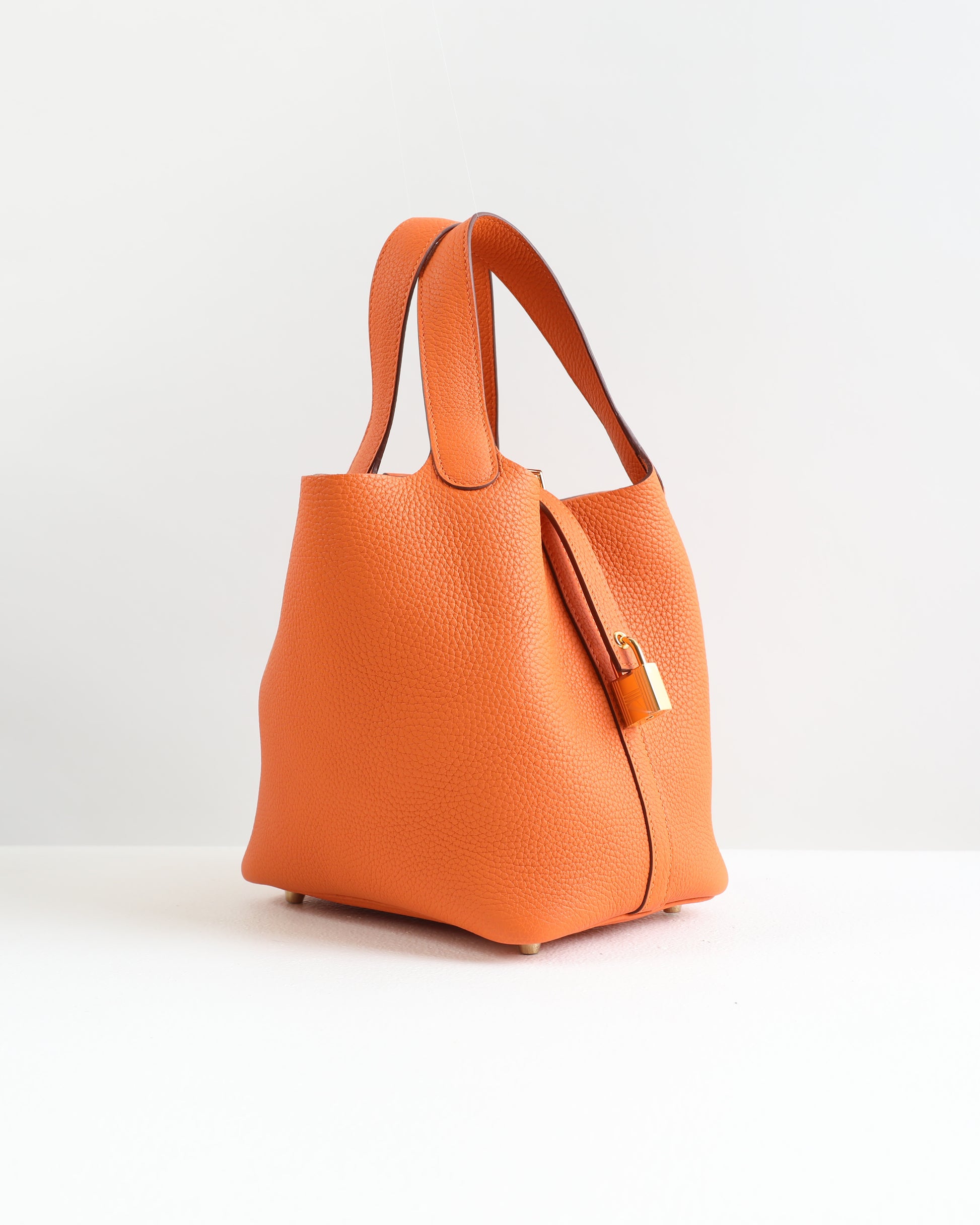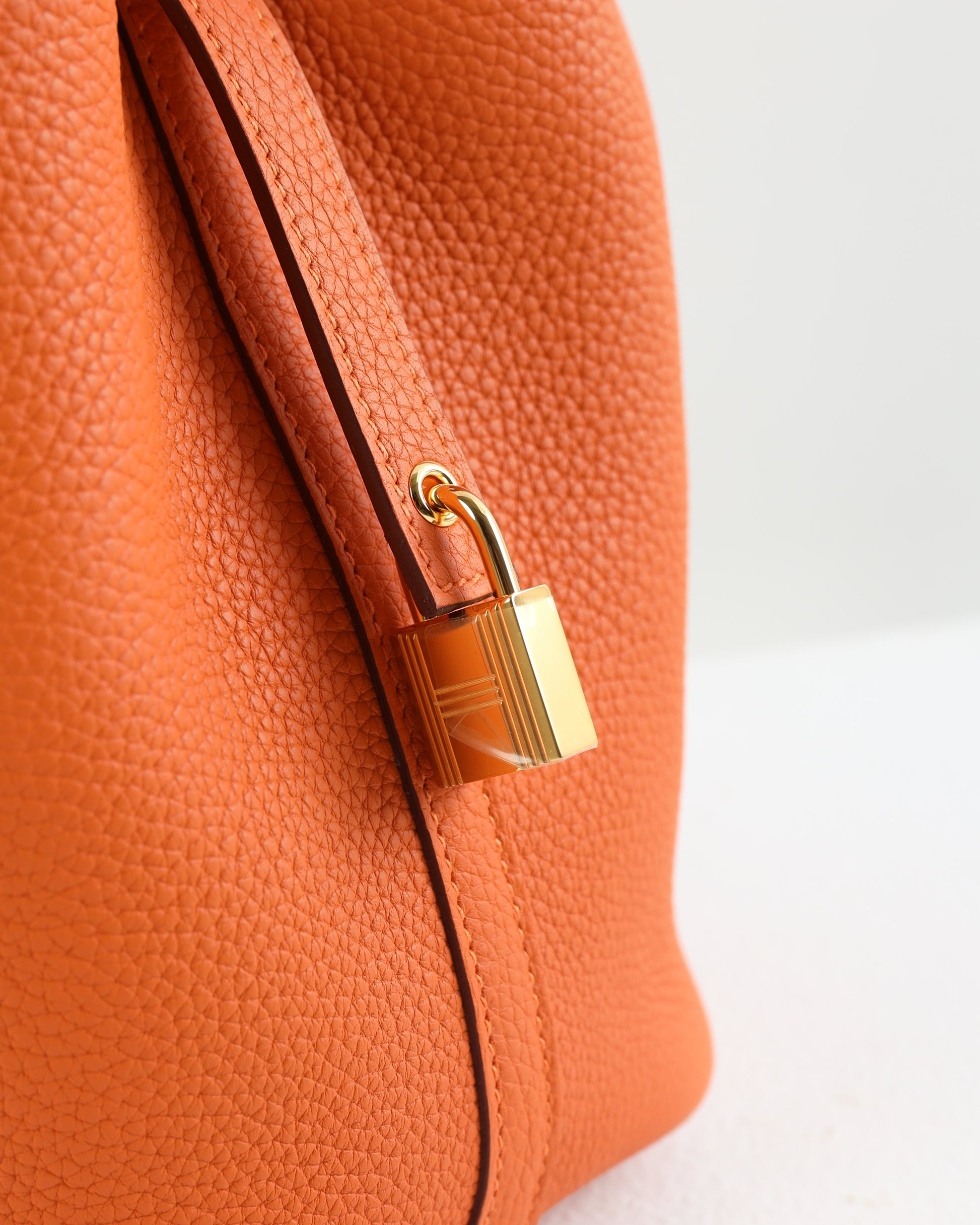 Picotin 18 Orange in Clemence Leather with Gold Hardware